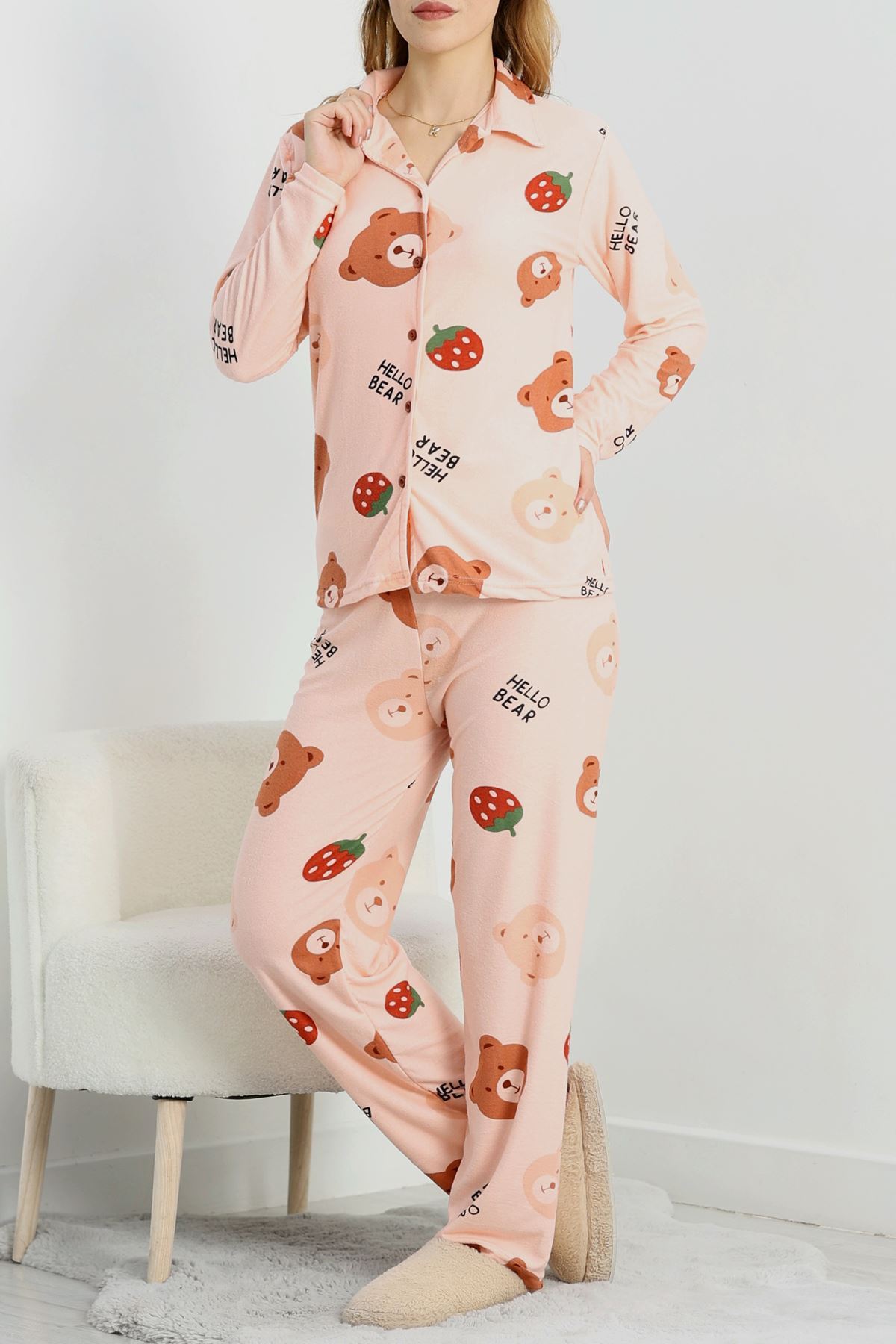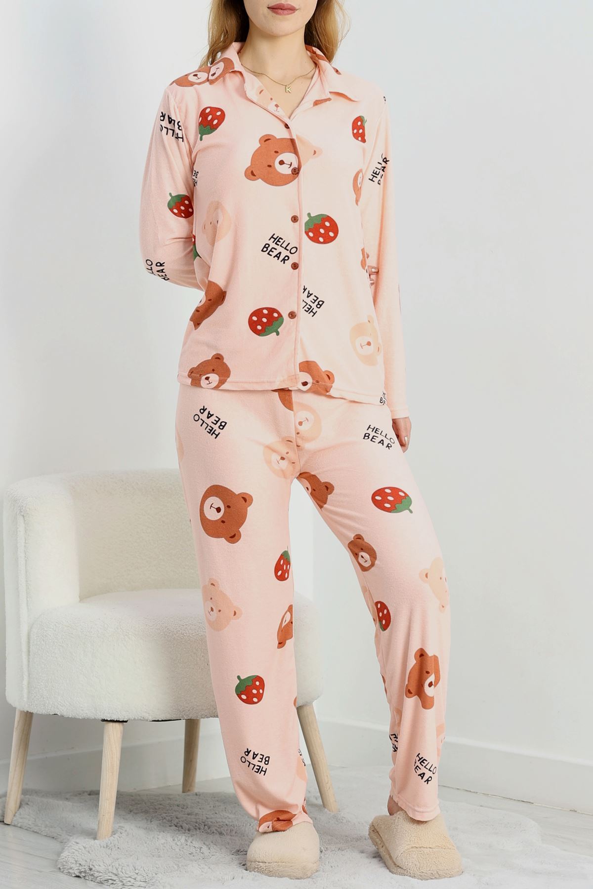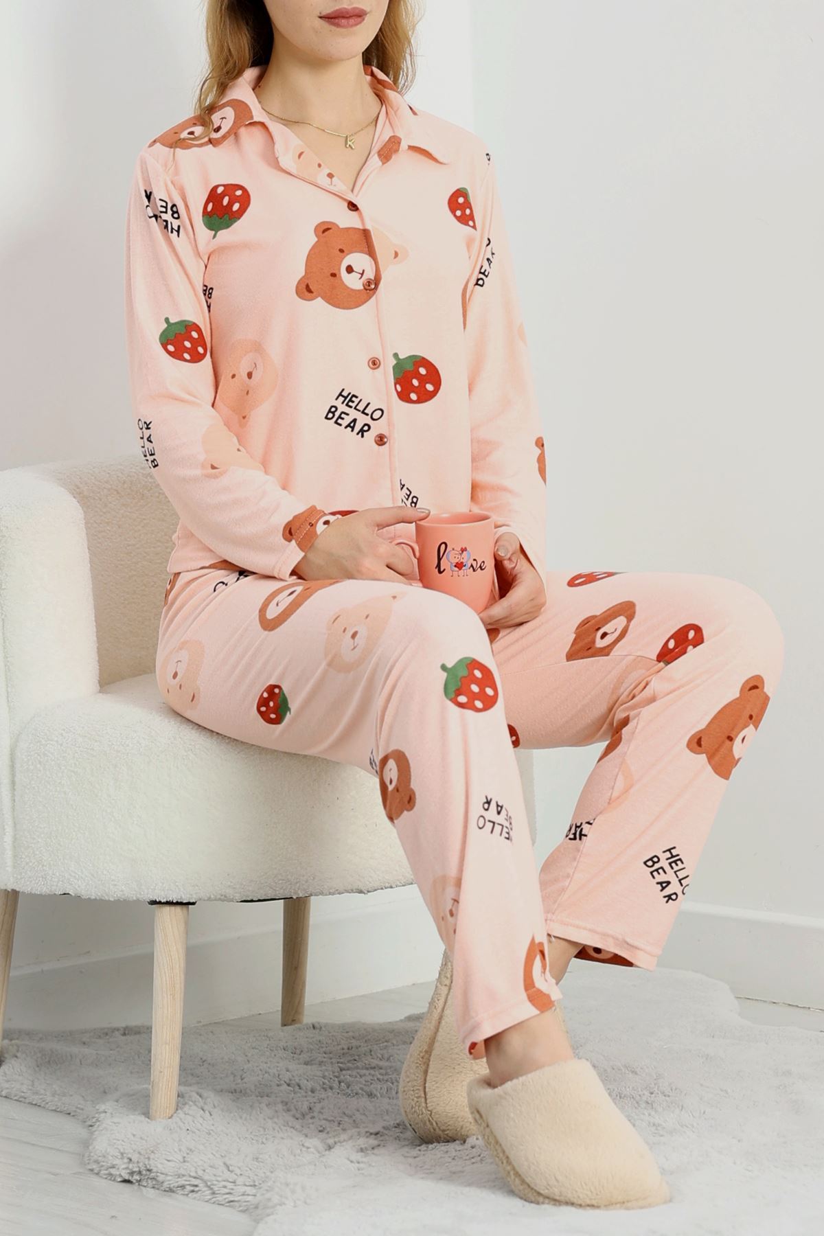Düğmeli Süet Pijama Takımı Sarıördek - 450.1287.