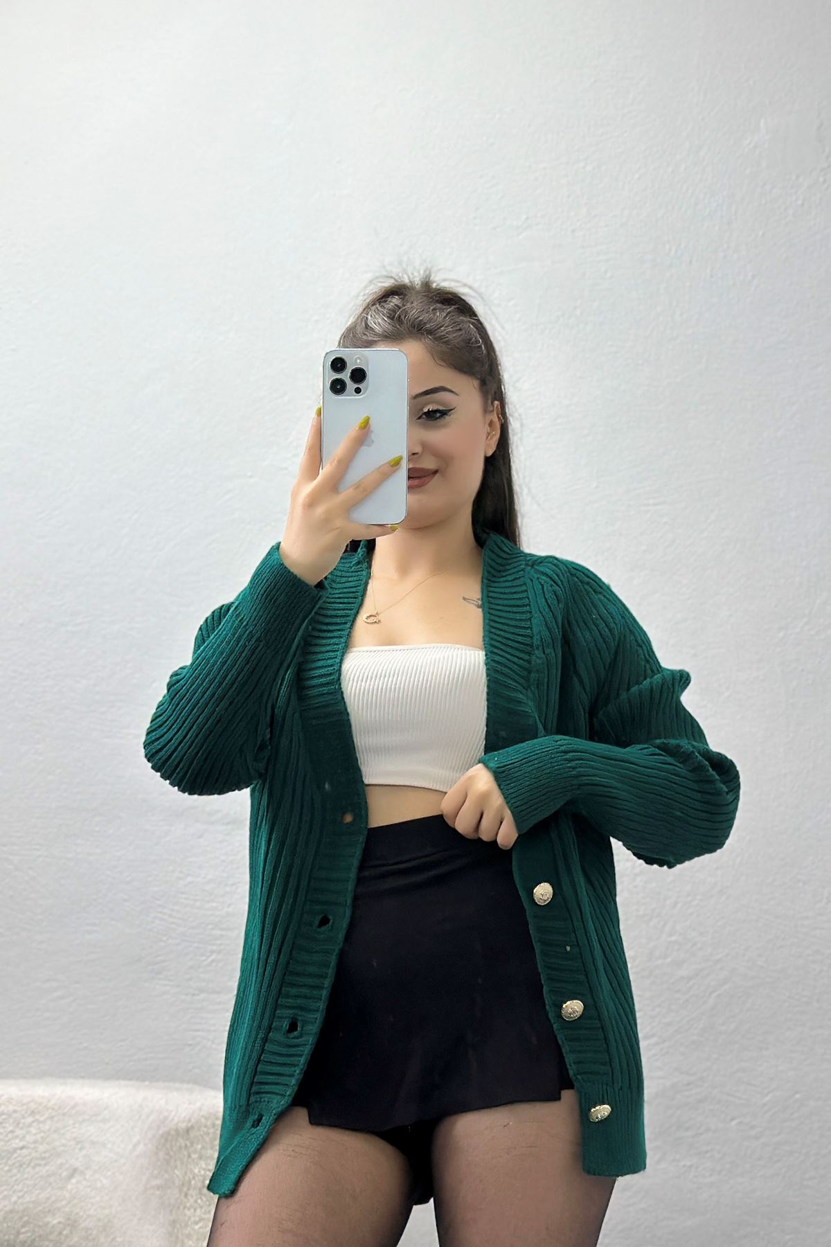 Düğmeli Triko Hırka Nefti - 4039.1577.