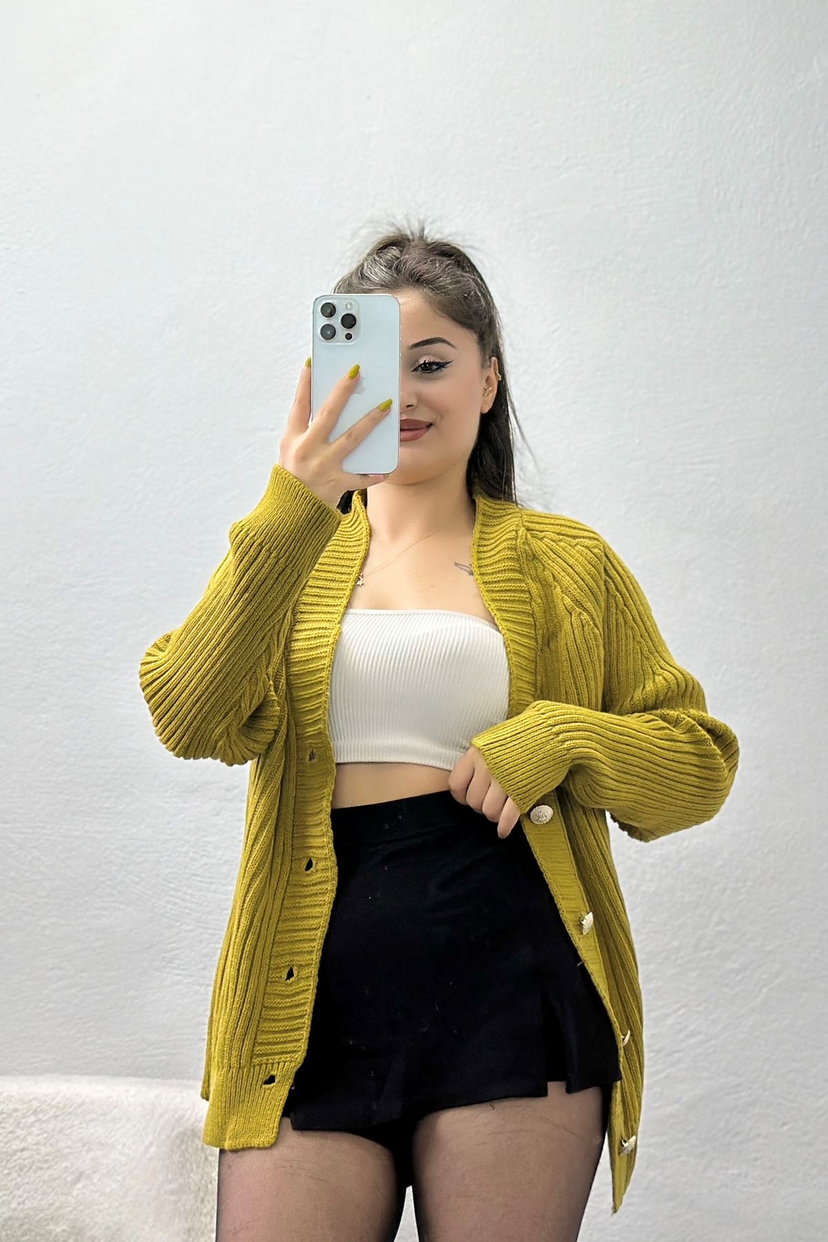 Düğmeli Triko Hırka Yağyeşili - 4039.1577.