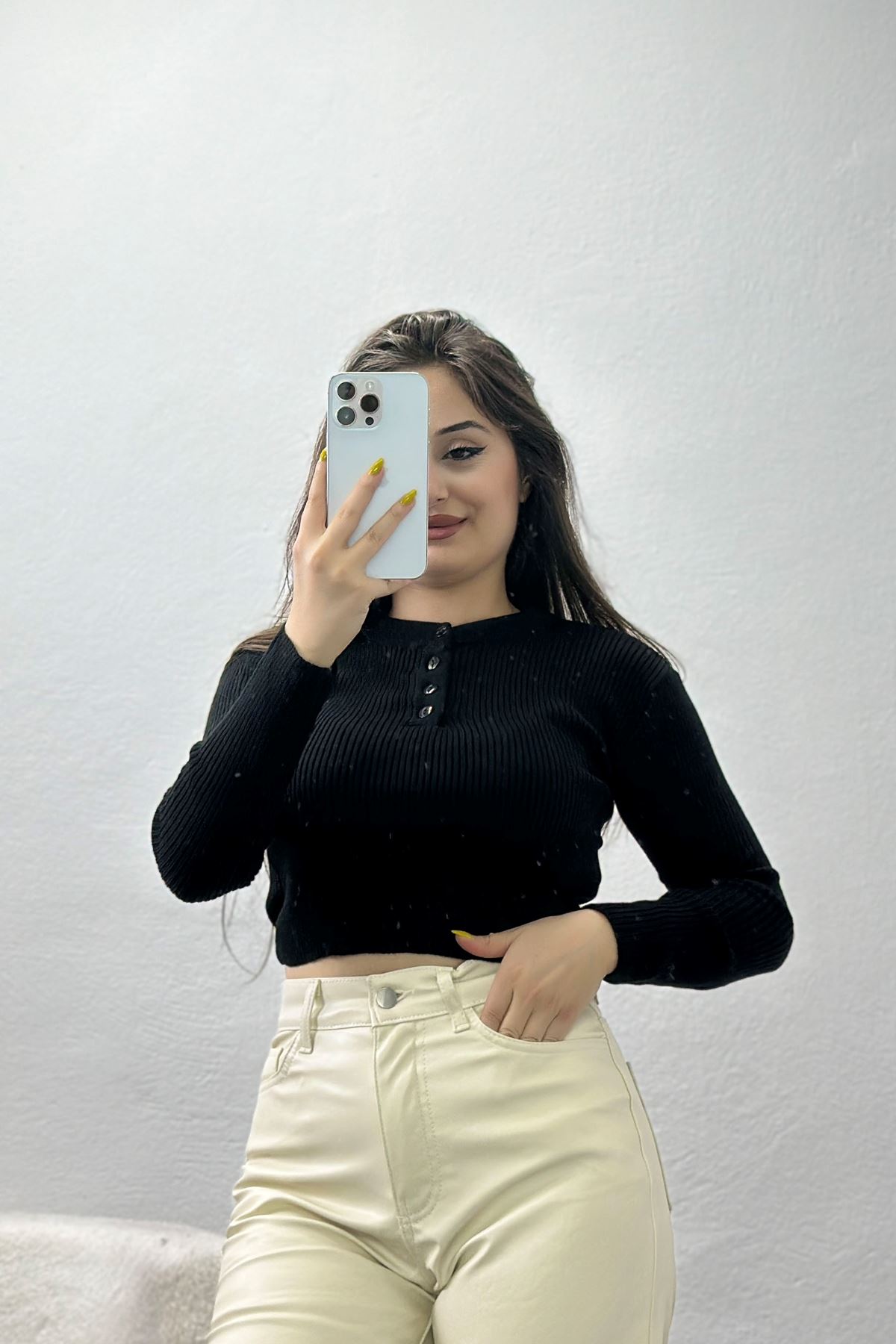 Yuvarlak Yaka Pullu Bluz Siyah - 20760.599.