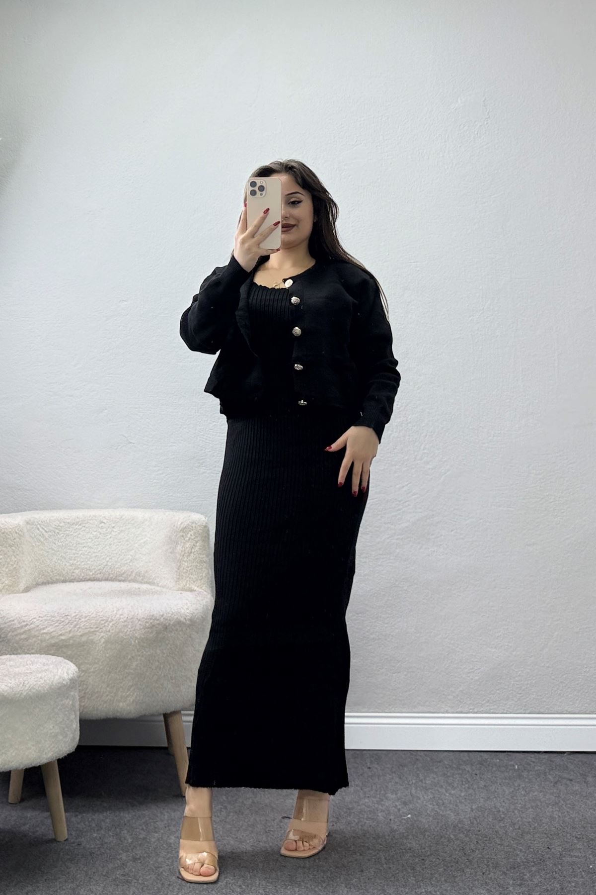 Elbise Ceket Triko Takım Siyah - 3064.1577.
