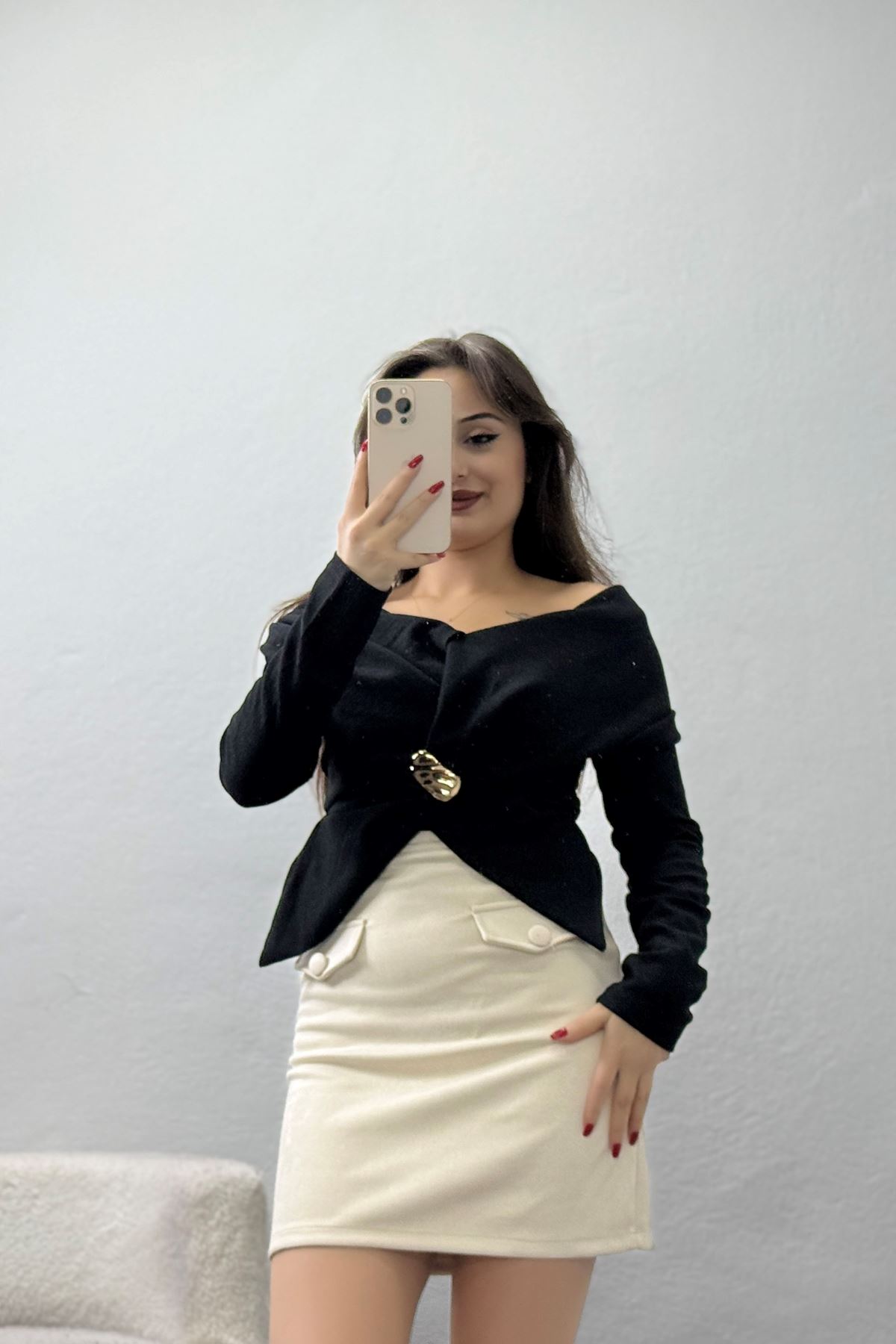 Elegant Kumaş Toka Detay Bluz Siyah - 70872.1918.