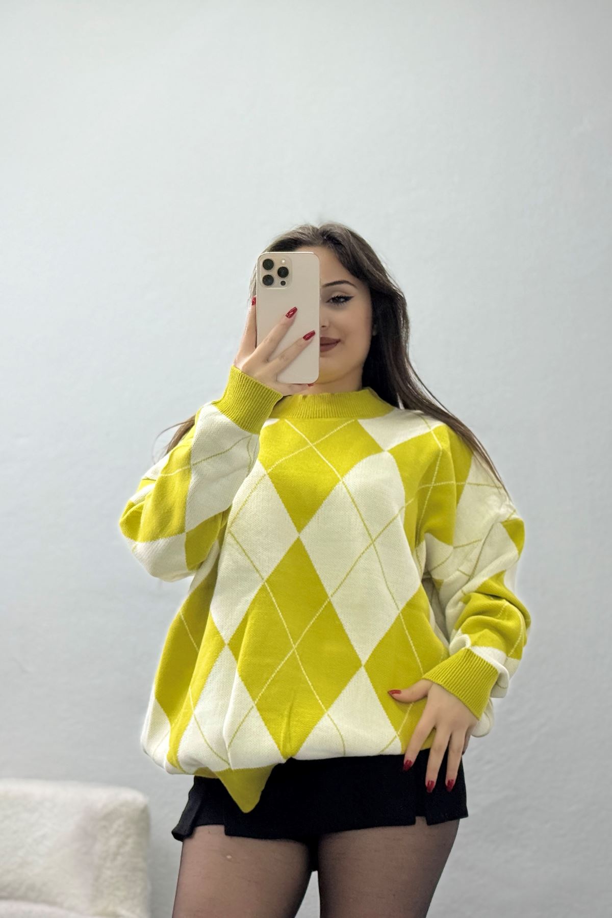 Etnik Desen Triko Yağyeşililatte - 3038.1577.