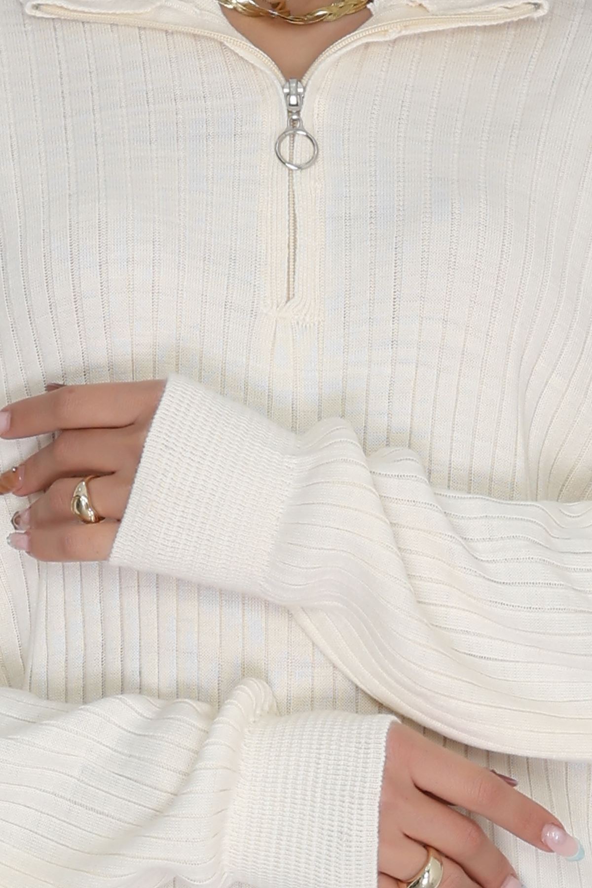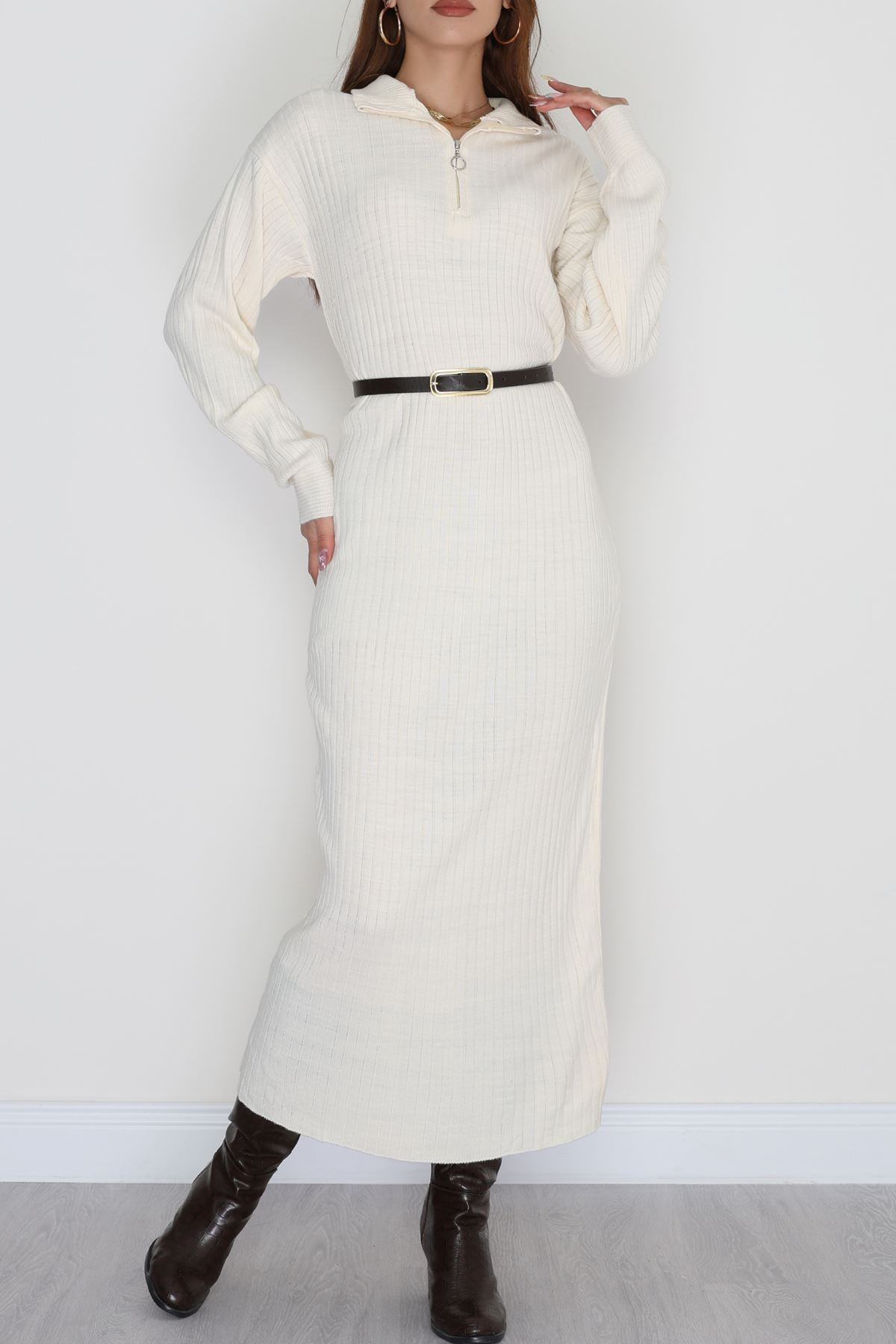 Fermuar Detay Triko Elbise Taş - 70804.1765.