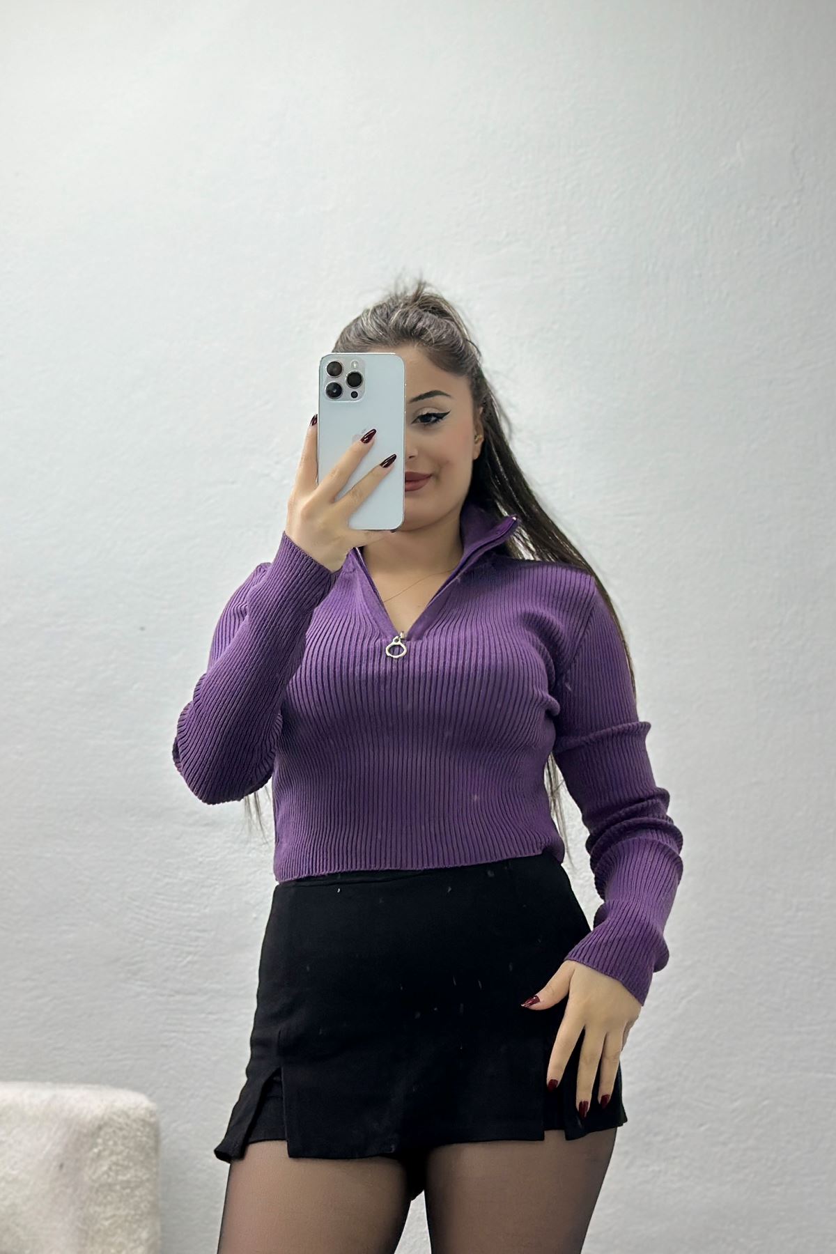 Fermuarlı Örgü Triko Lacivert - 4019.2043.
