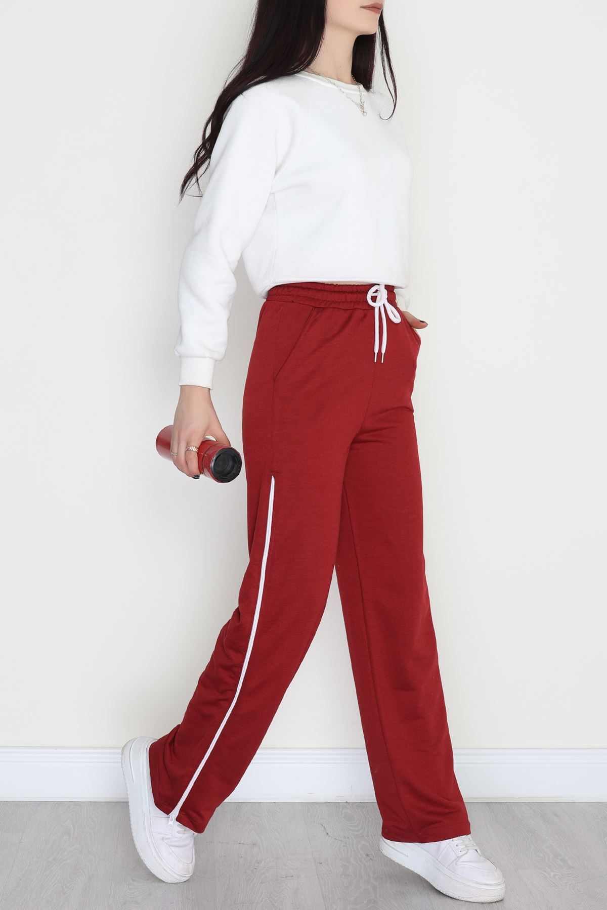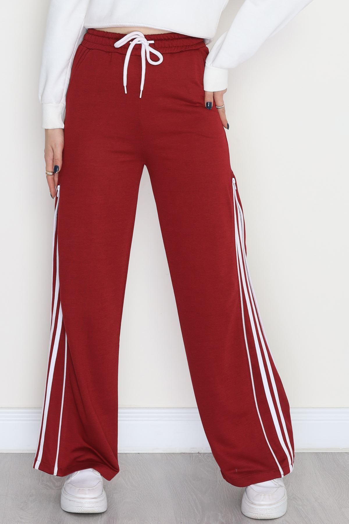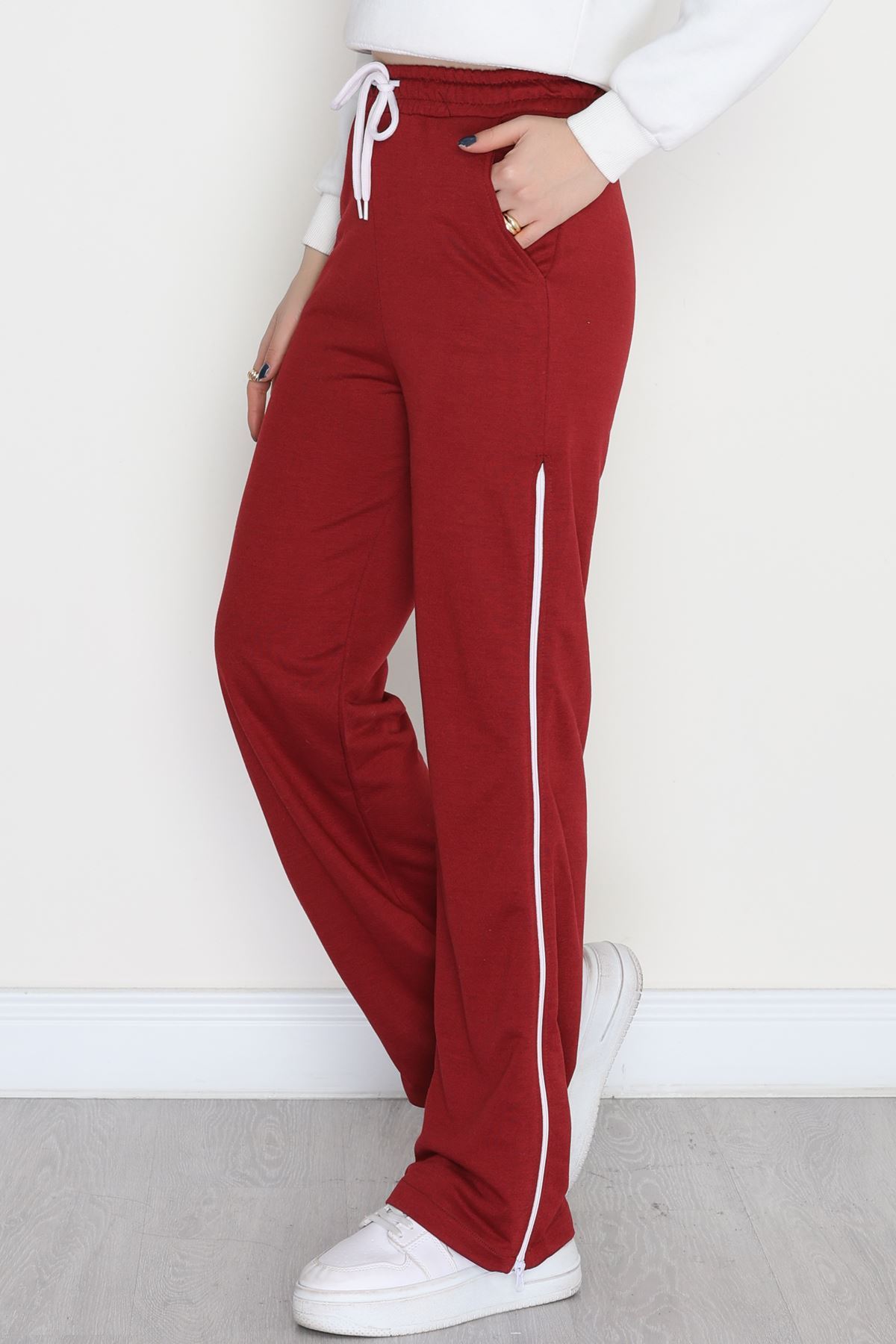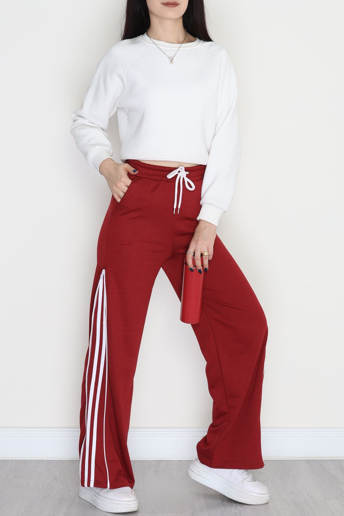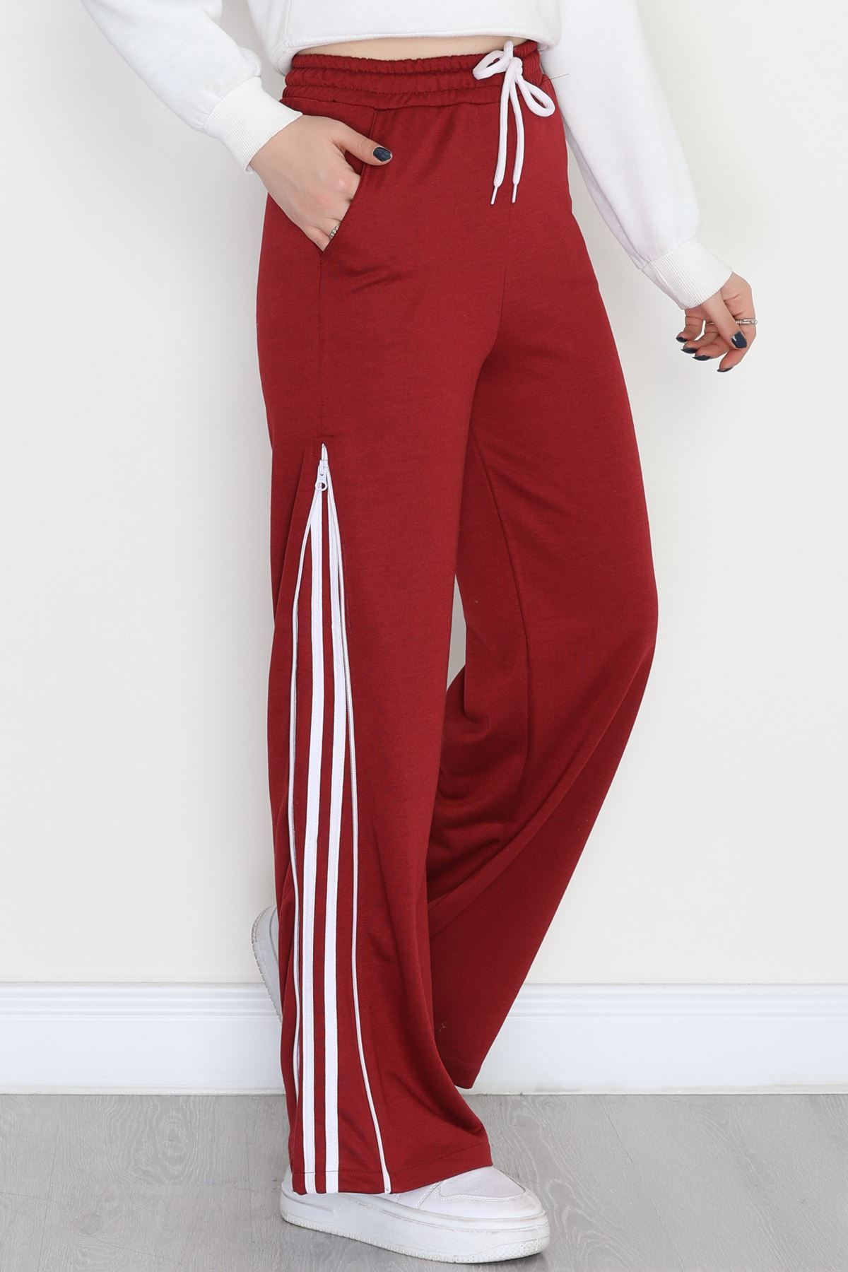 Yırtmaçlı Şeritli 2 İplik Eşofman Altı Bordo - 40022.1857.