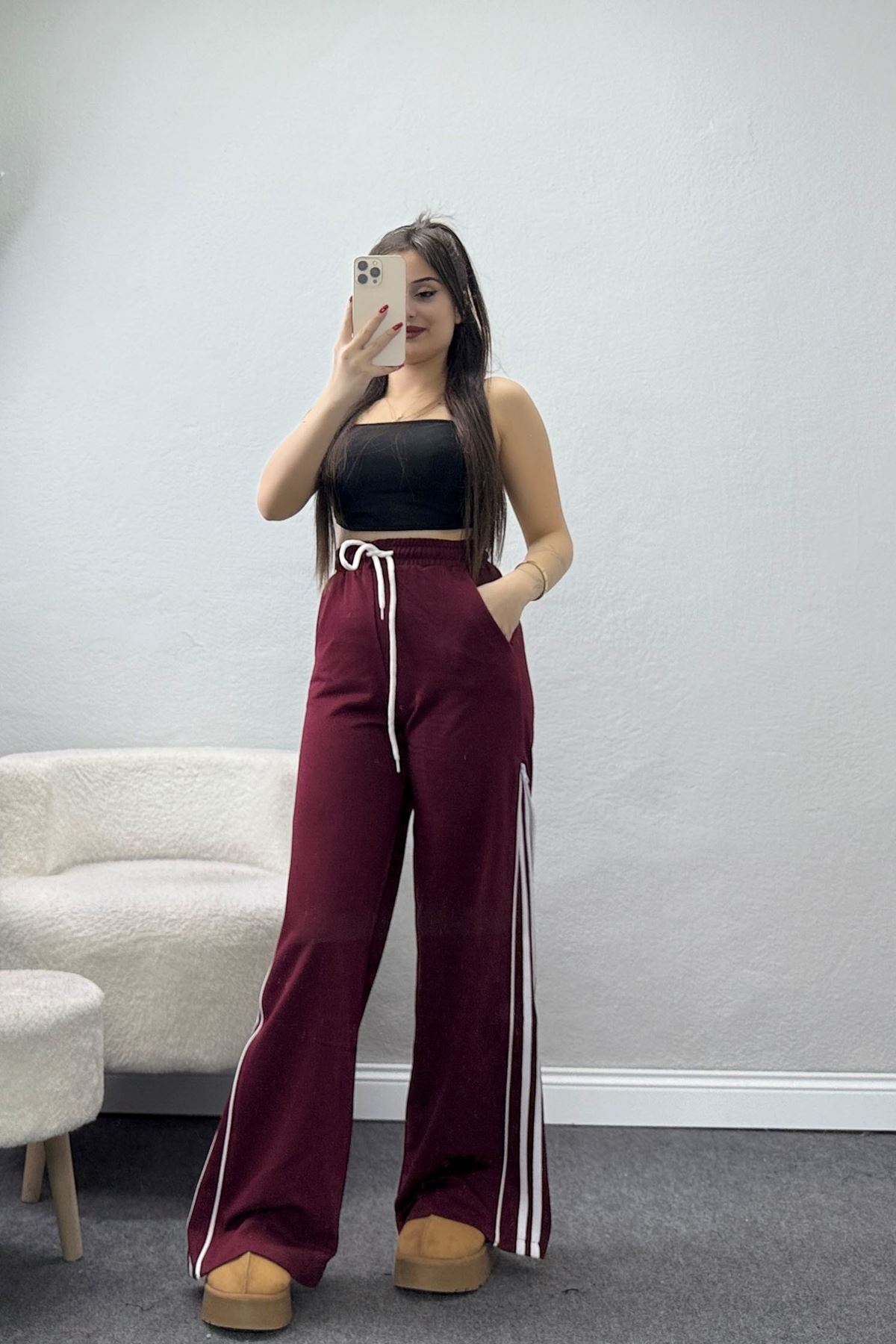 Fermuarlı 2 İplik Eşofman Altı Bordo - 50741.1005.