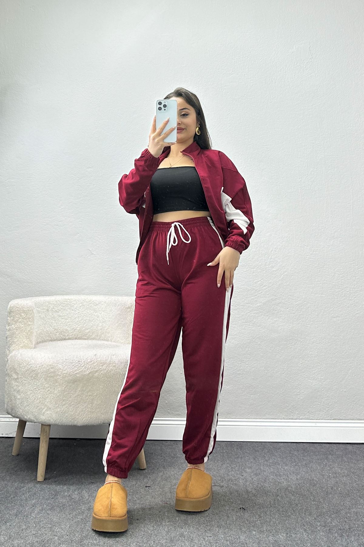 Fermuarlı 2 İplik Eşofman Takımı Bordoekru - 50745.1005.
