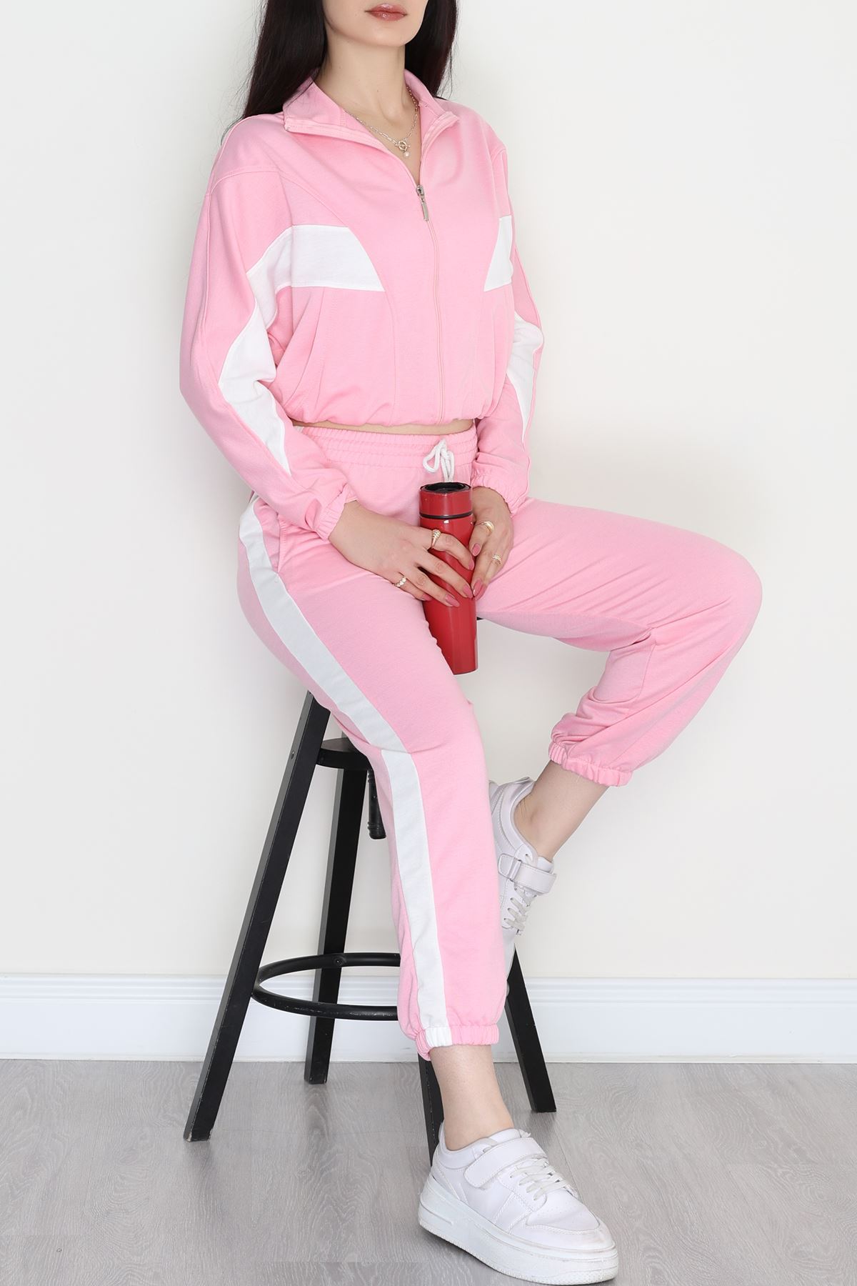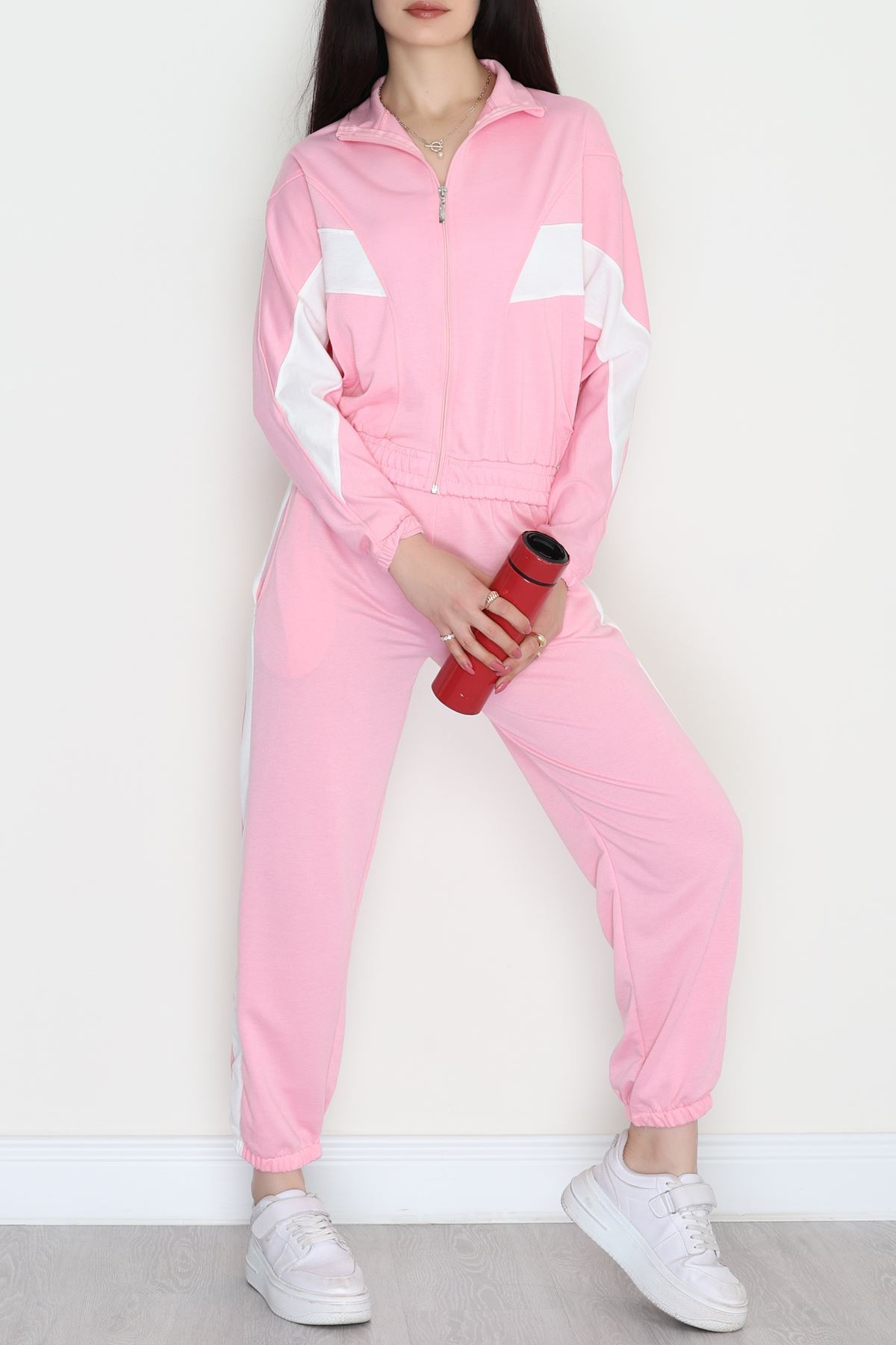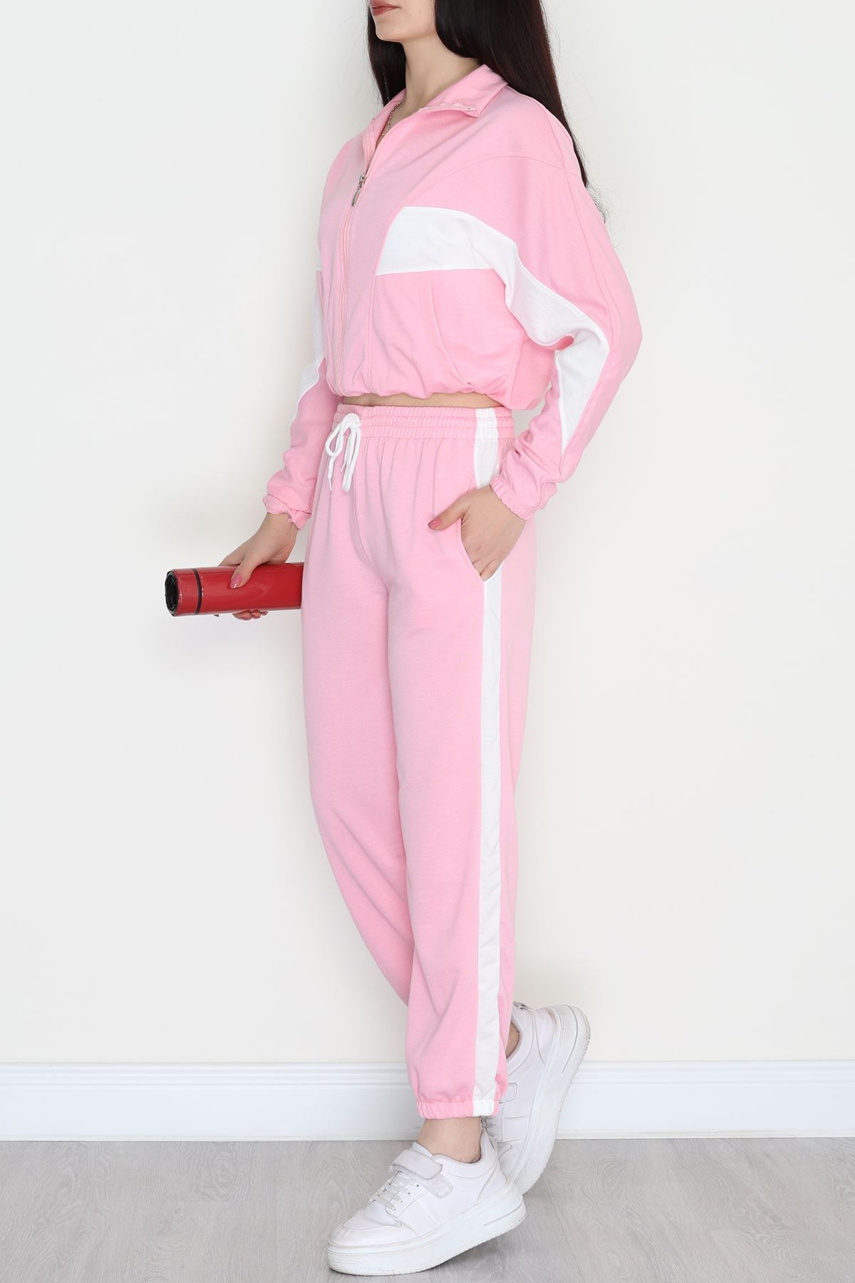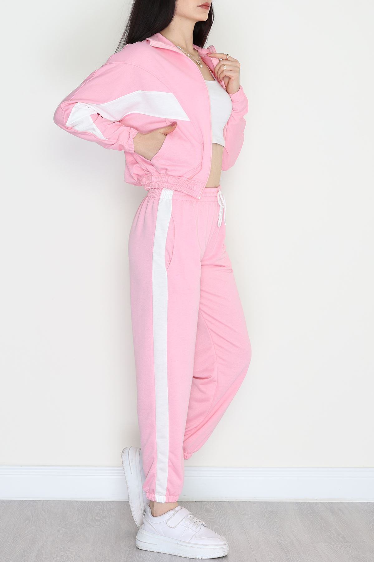 Fermuarlı 2 İplik Eşofman Takımı Pembebeyaz - 50745.1005.