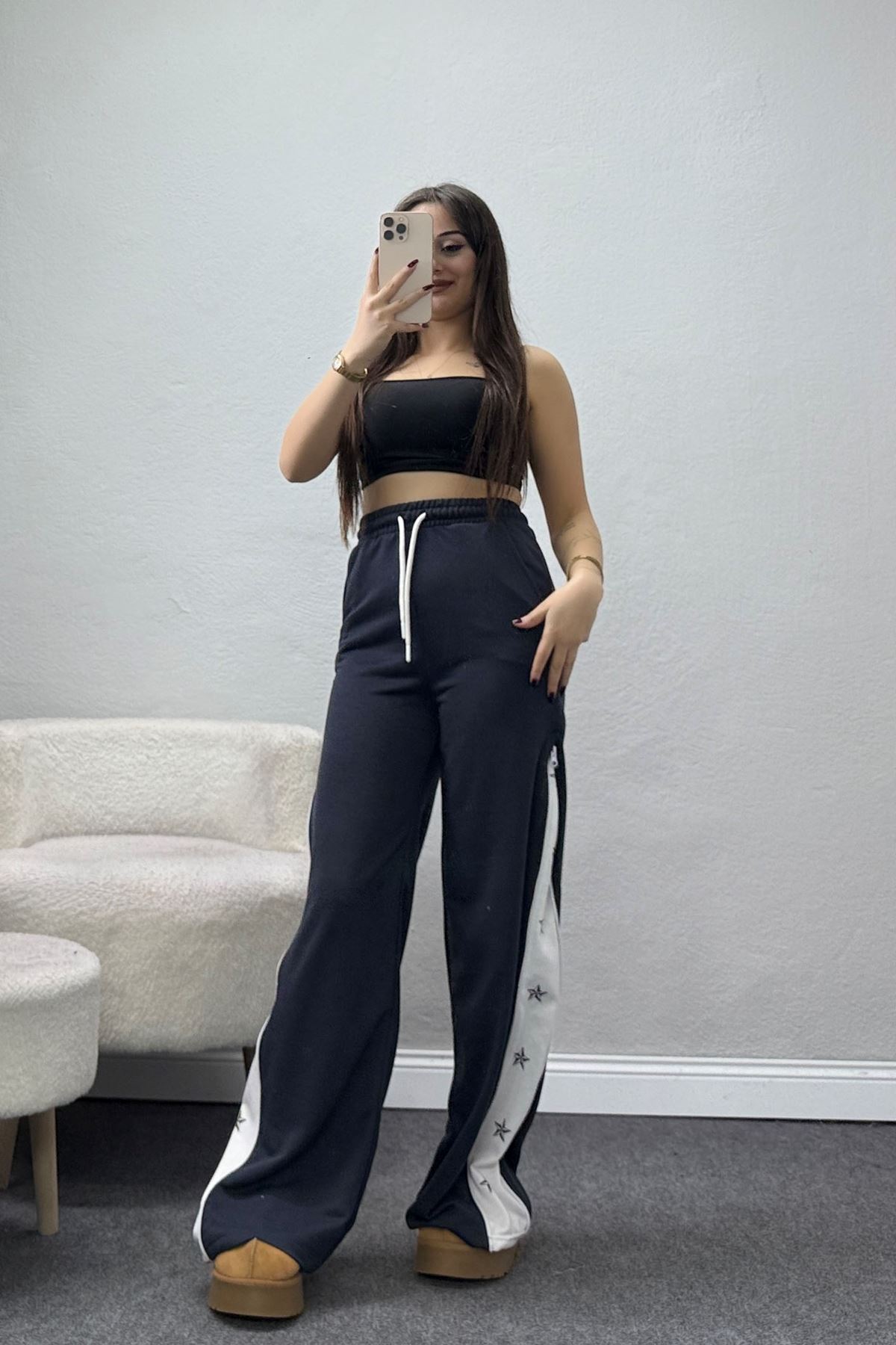Özel Tasarım Nakışlı 2 İplik Eşofman Altı Lacivert - 70159.1857.