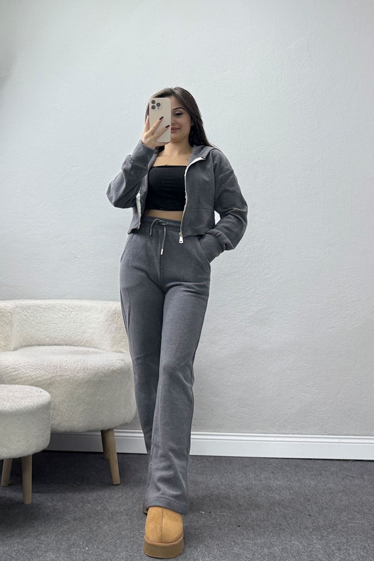 Fermuarlı Kapşonlu Selanik İkili Takım Antrasit - 42639.1567.
