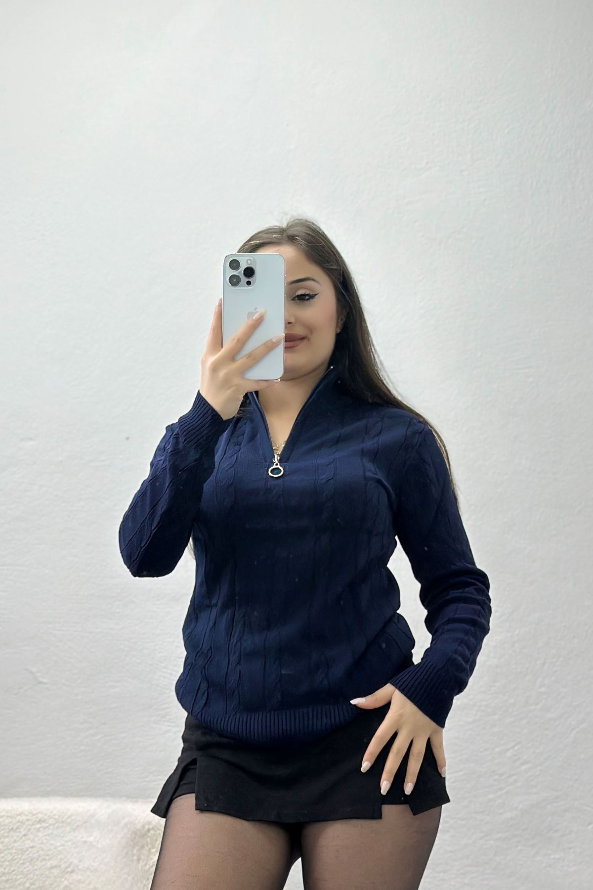 Fermuarlı Örgü Triko Lacivert - 4019.2043.