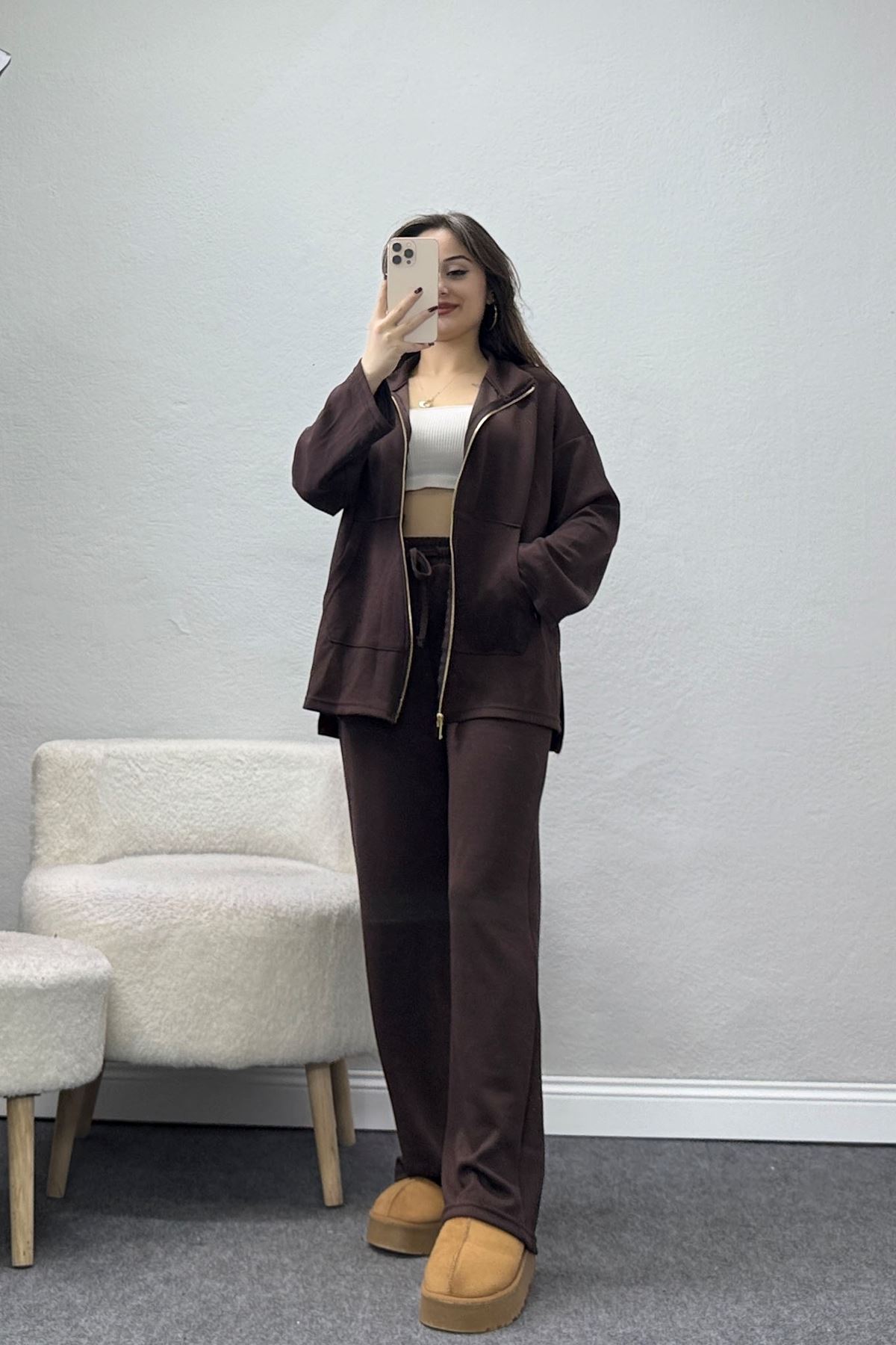 Fermuarlı Oysho Kumaş Takım Acıkahve - 4132.1247.