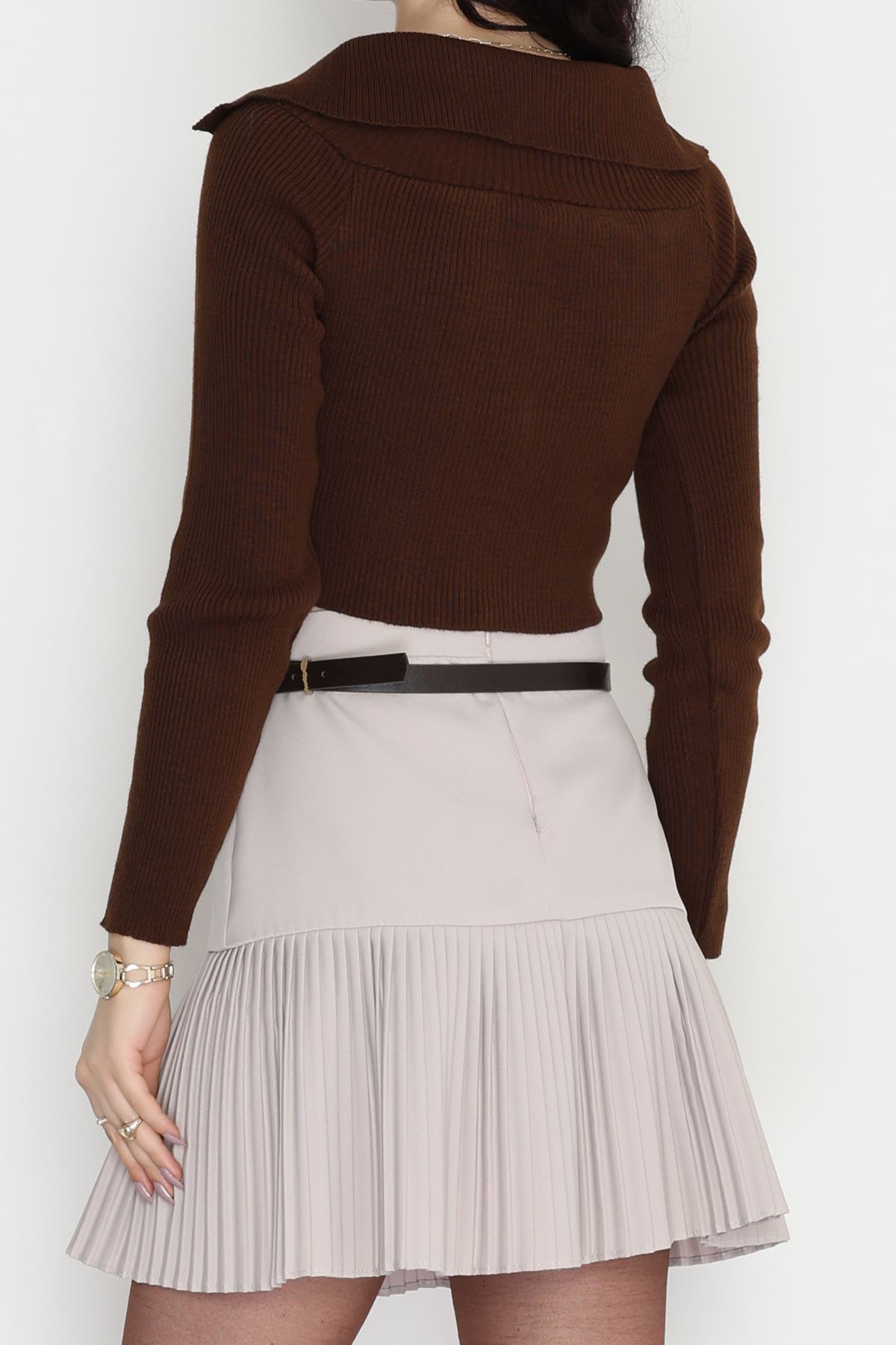 Yarım Balıkçı Yaka Likralı Ring Viskon Body Kahvesiyah - 90950.1287.