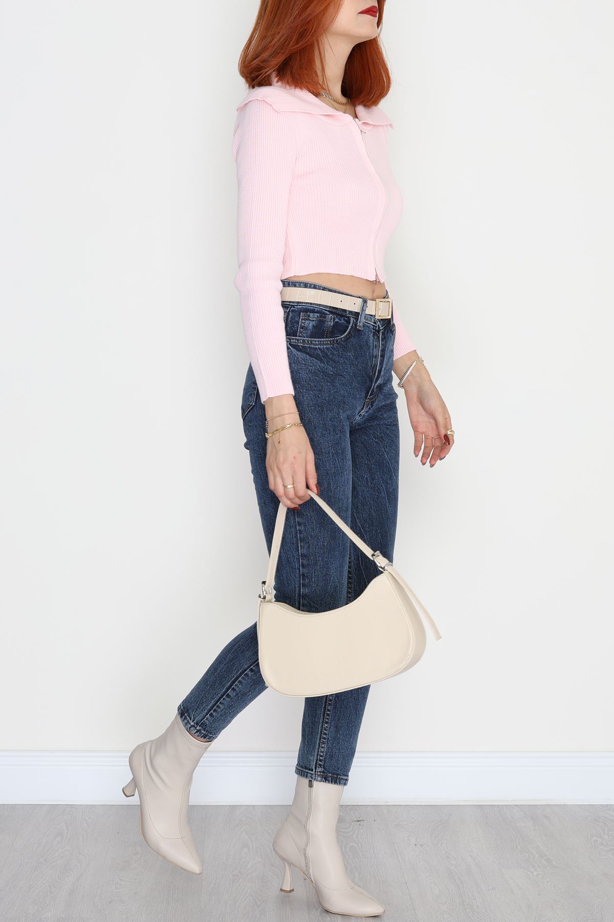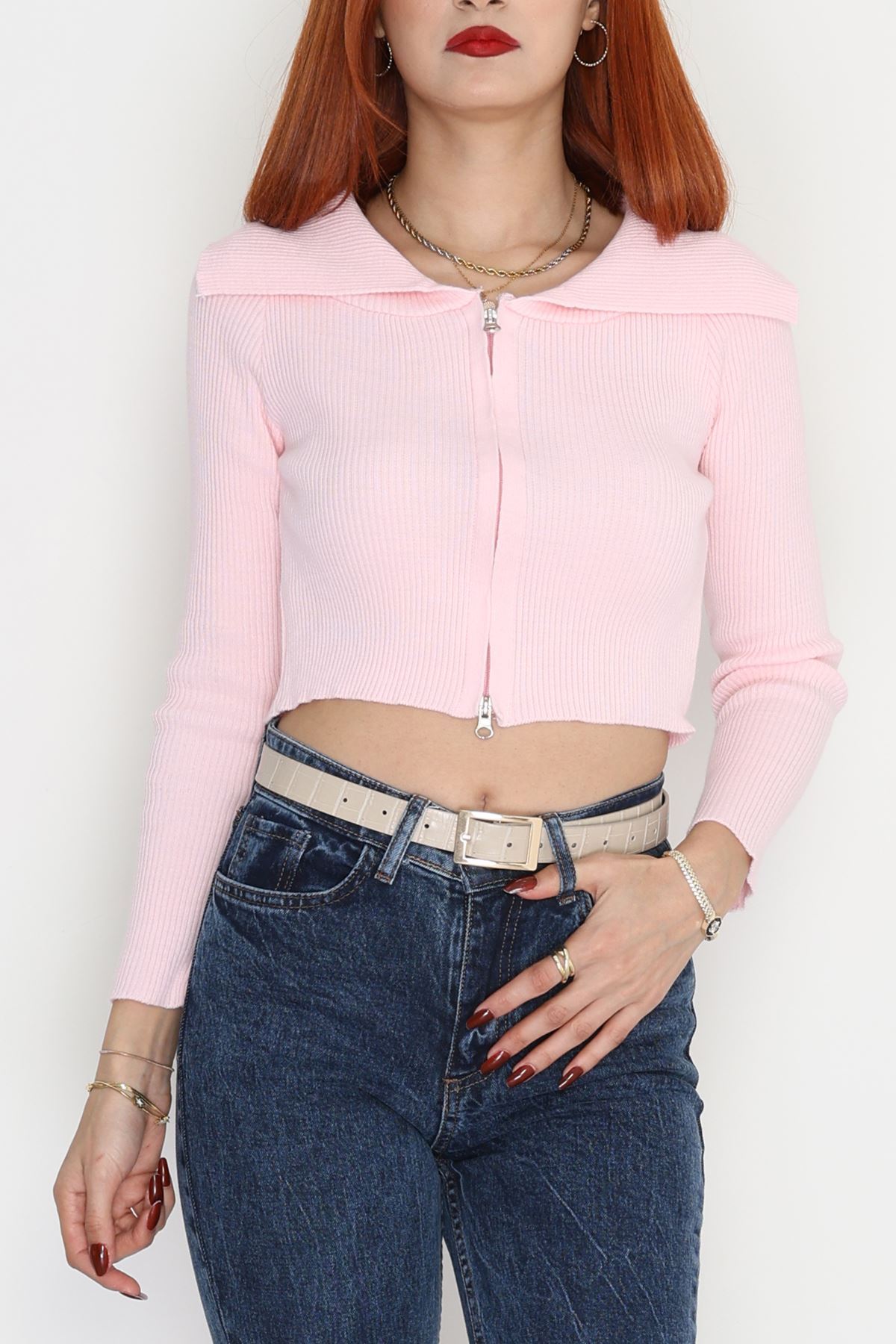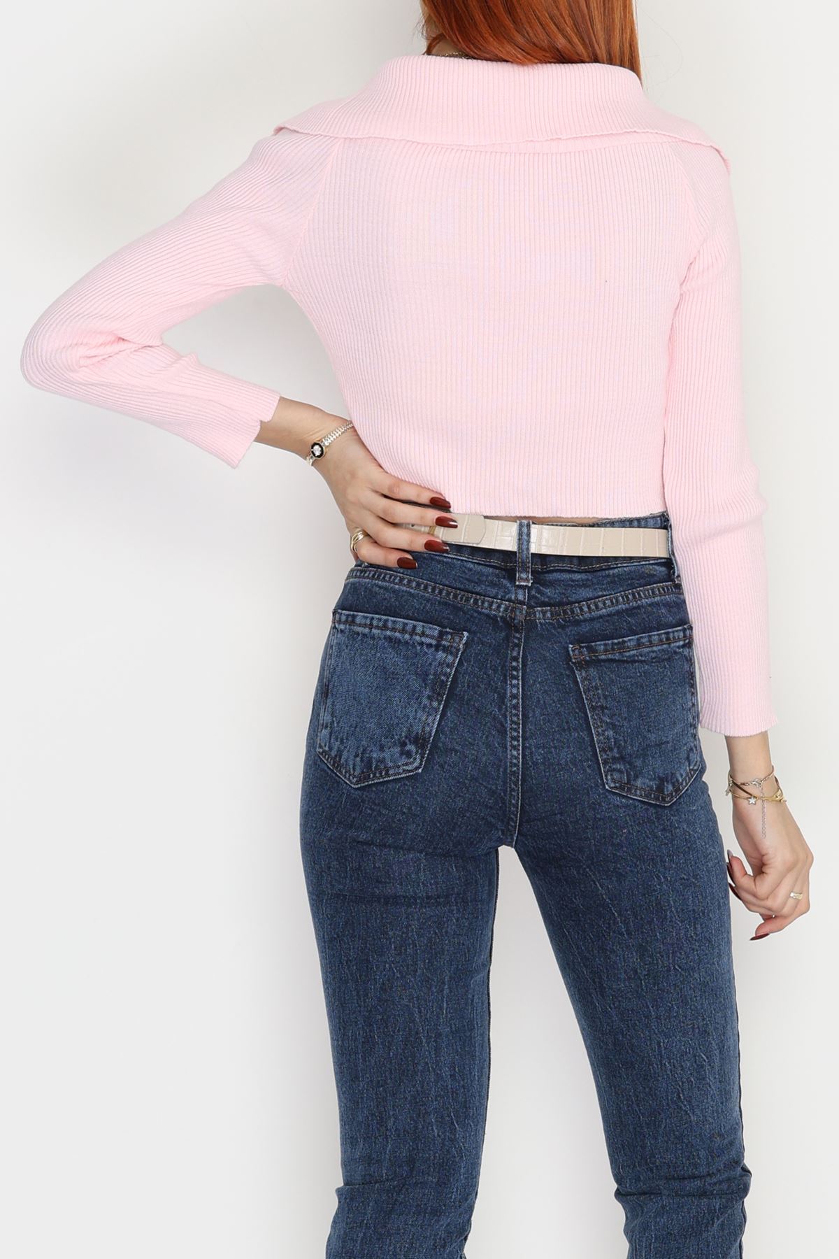 Balon Kol Crop Bluz Pembe - 30720.1934.
