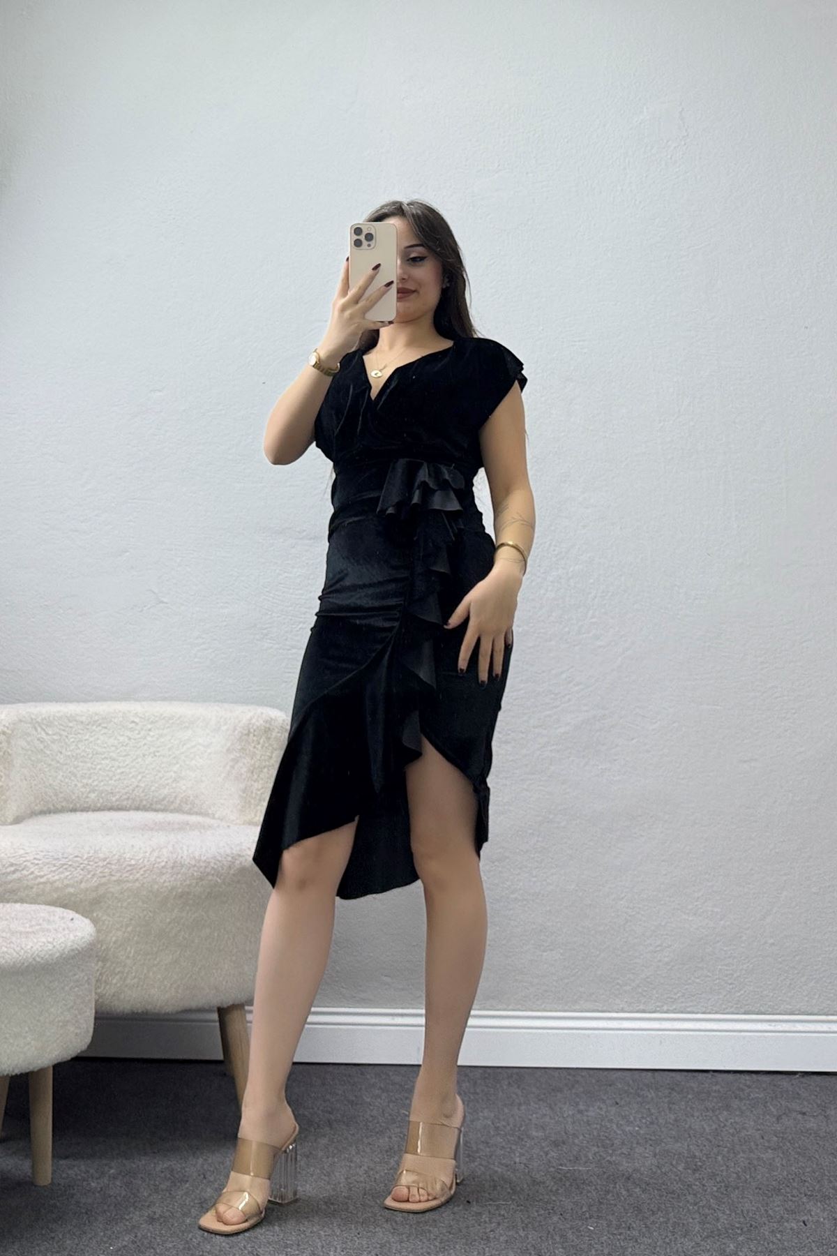 Fırfır Detaylı Kadife Elbise Siyah - 582681.1592.