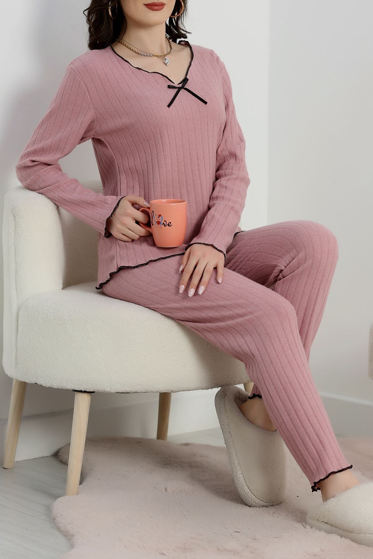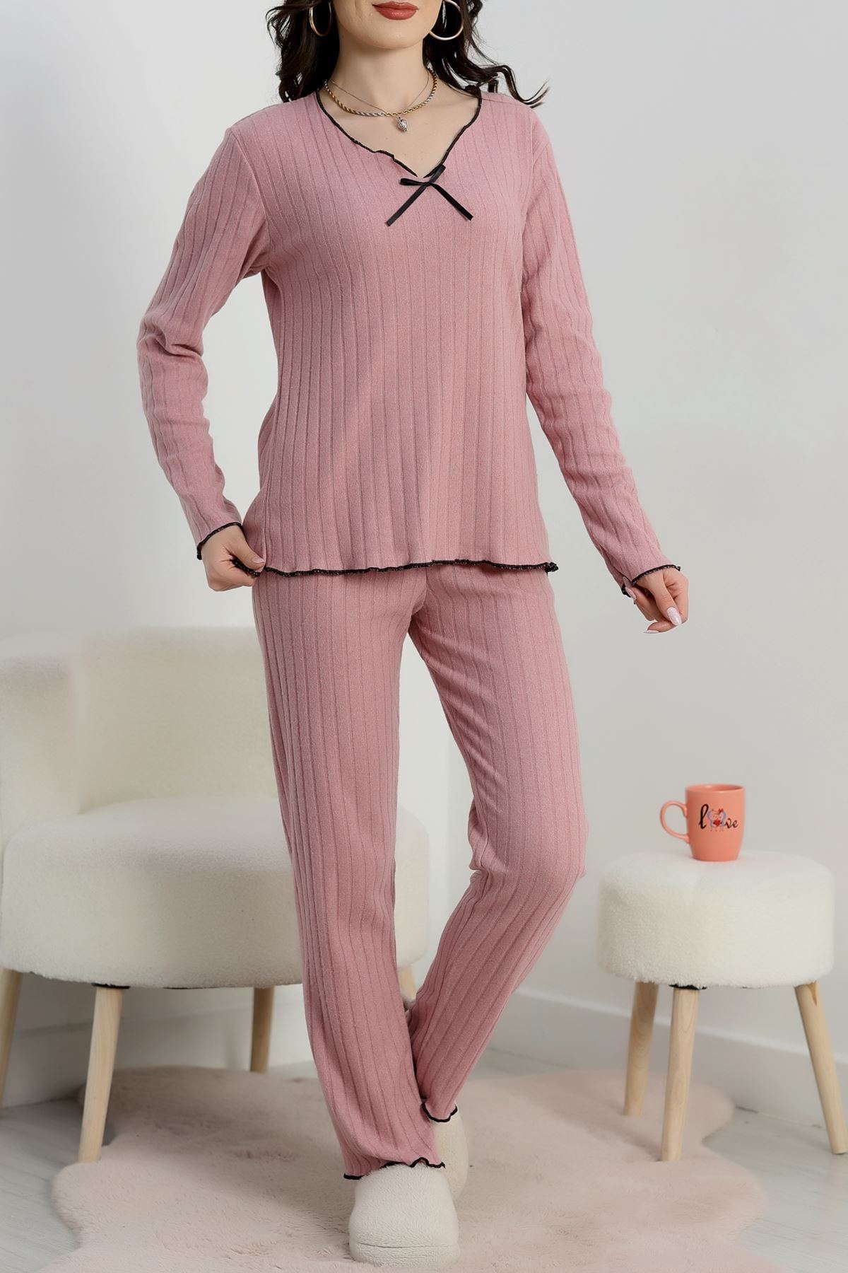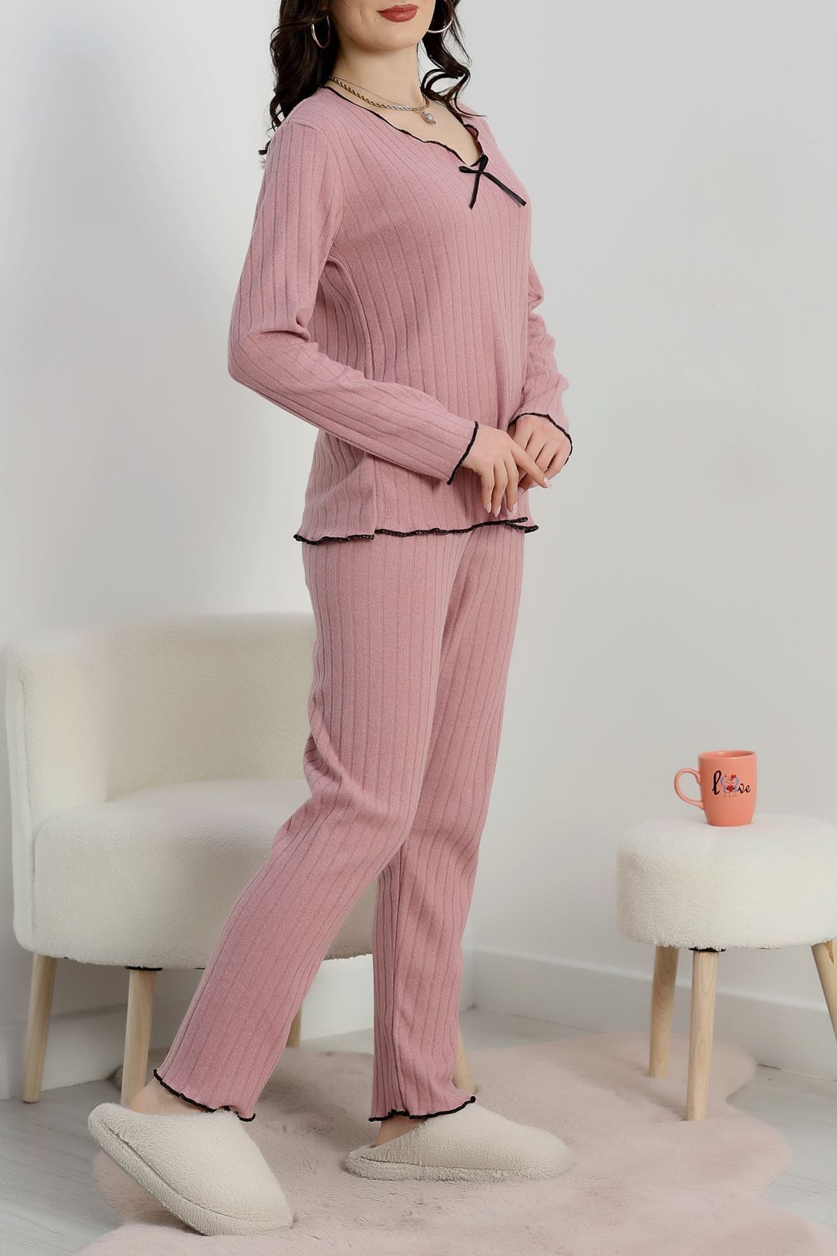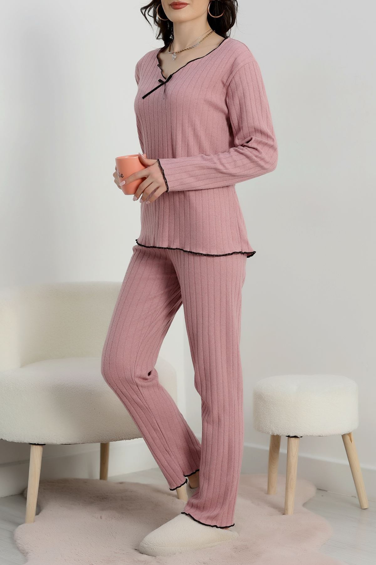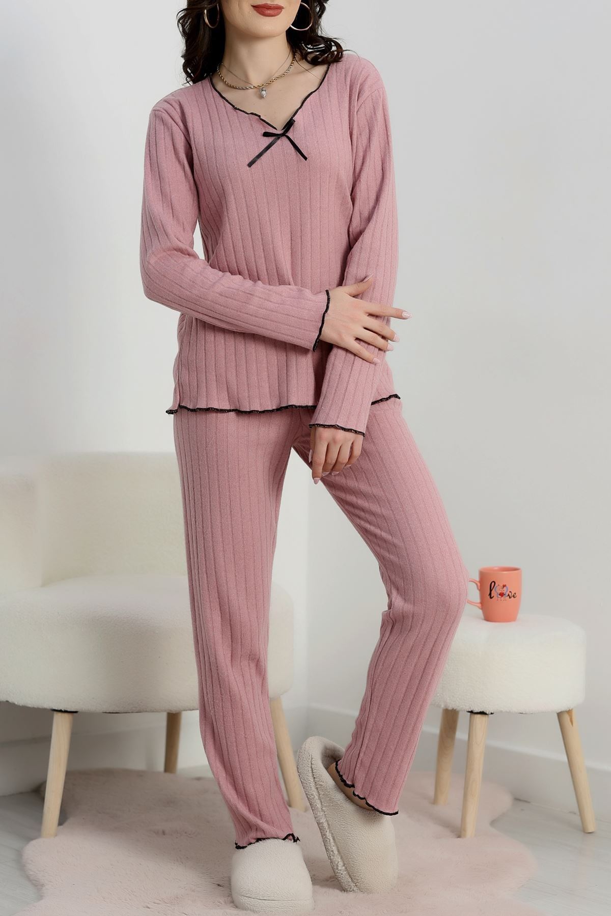 Fitilli İnterlok Kurdeleli Pijama Takımı Pembe - 70796.1048.