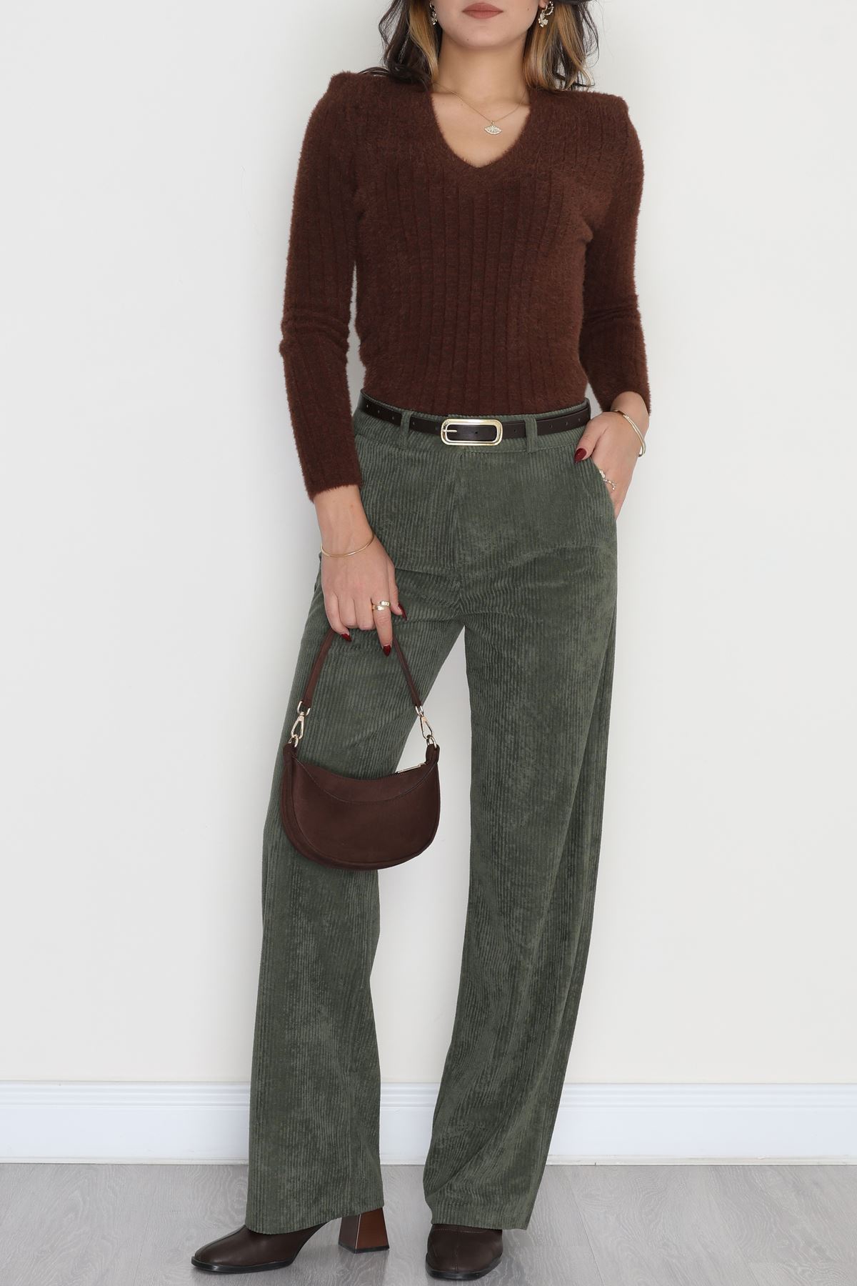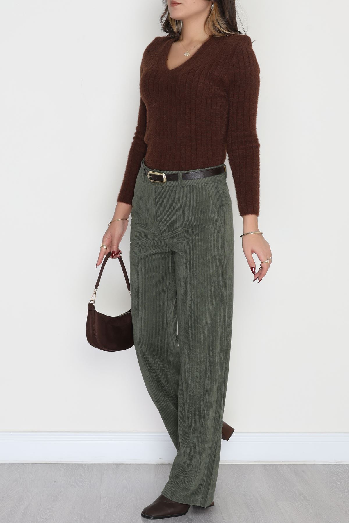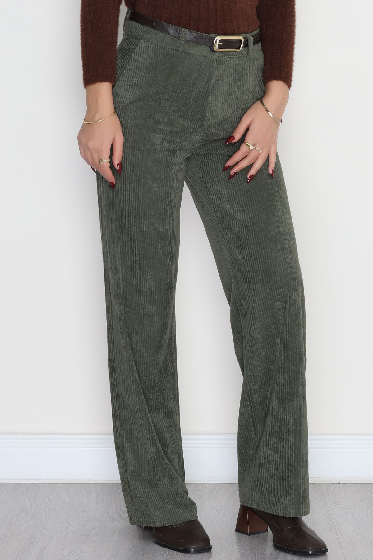 Fitilli Likralı Kadife Pantolon Haki - 51027.1920.