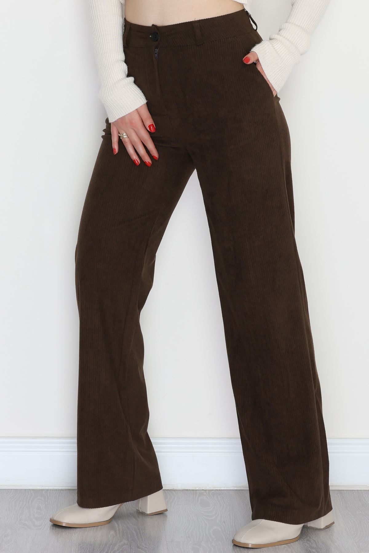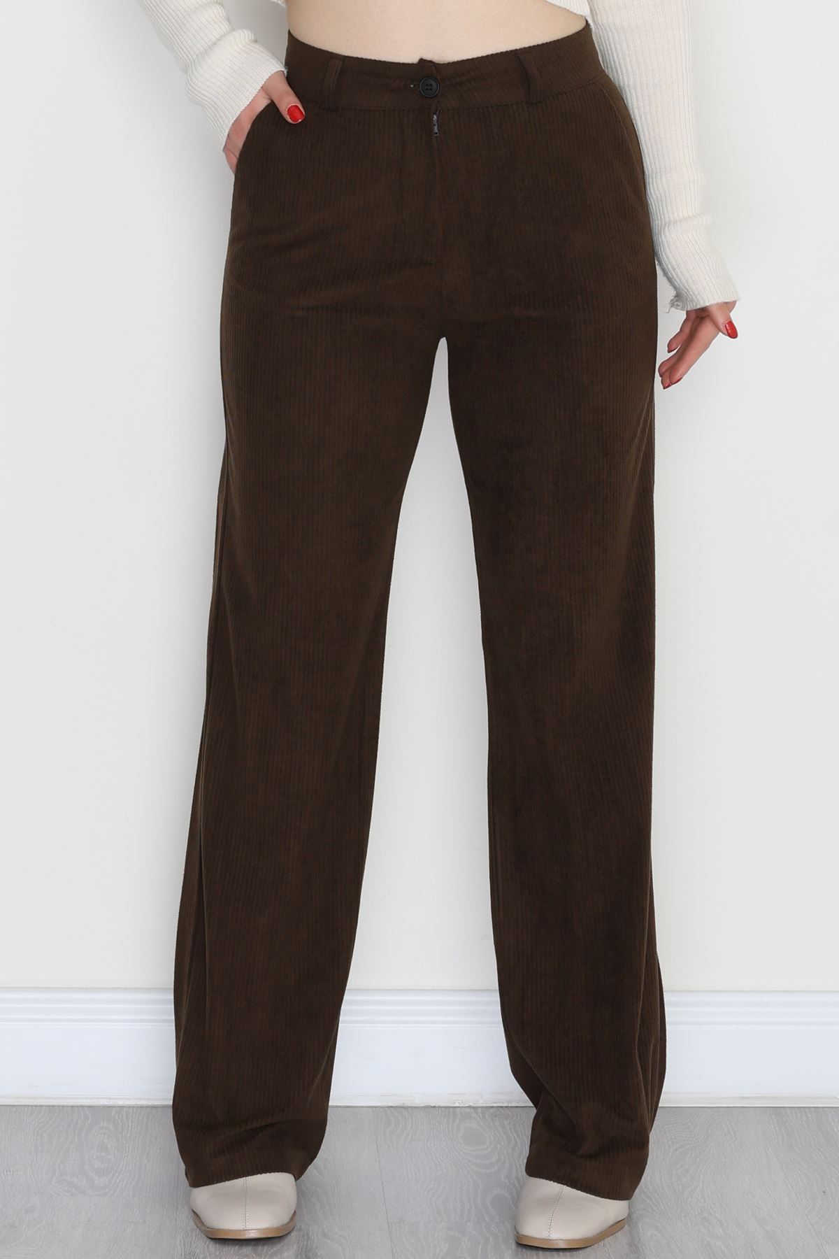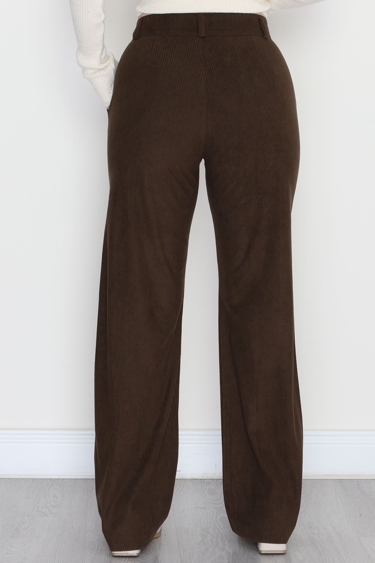 Fitilli Likralı Kadife Pantolon Kahve - 51027.1920.