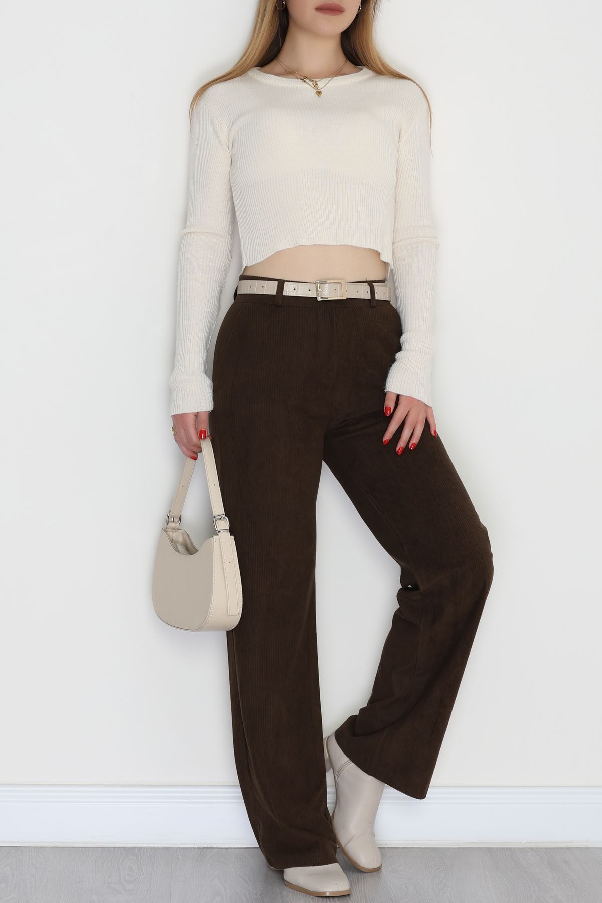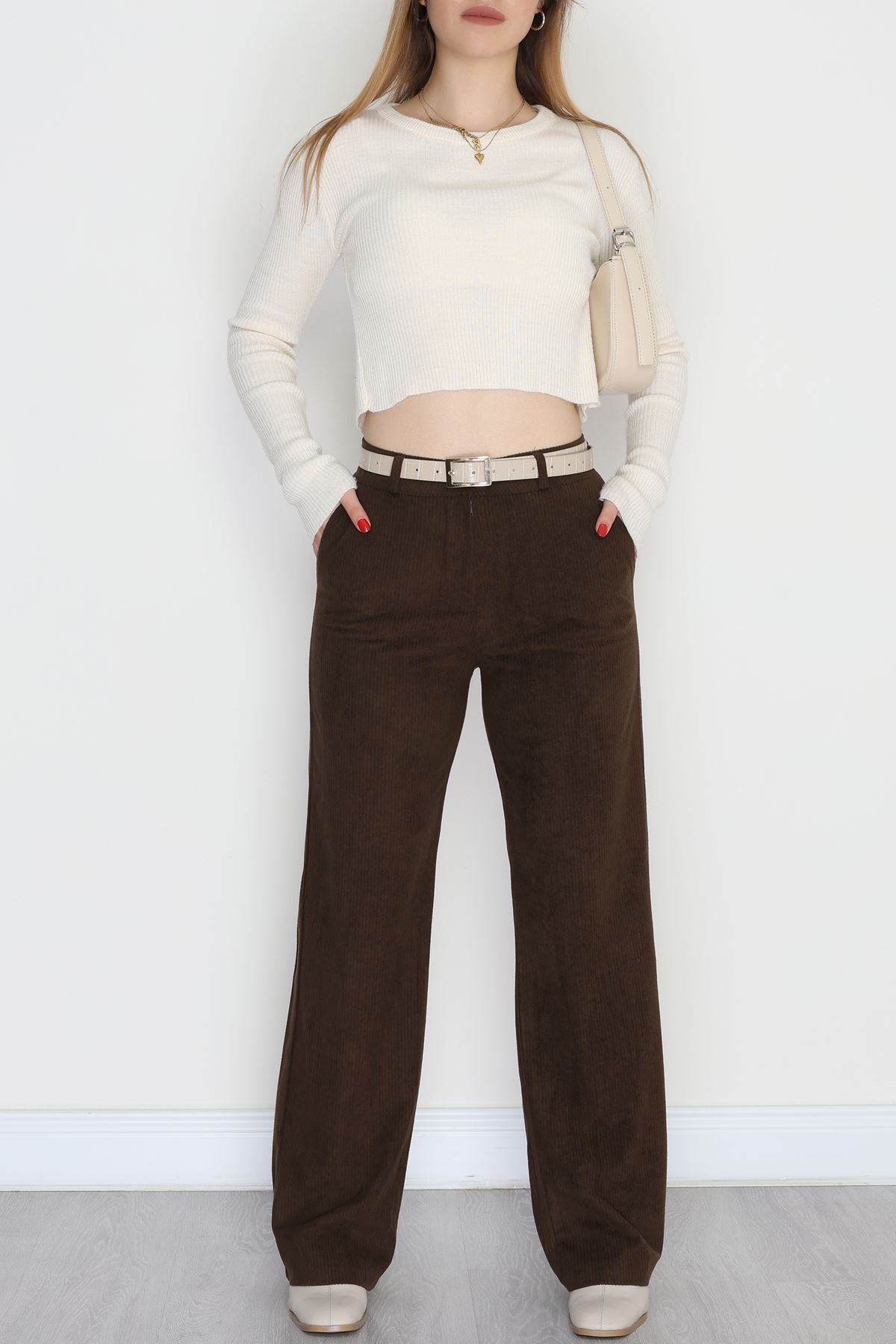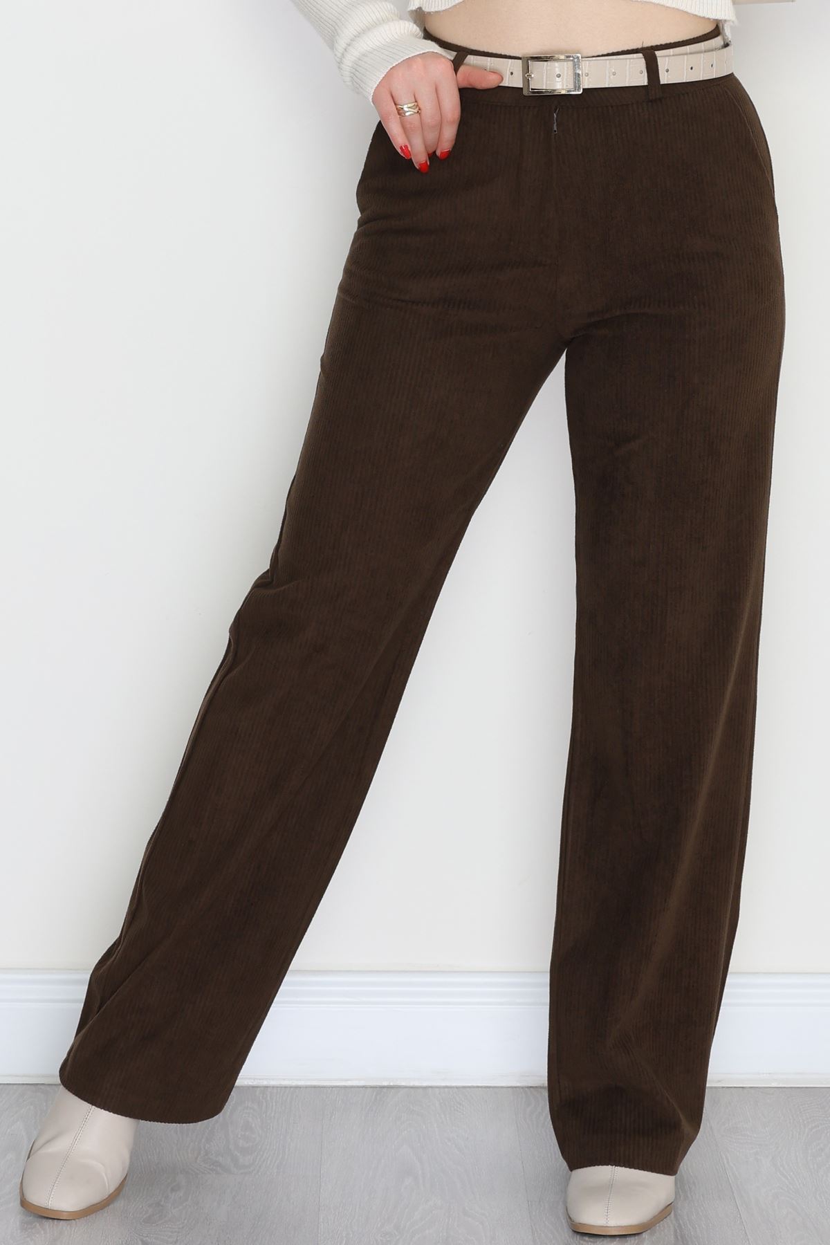 Fitilli Likralı Kadife Pantolon Kahve - 51027.1920.