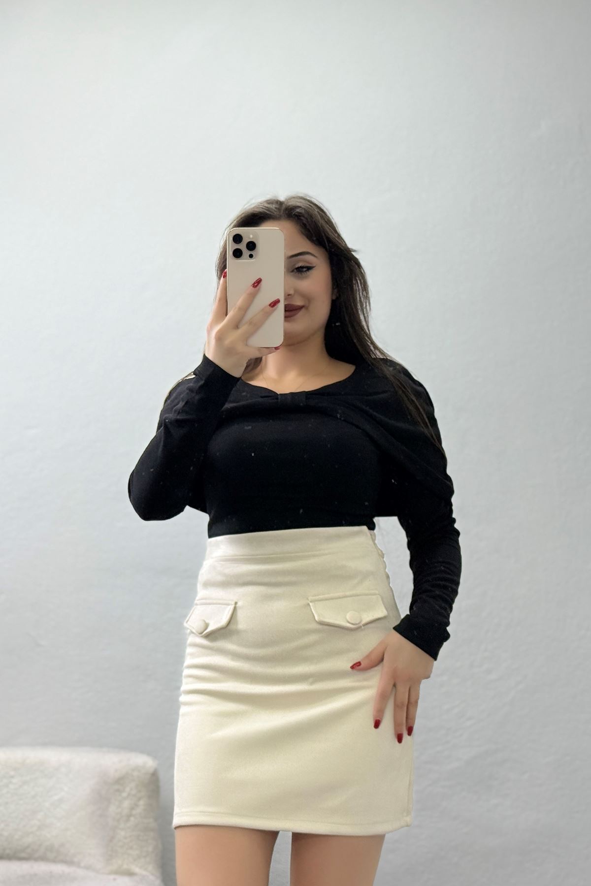 Fitilli Modal Kumaş Fiyonk Detay Bluz Siyah - 70871.1918.