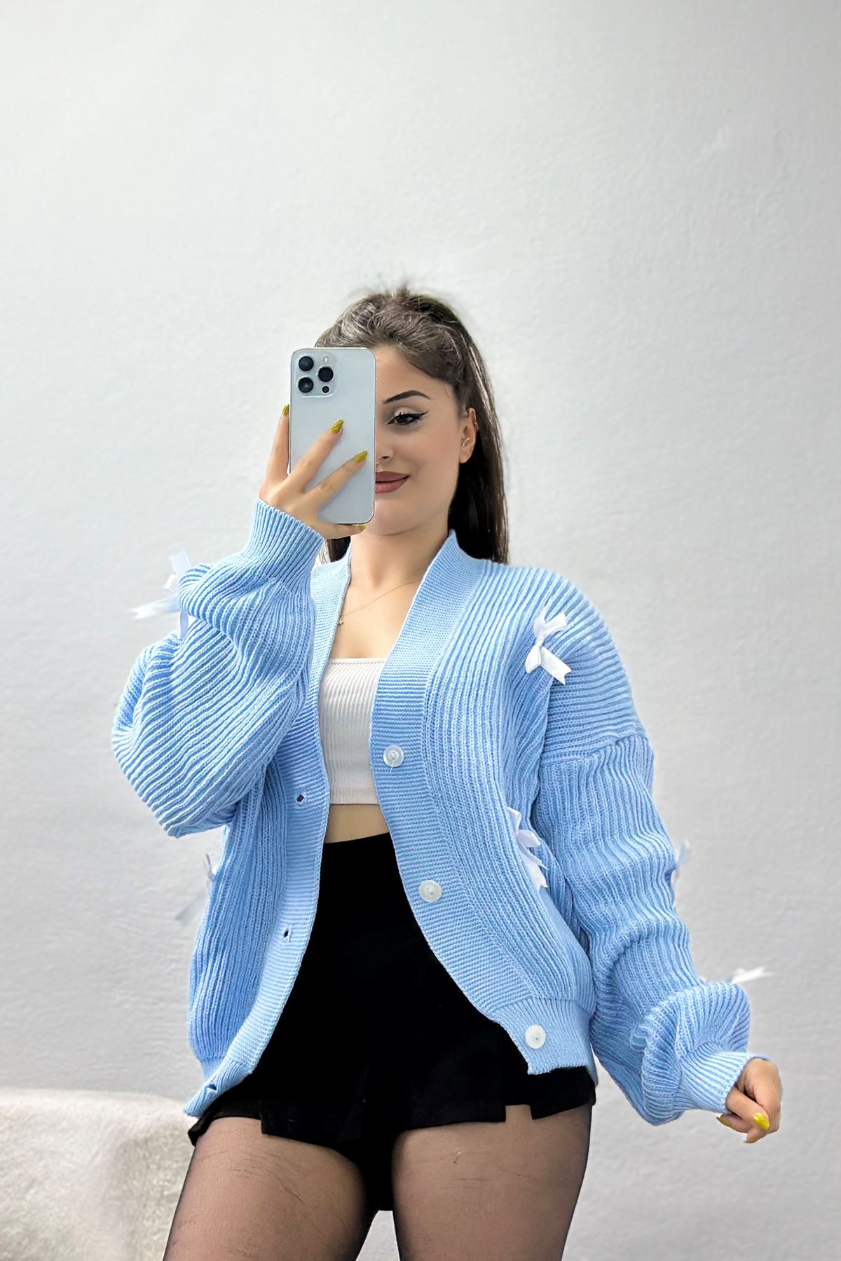 Fiyonklu Düğmeli Hırka Bebemavi - 4075.2043.