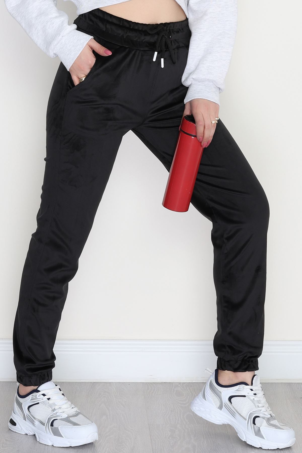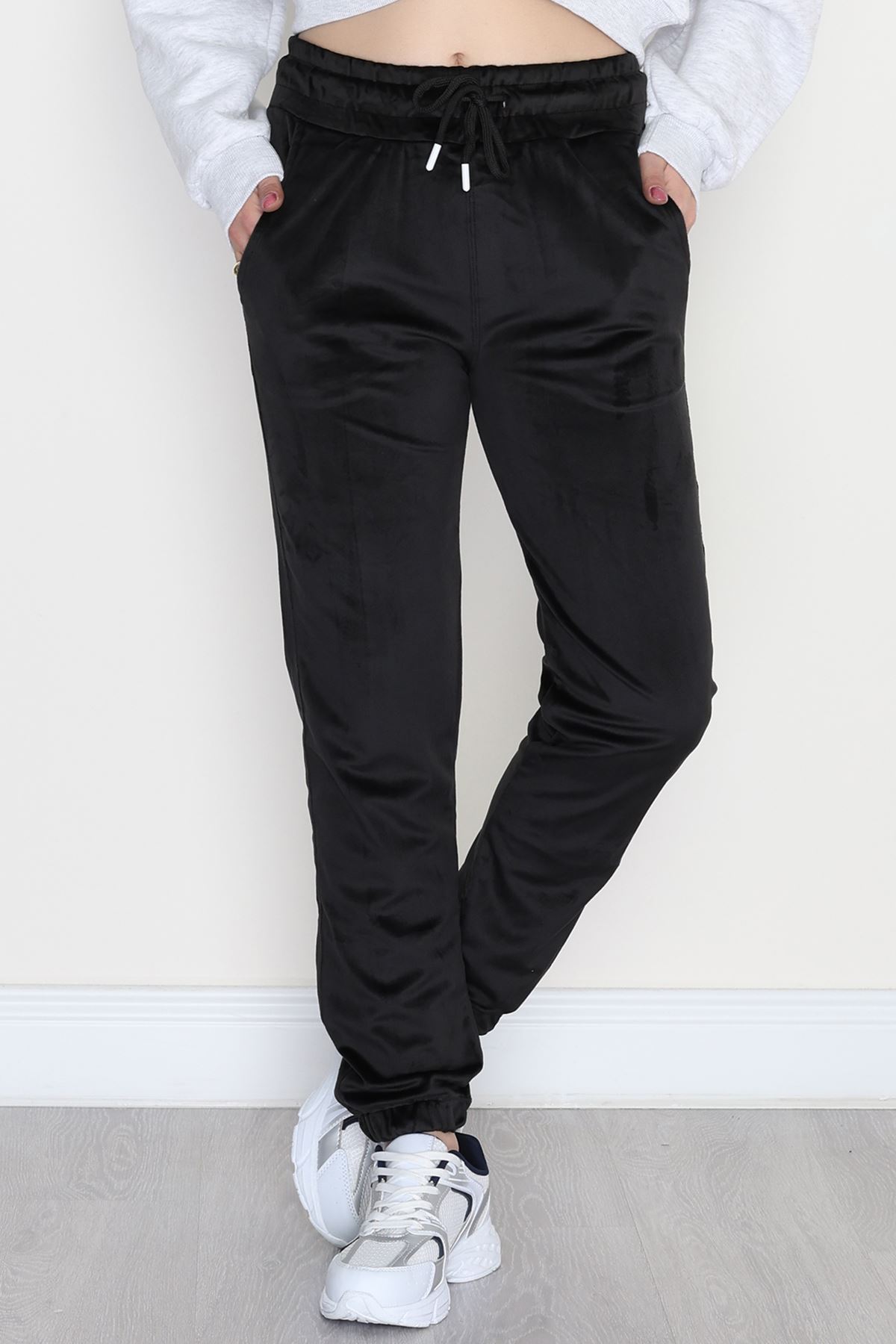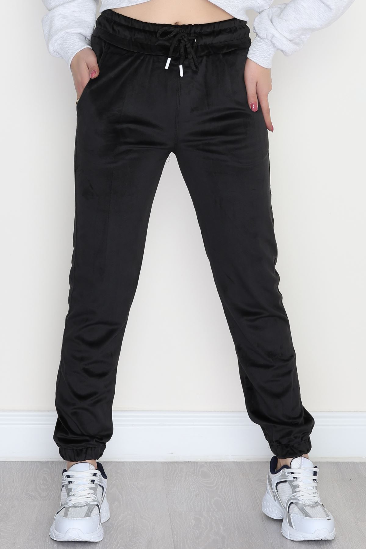 Fransız Kadife Likralı Eşofman Altı Siyah - 80902.1301.