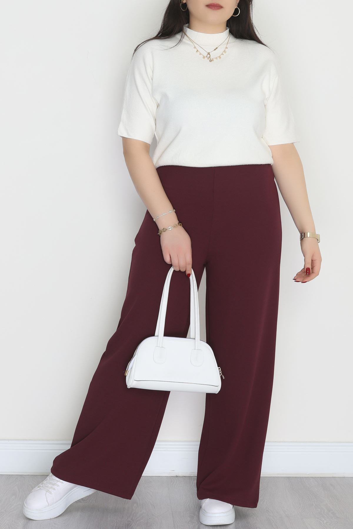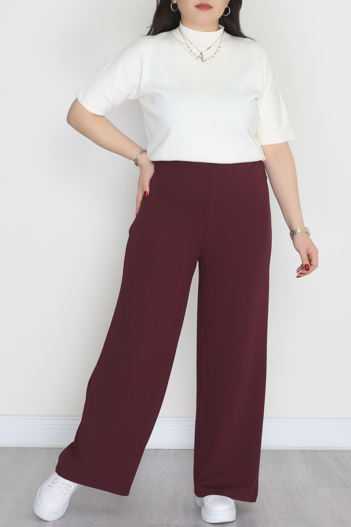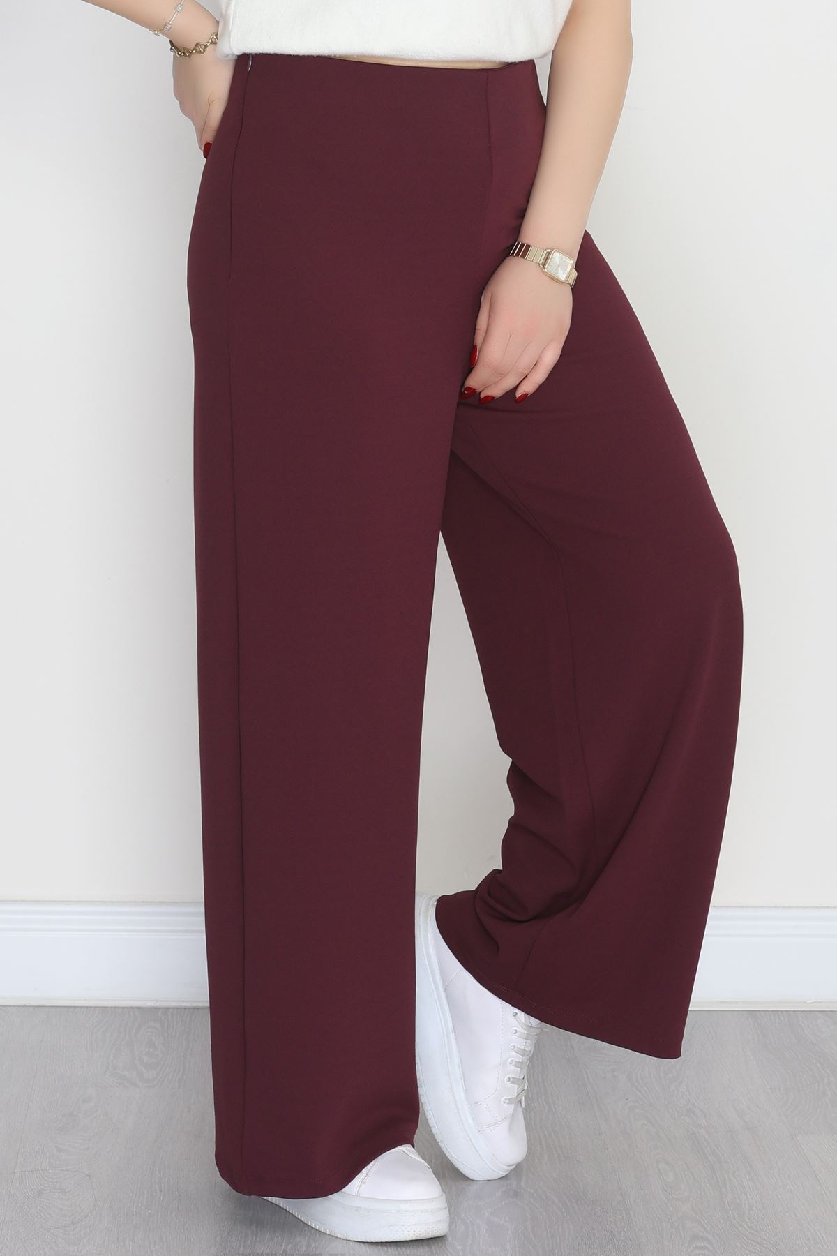 Full Likra İthal Krep Yandan Fermuarlı Büyük Beden Pantolon Sumak - 90162.1837.