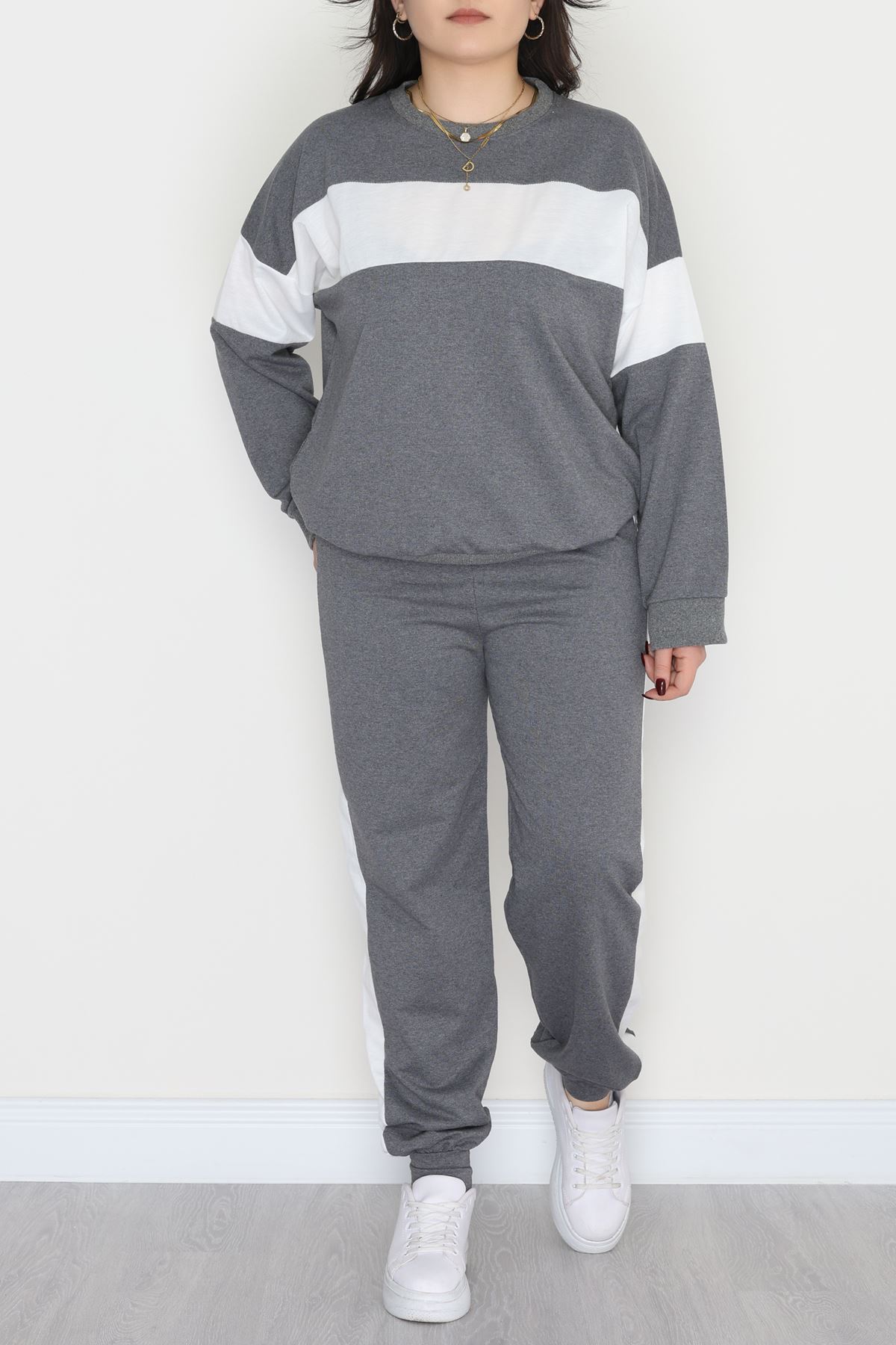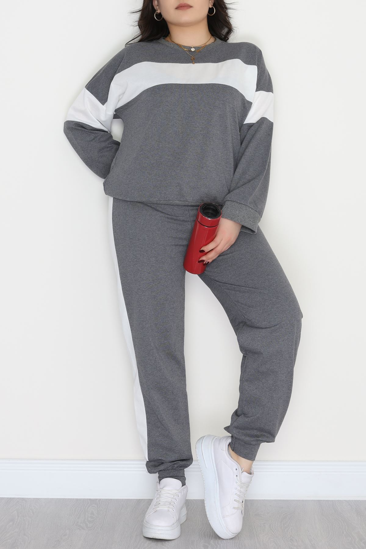 Garnili 2 İplik Büyük Beden Eşofman Takımı Füme - 50783.1857.