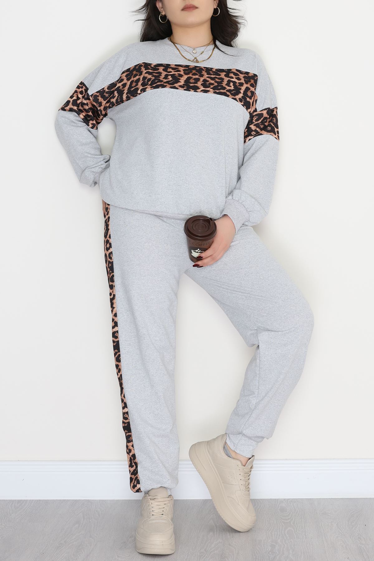 Garnili 2 İplik Büyük Beden Eşofman Takımı Gri - 50782.1857.