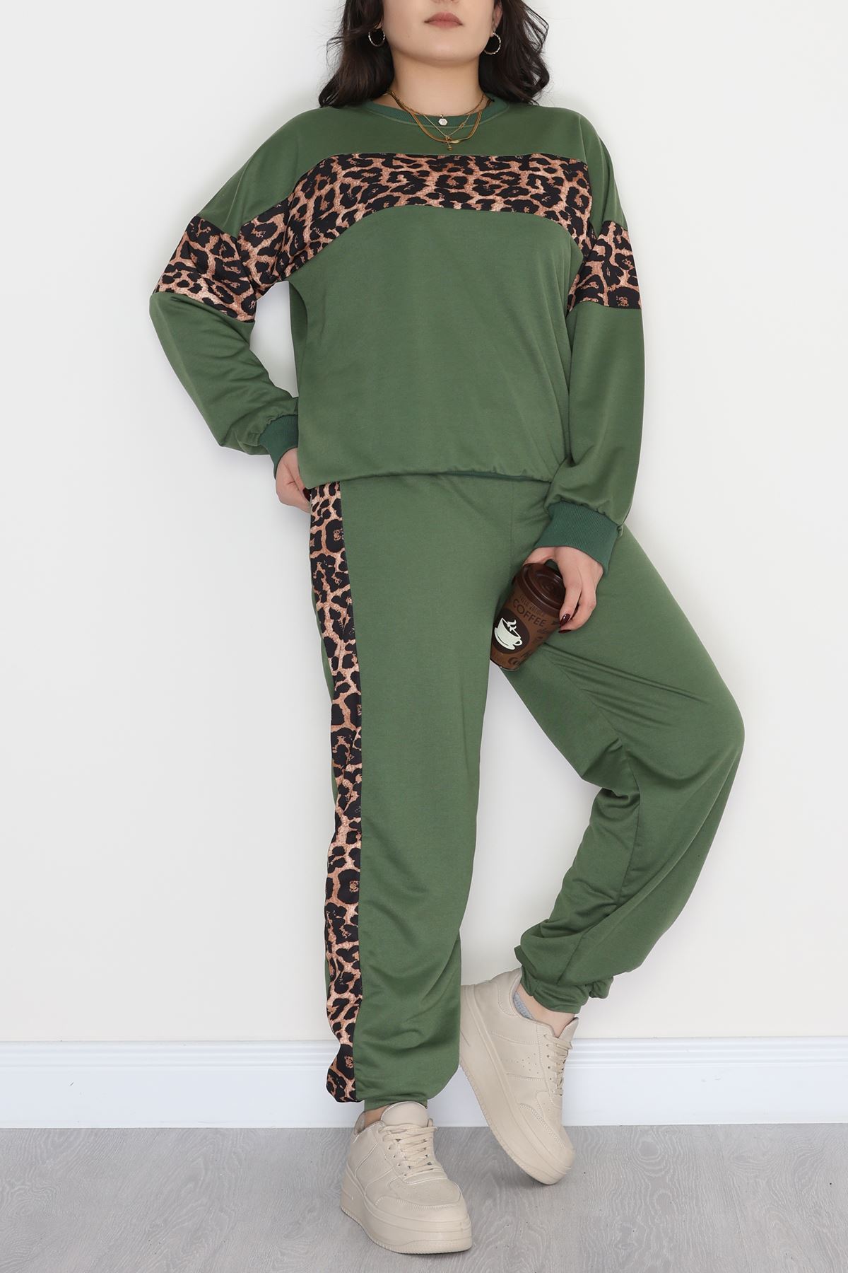 Garnili 2 İplik Büyük Beden Eşofman Takımı Haki - 50782.1857.
