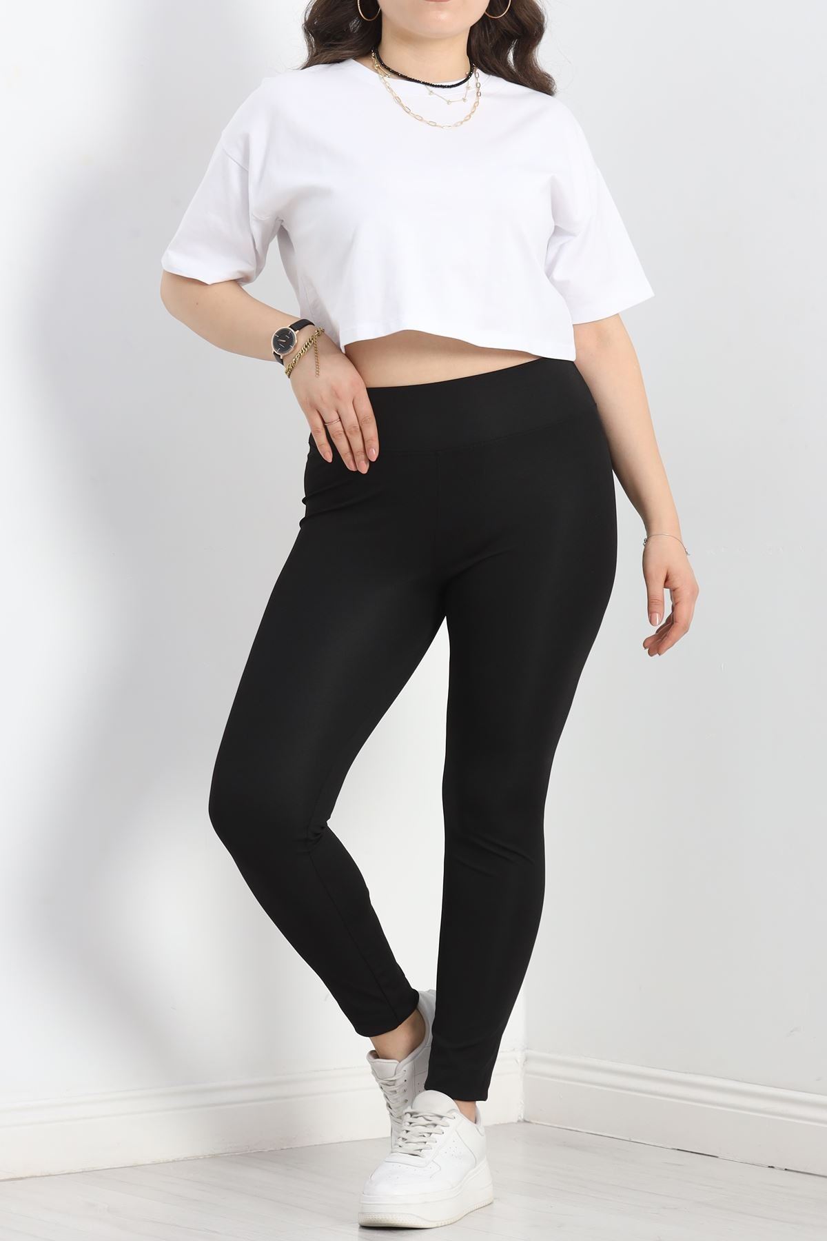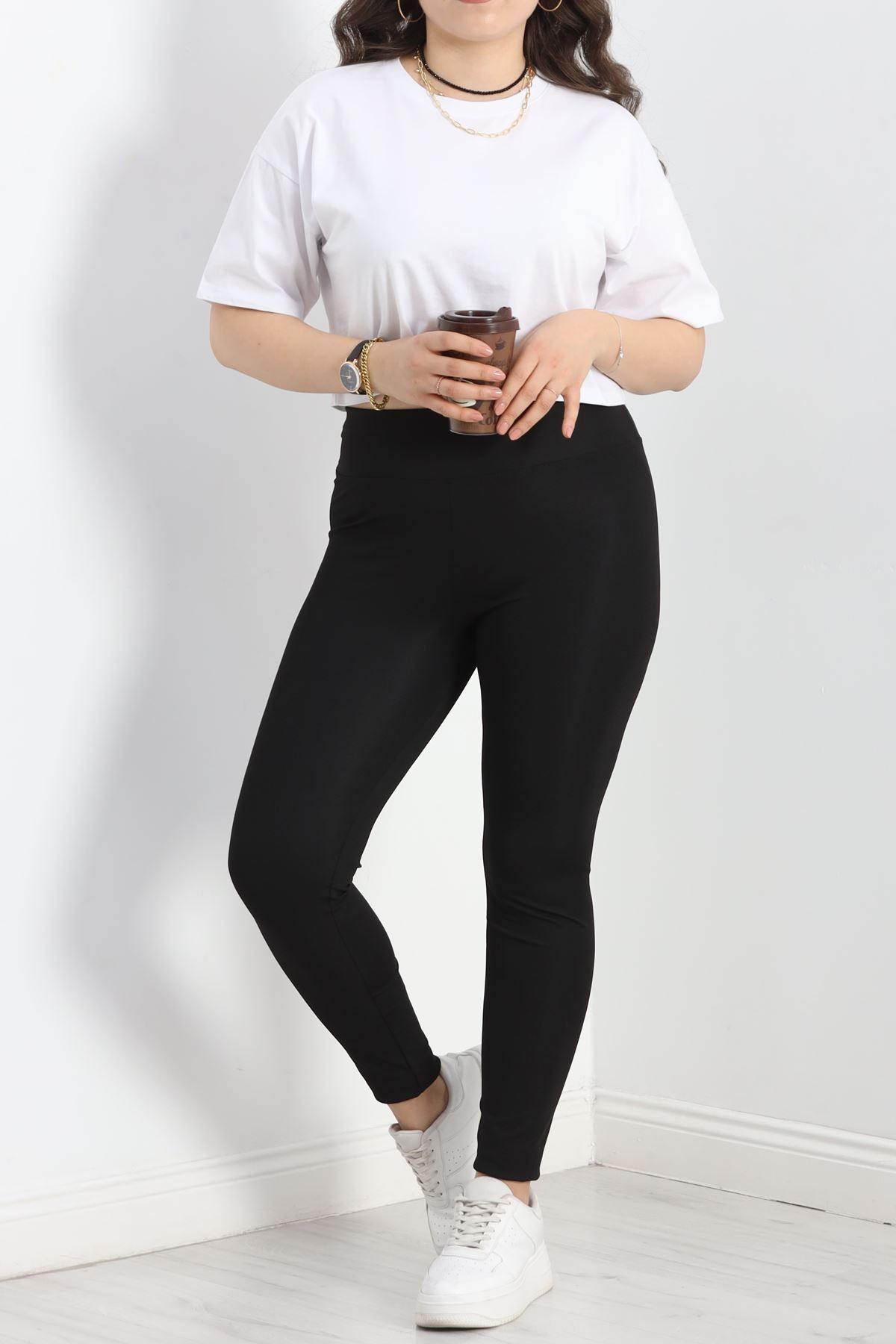 Geniş Kemer Büyük Beden Dalgıç Tayt Siyah - 50102.1098.