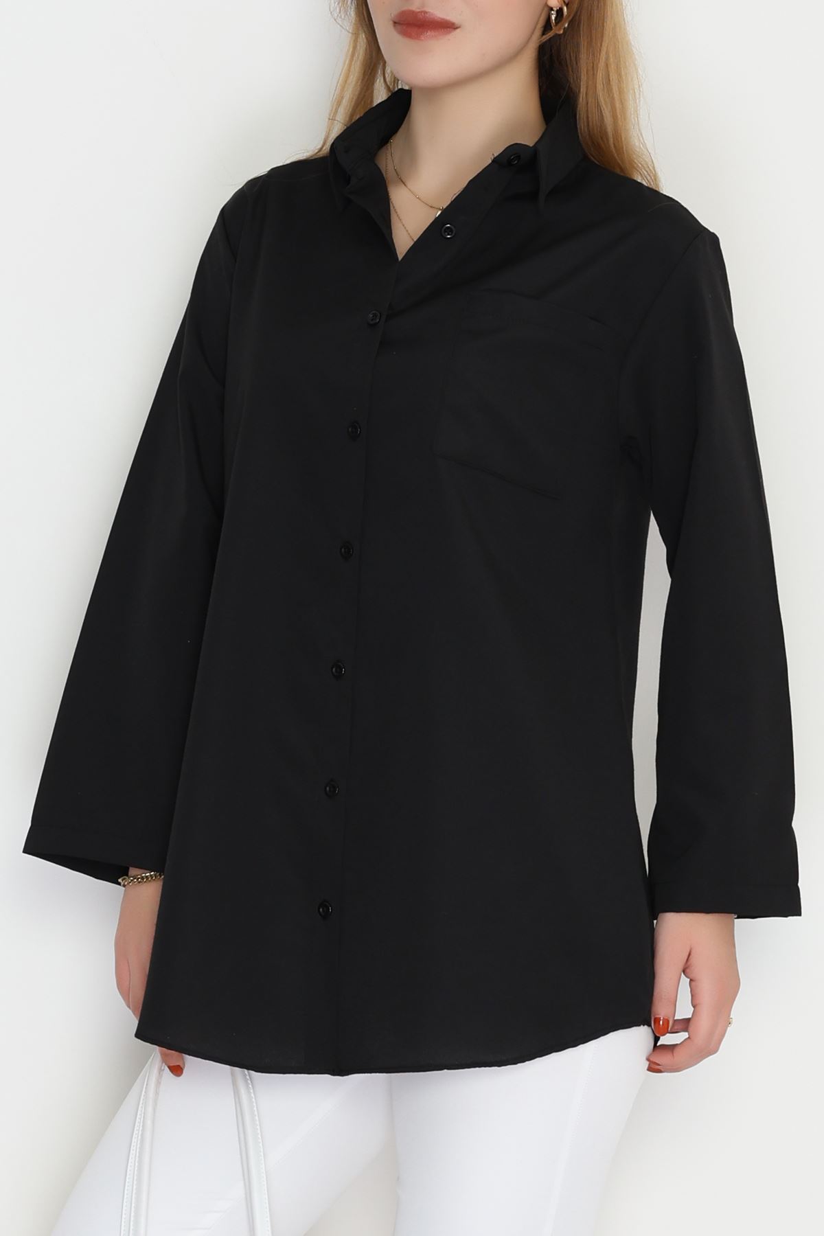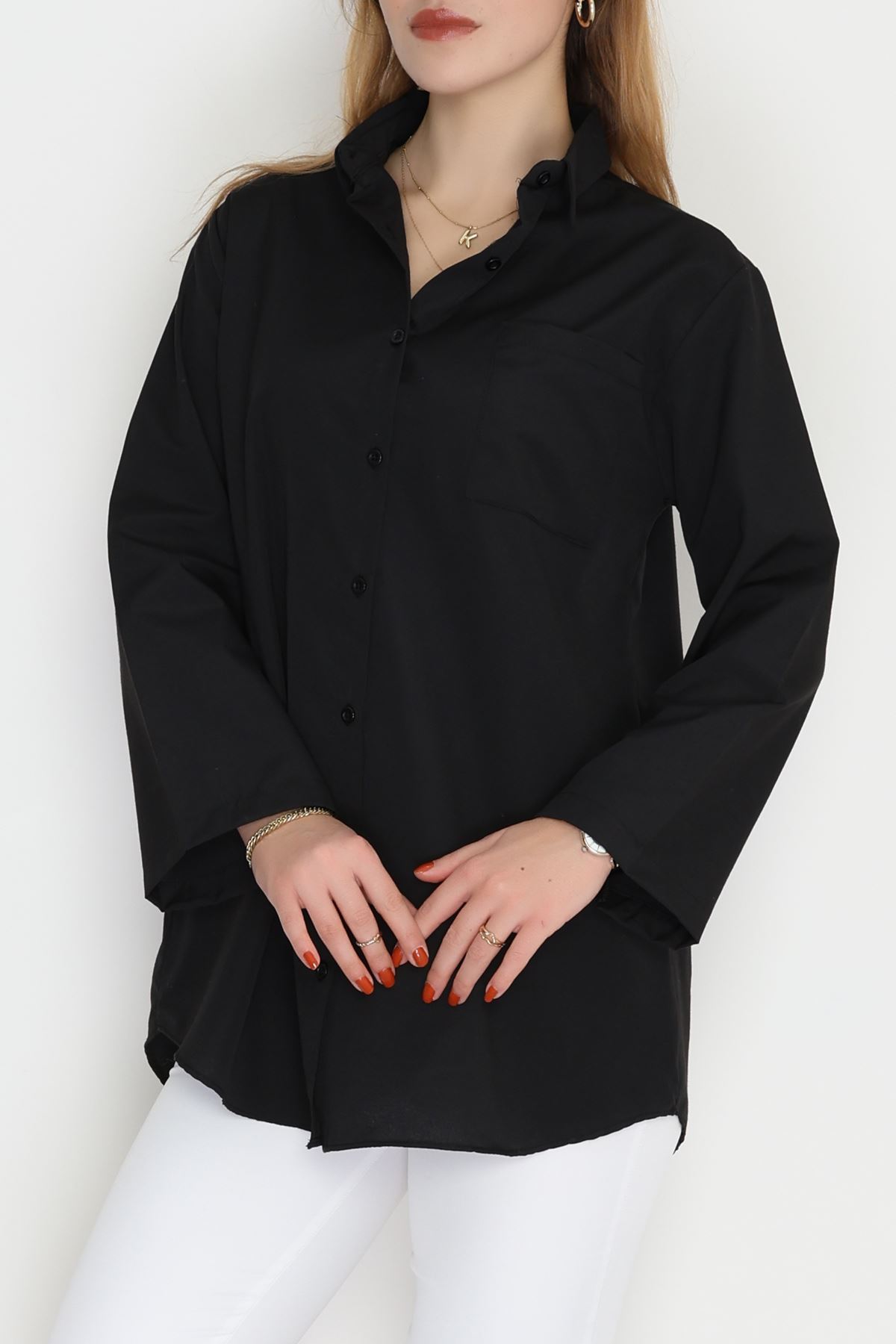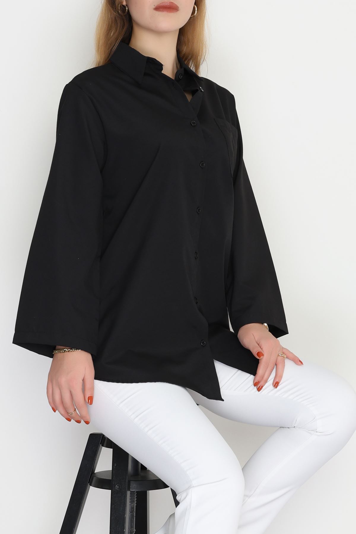 Geniş Kol Tek Cepli Oversize Terikoton Gömlek Siyah - 2029.1949.