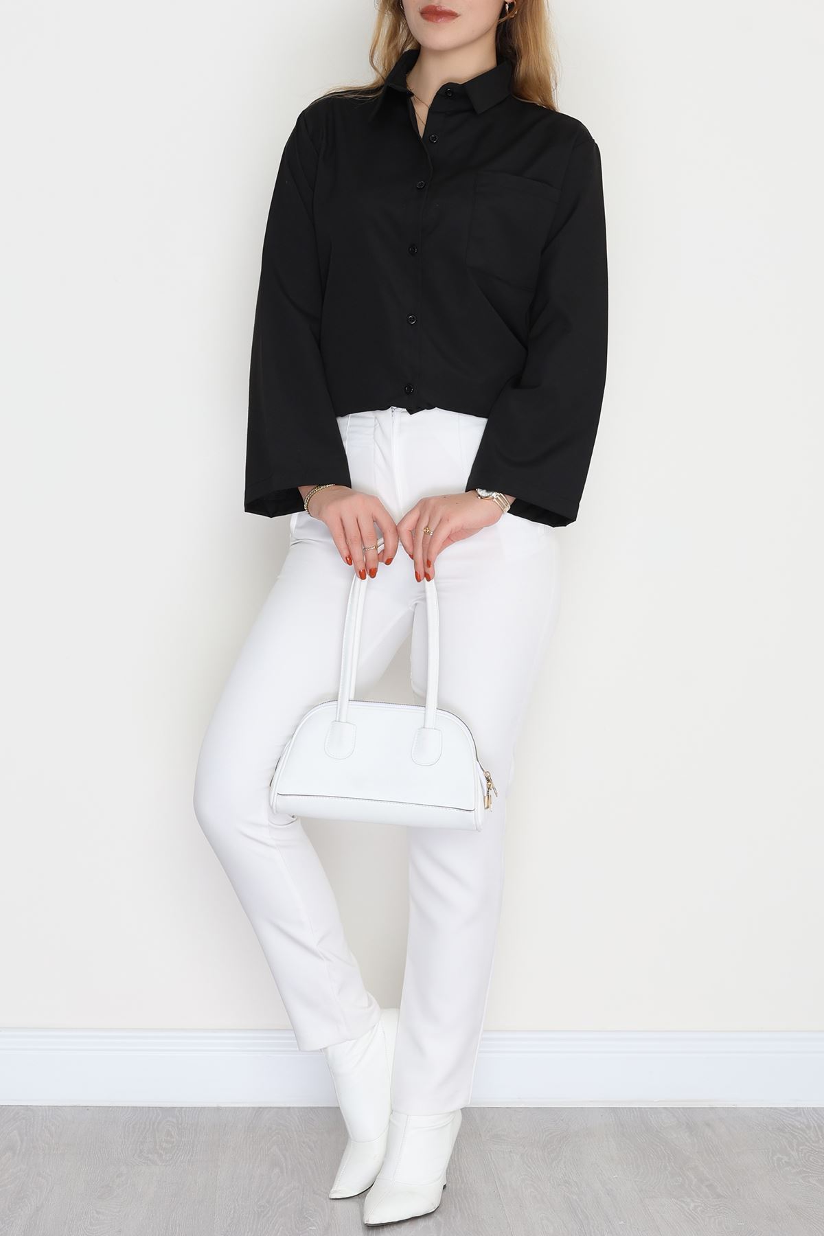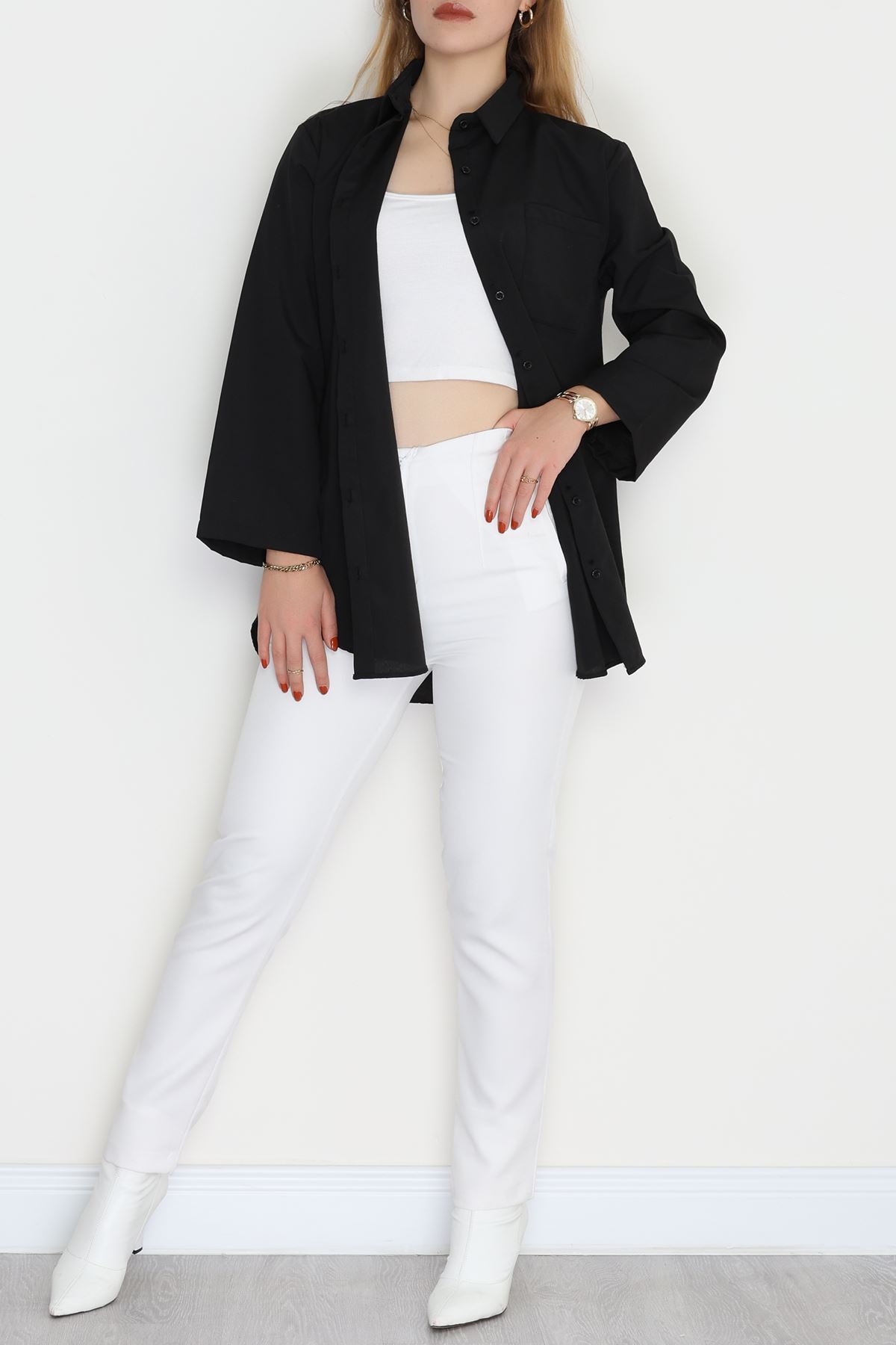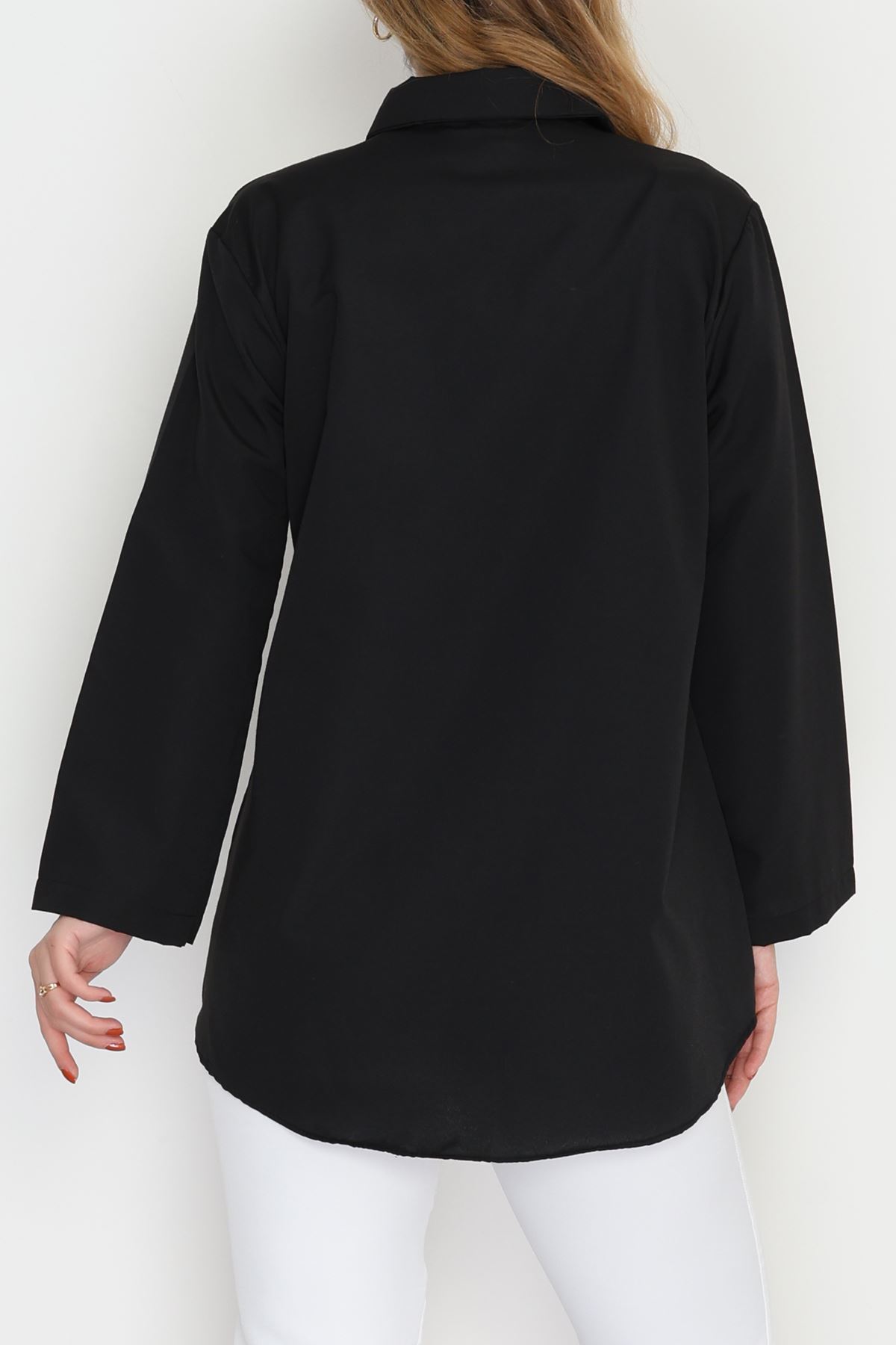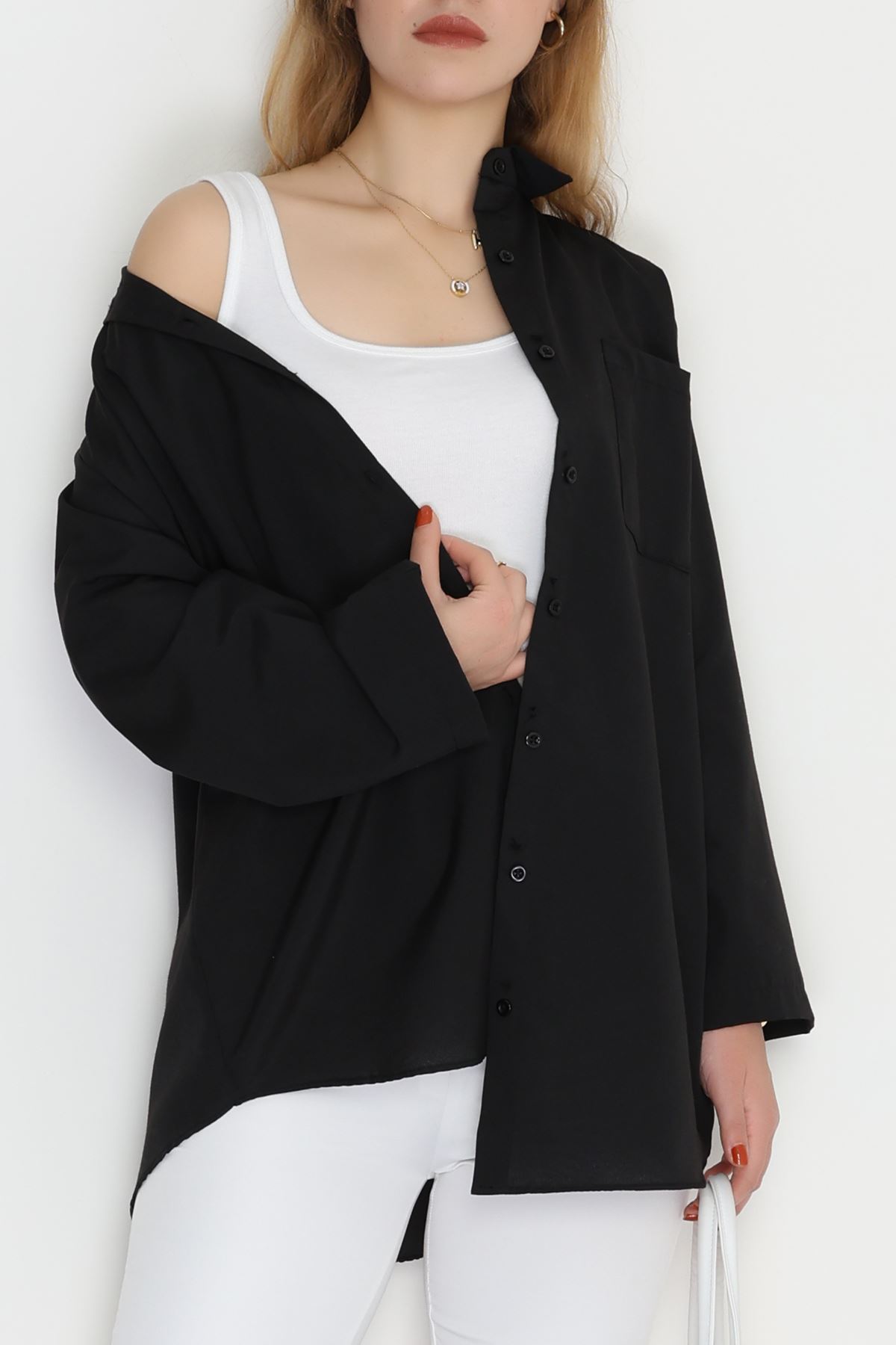 Geniş Kol Tek Cepli Oversize Terikoton Gömlek Siyah - 2029.1949.