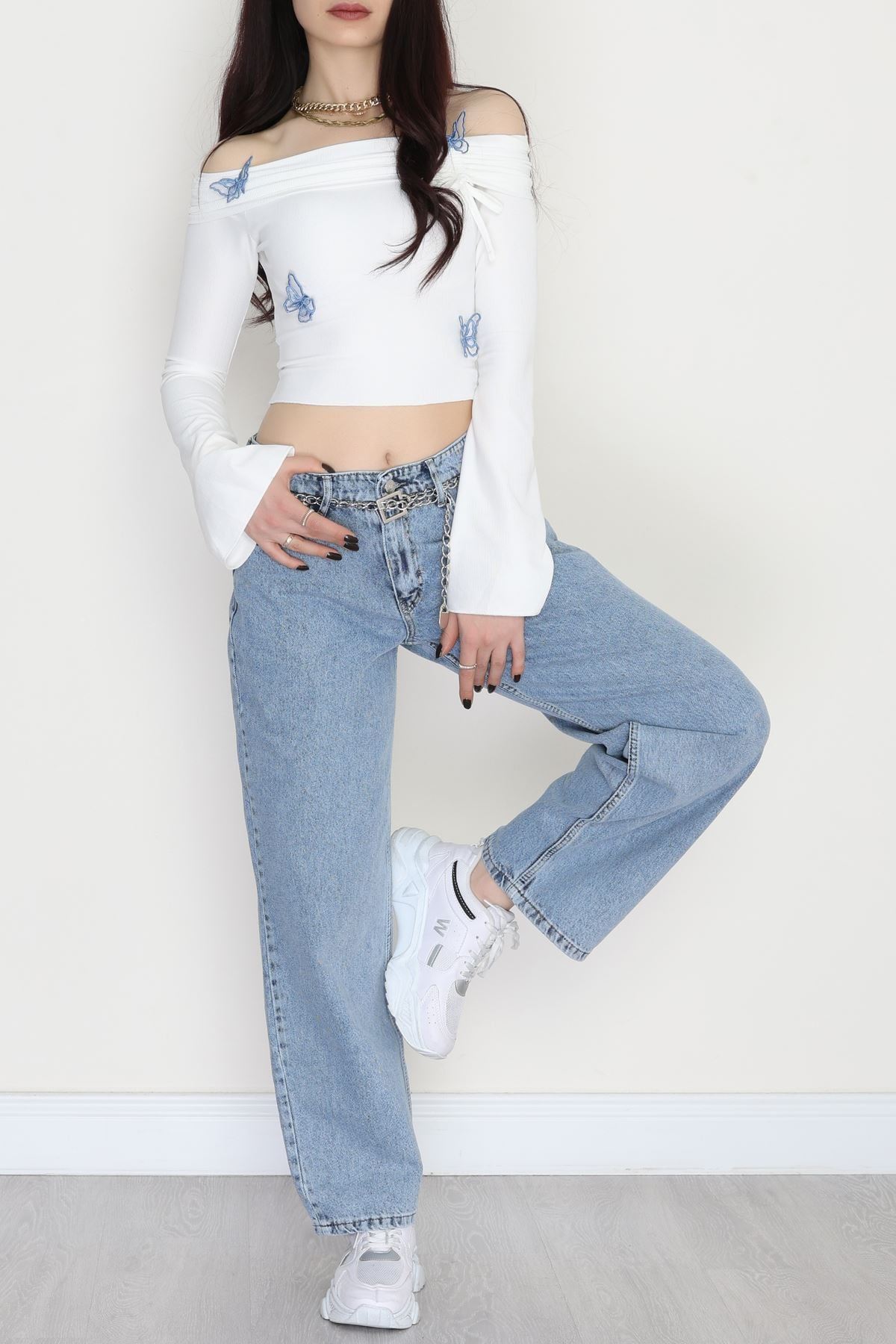 Tokalı Baggy Kot Pantolon Mavi - 31581.1184.