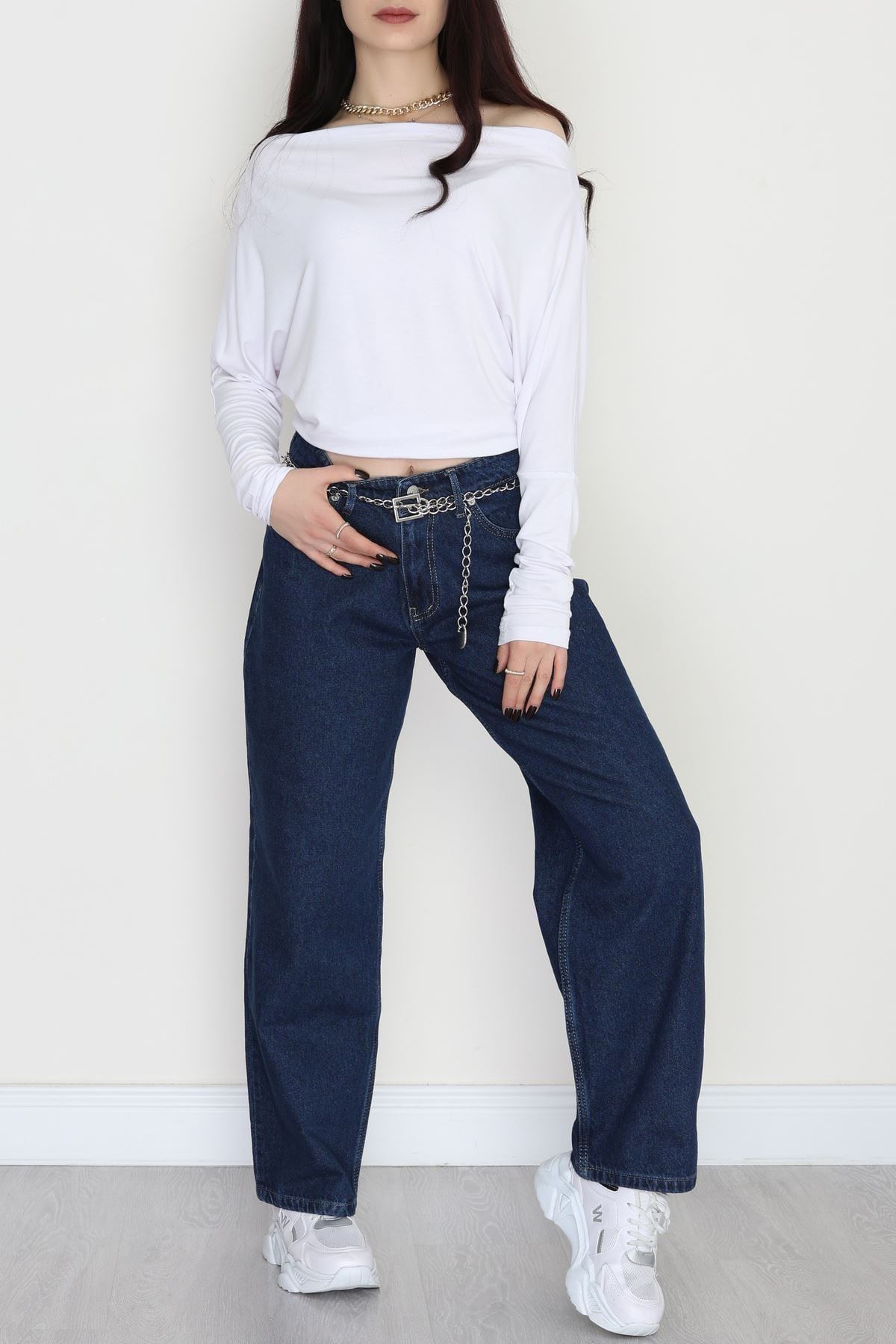 Tokalı Baggy Kot Pantolon Lacivert - 31159.2059.