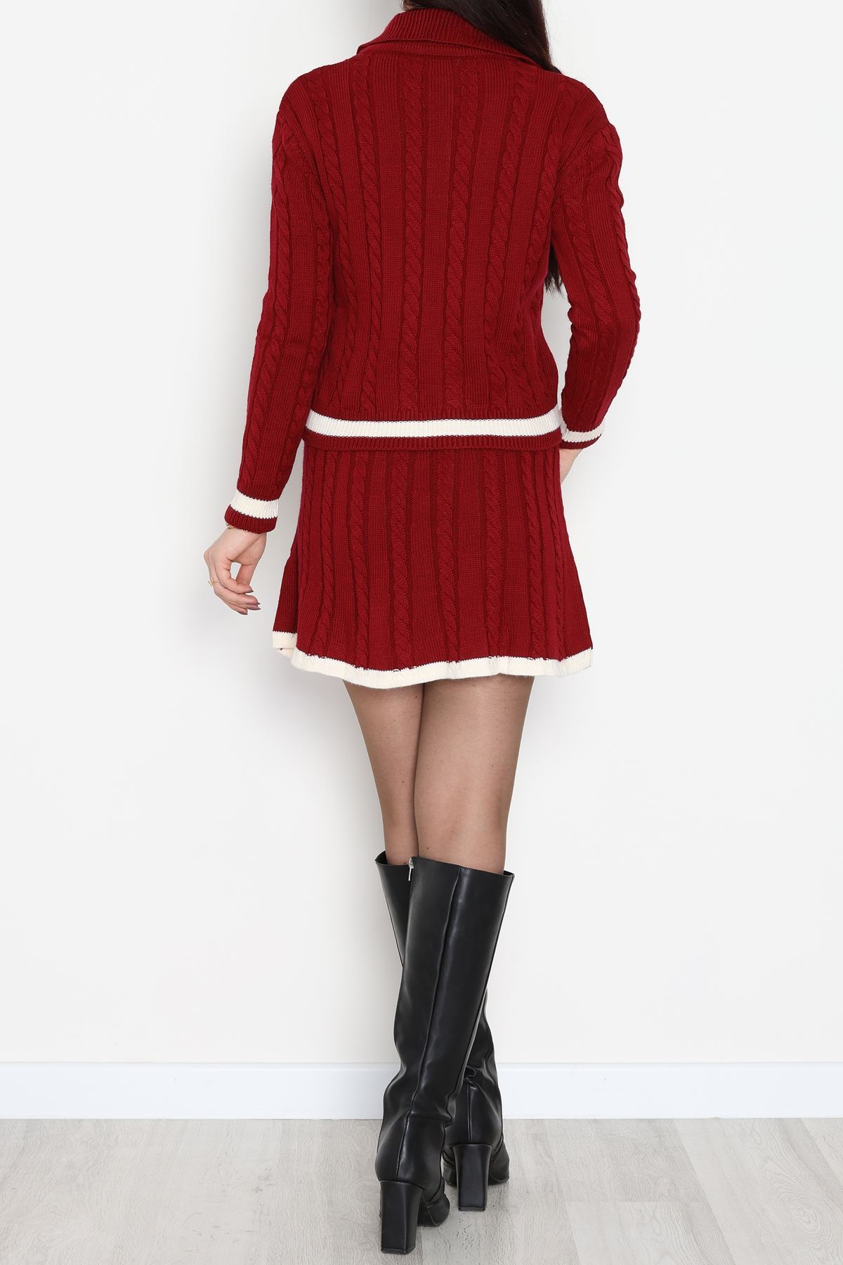 Gömlek Yaka Etekli Triko Takım Bordo - 2300.1247.