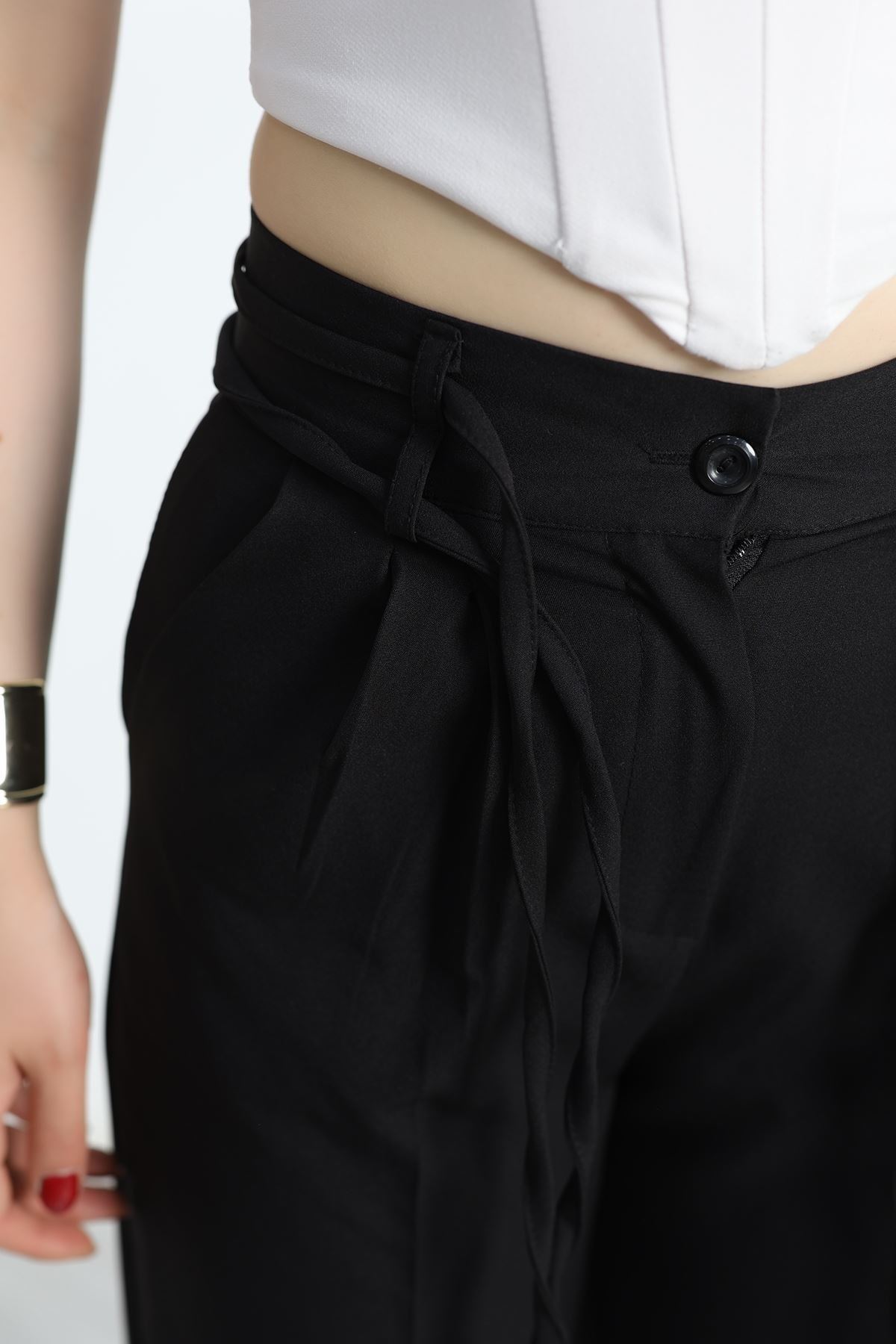 Kemerli Kumaş Pantolon Siyah - 20369.1397.