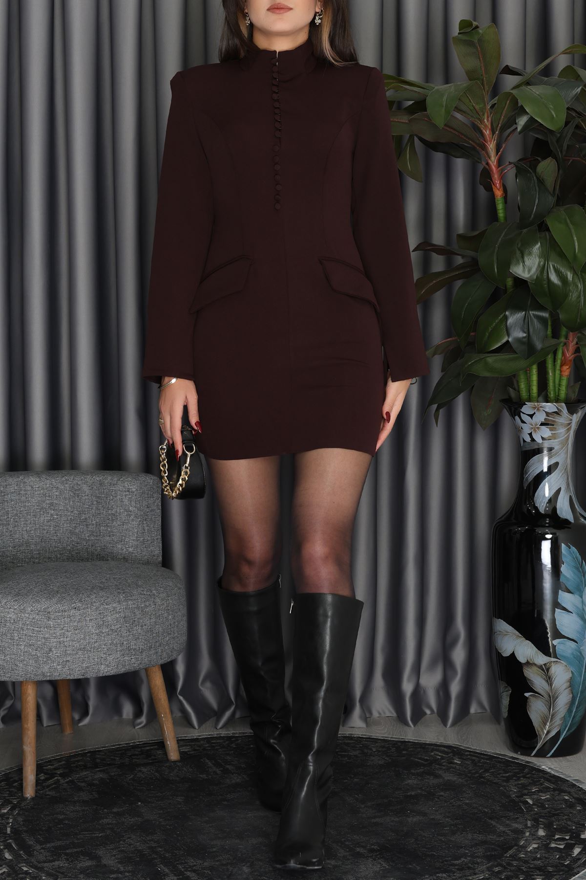 İspanyol Kol Düğmeli Elbise Sumak - 42461.1997.