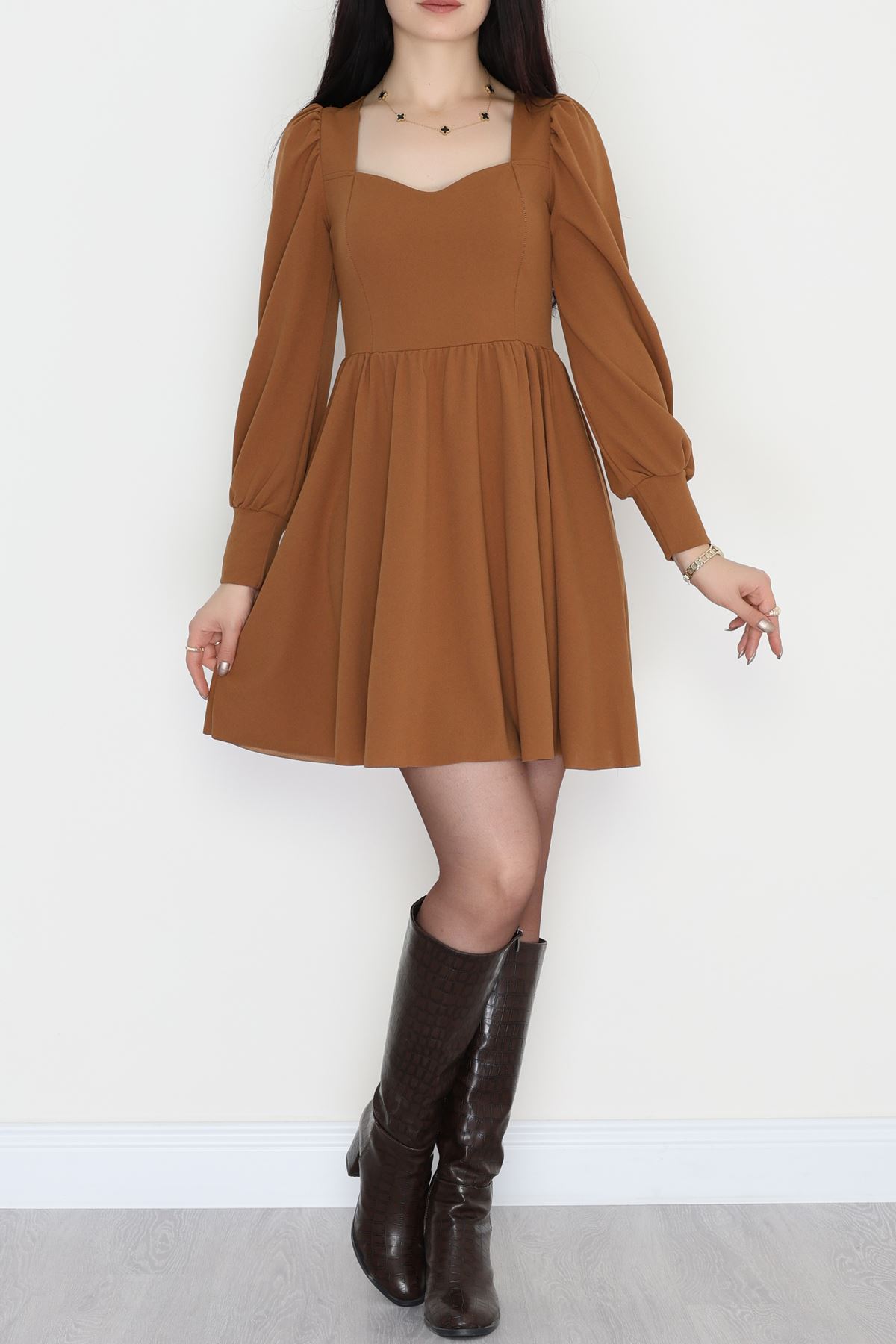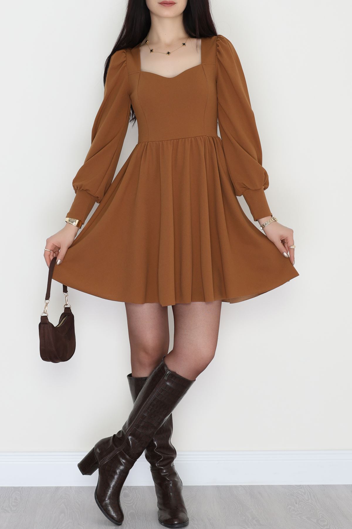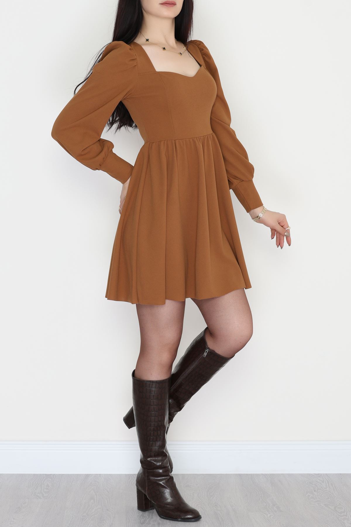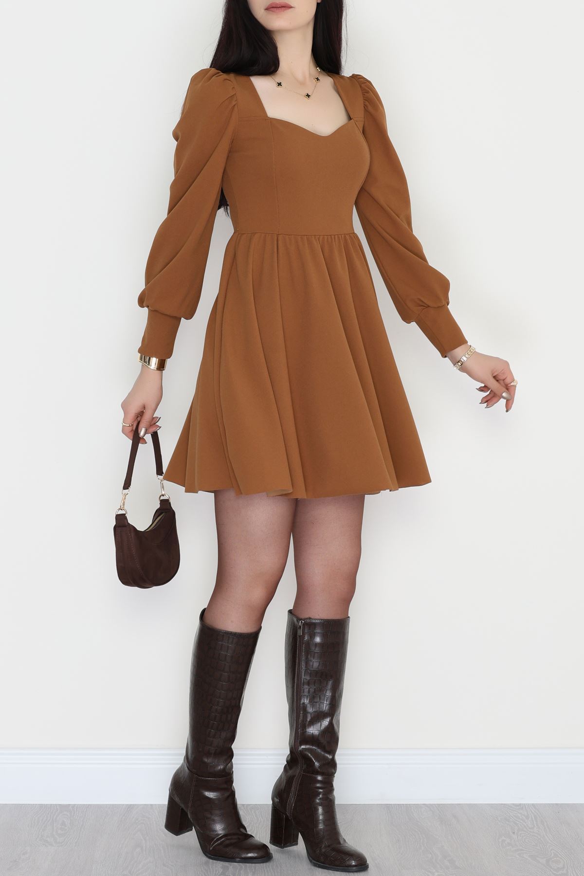 İthal Krep Kloş Elbise Kahve - 582293.1592.