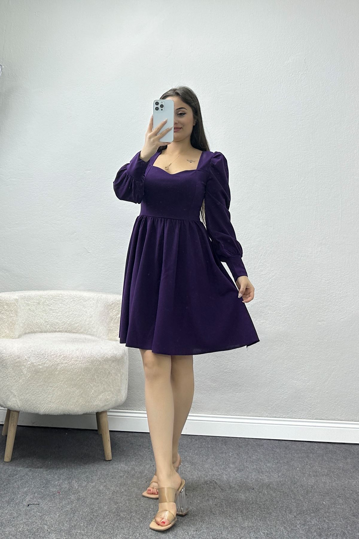 İthal Krep Kloş Elbise Mor - 582293.1592.