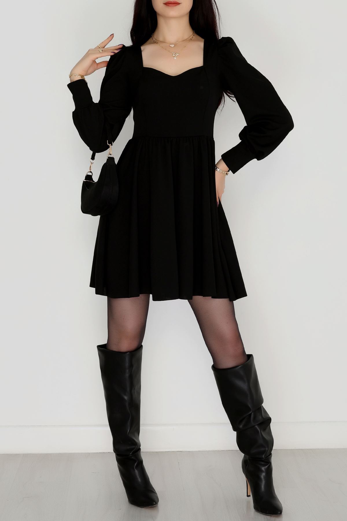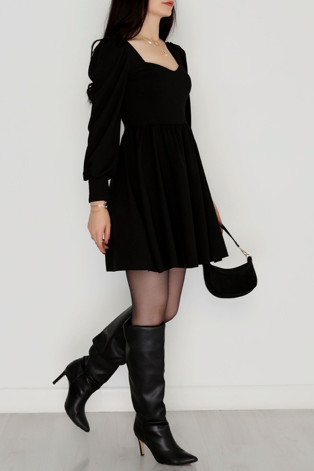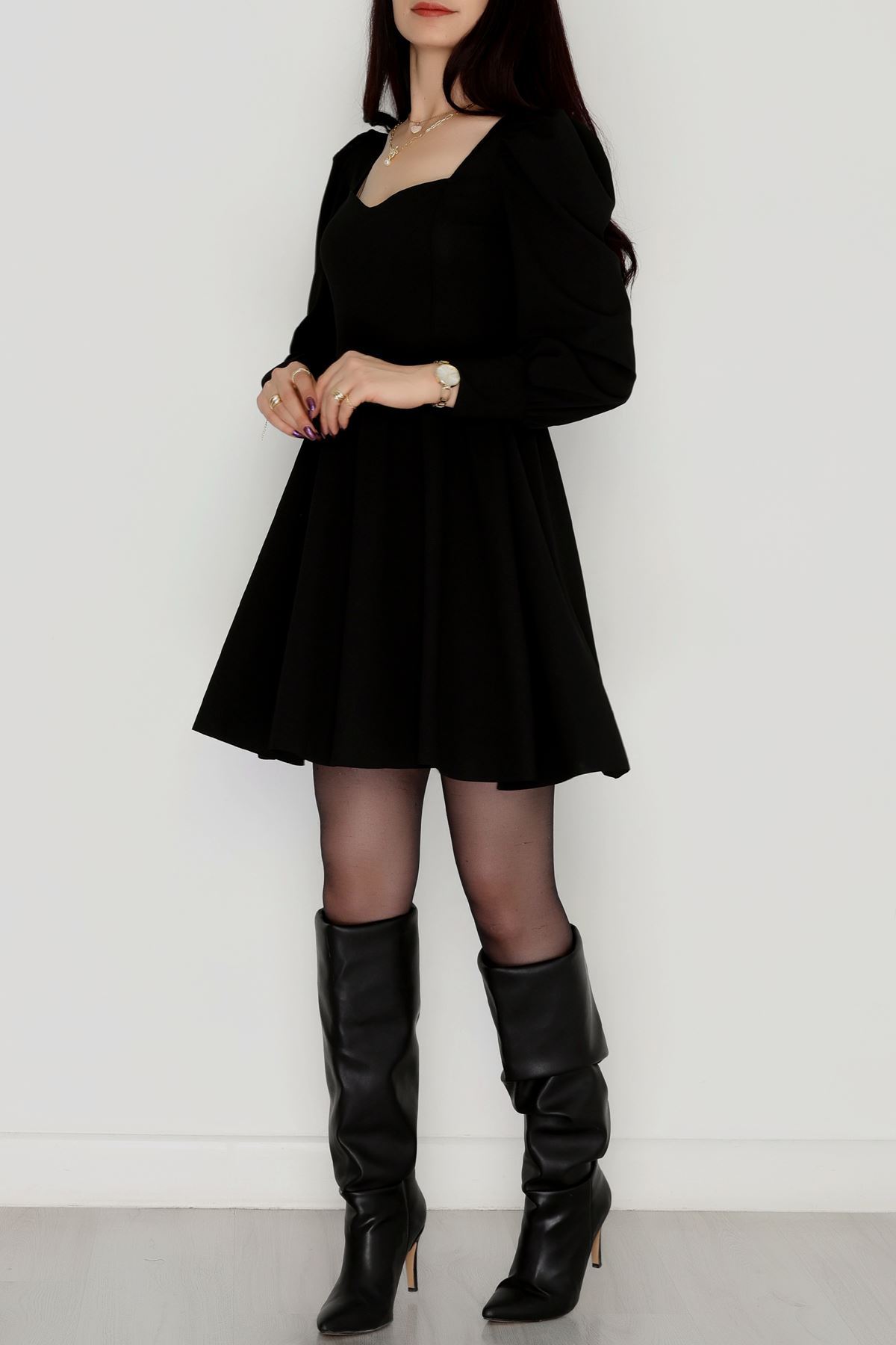 İthal Krep Kloş Elbise Siyah - 582293.1592.