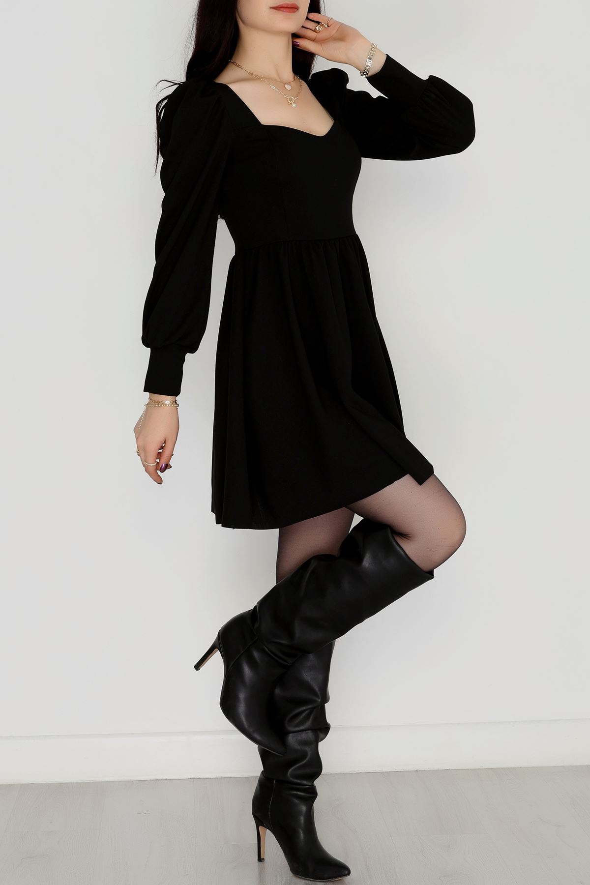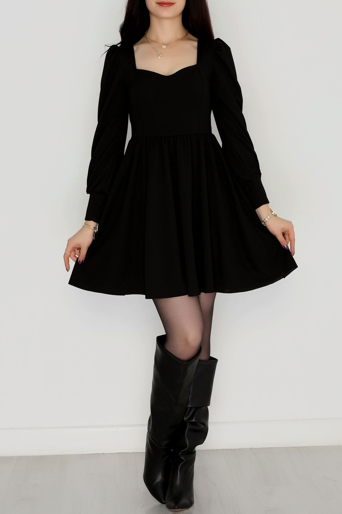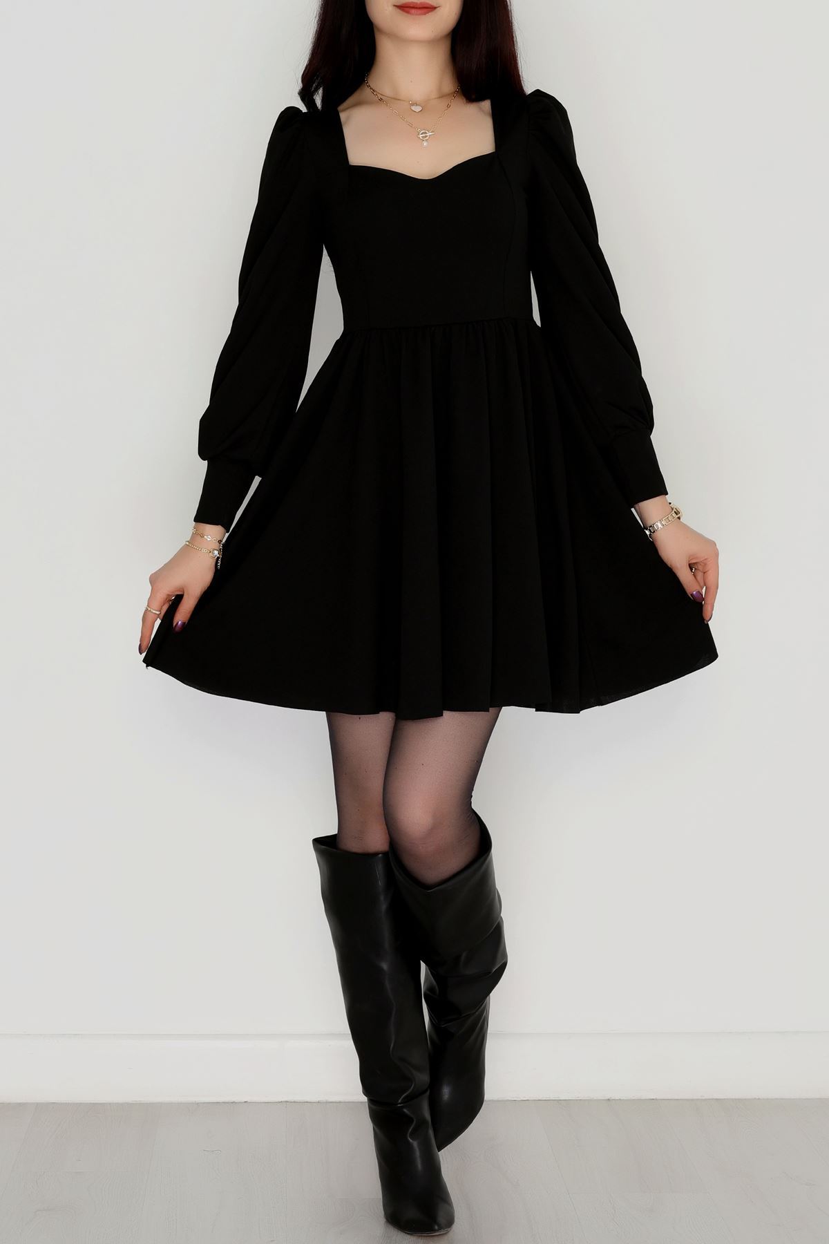 İthal Krep Kloş Elbise Siyah - 582293.1592.