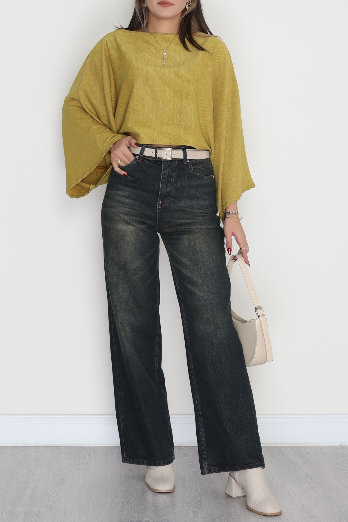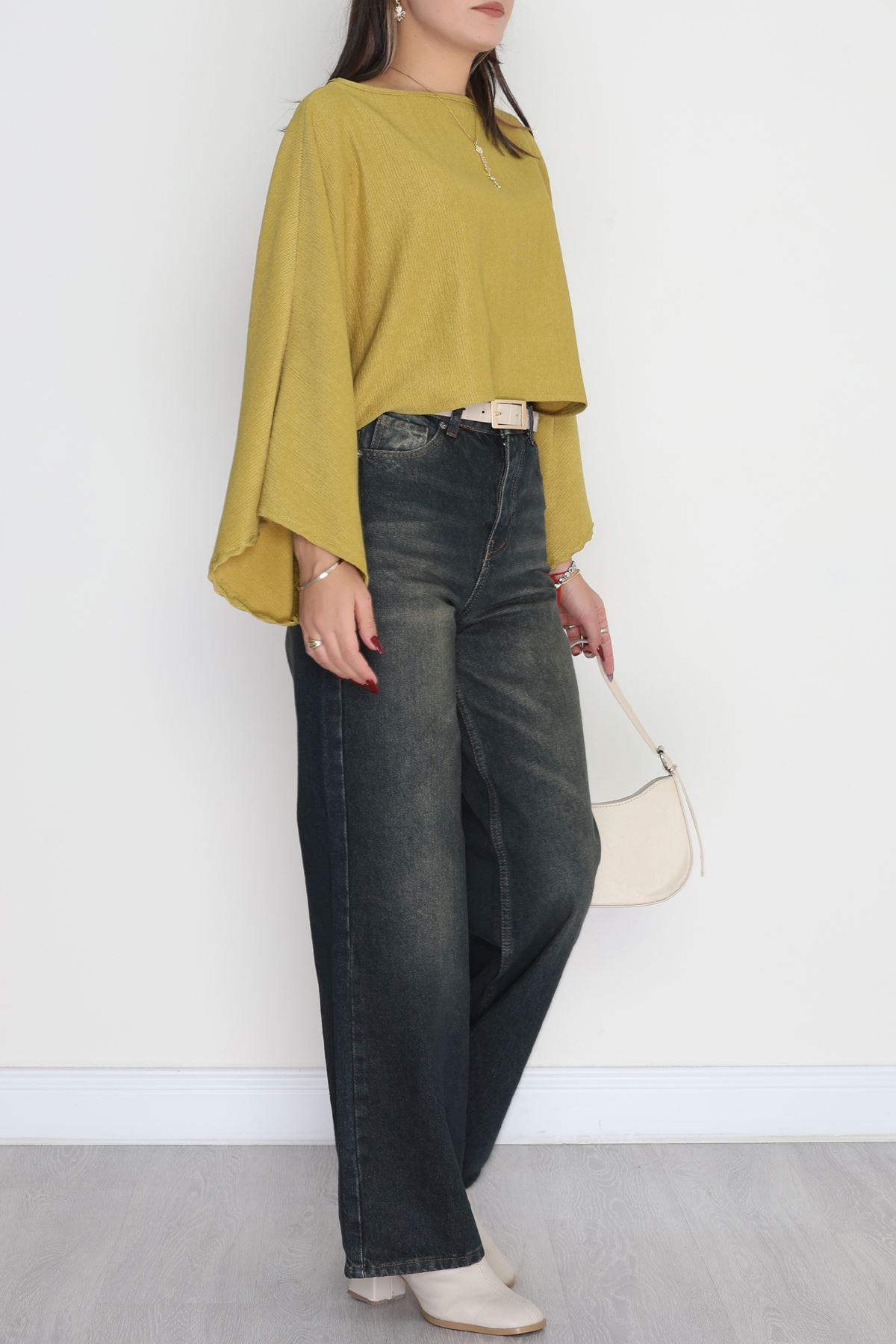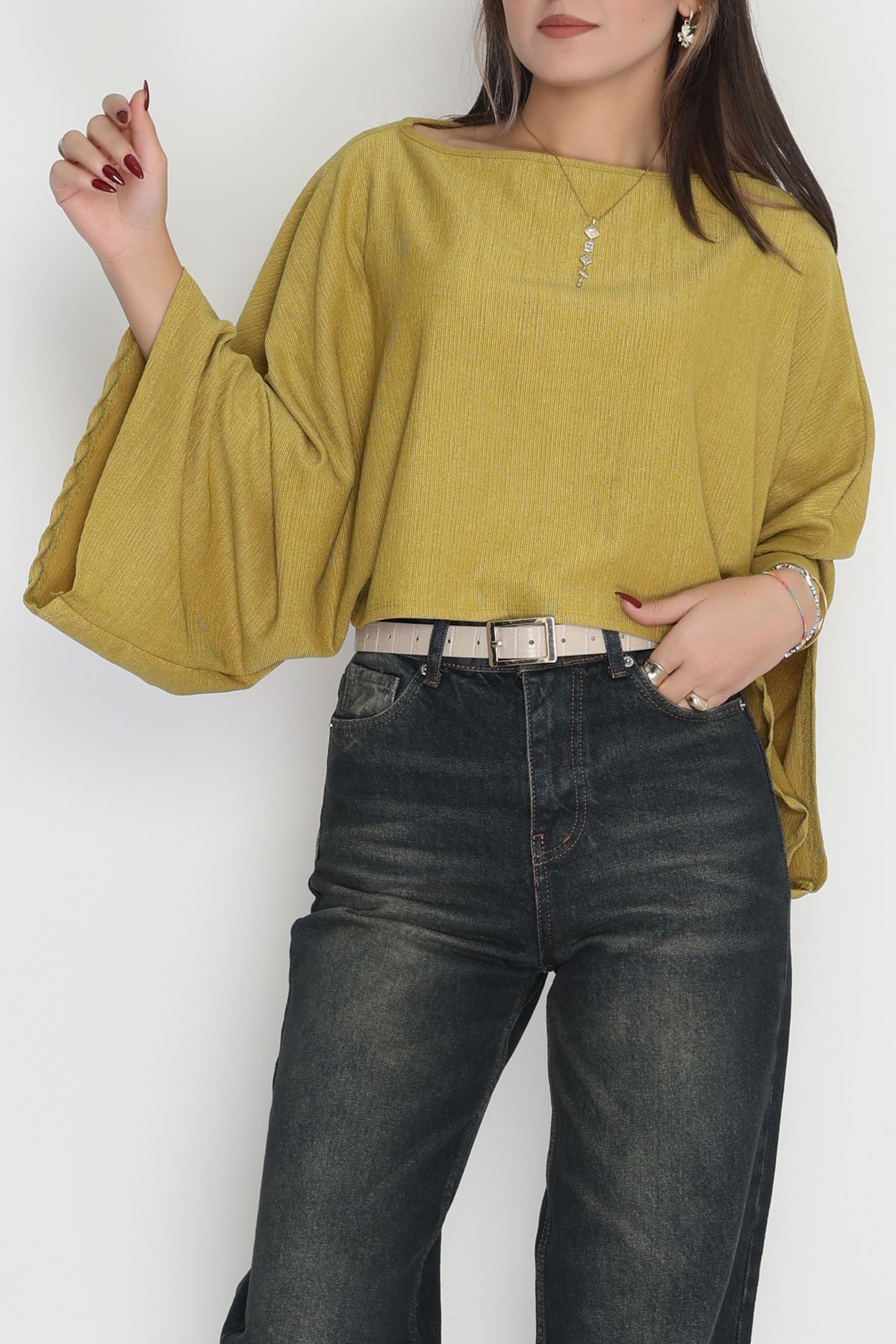 İthal Krep Yarasa Kol Bluz Yağyeşili - 70868.148.