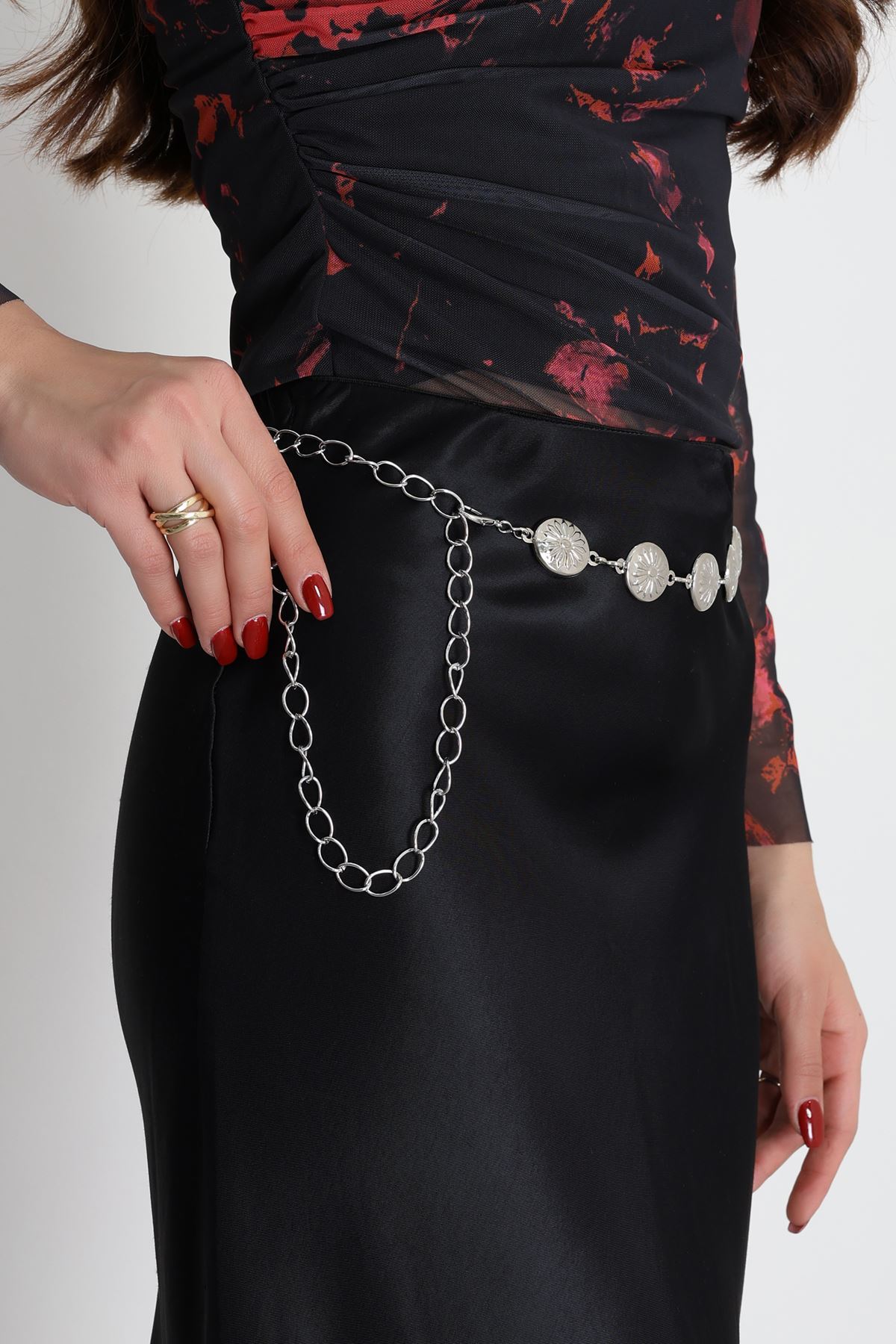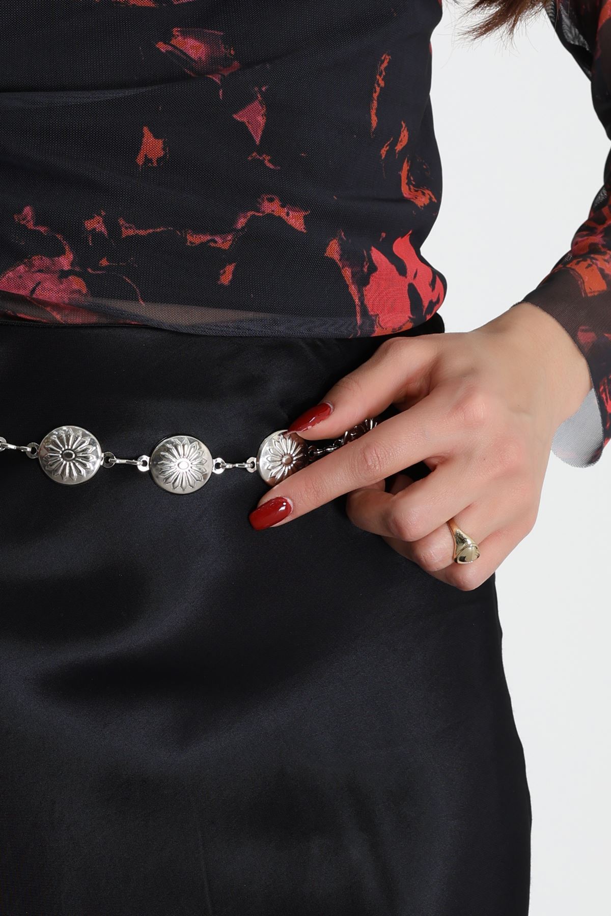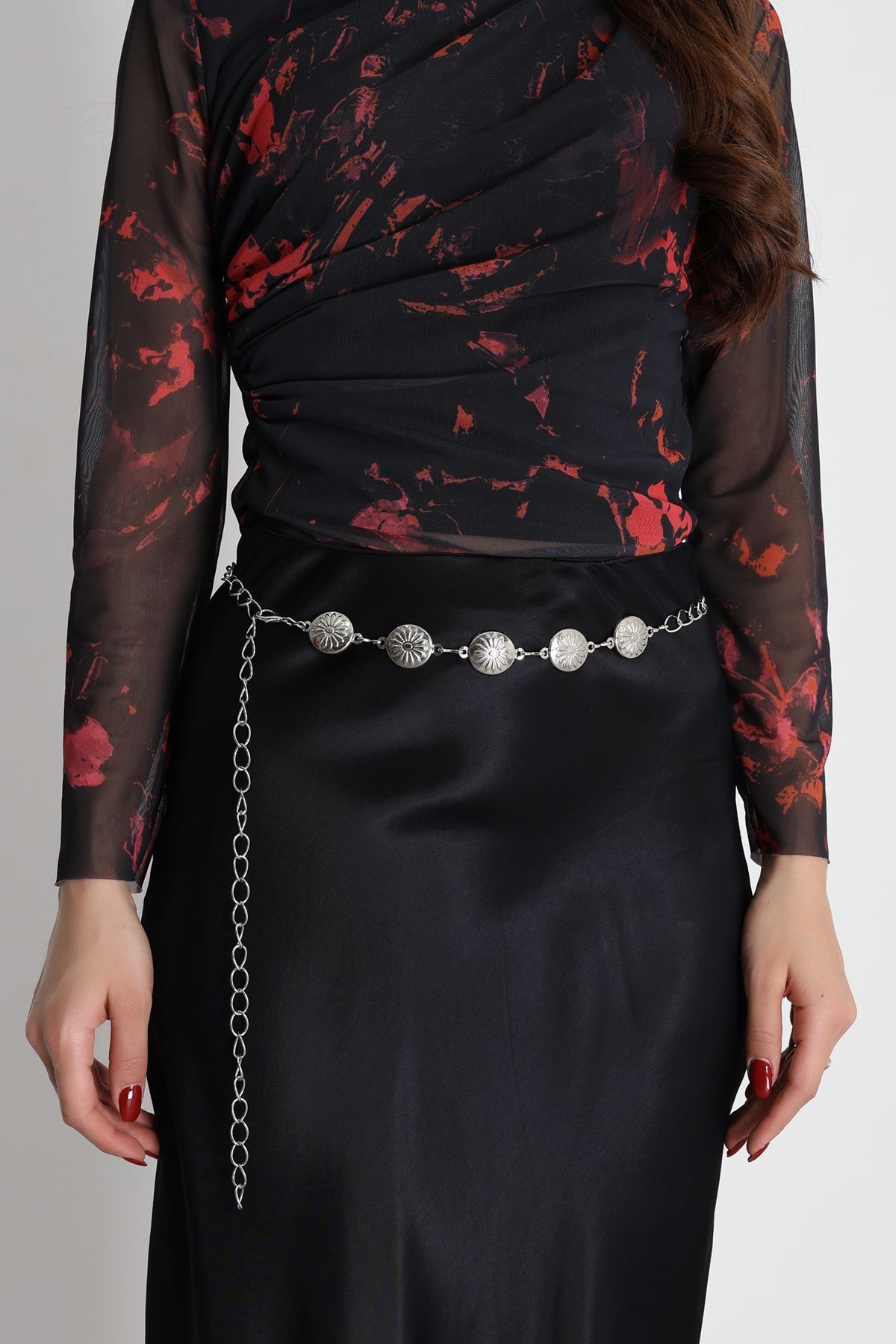 İthal Papatya Toka Zincir Kemer Gümüşgri - 2449.2105.