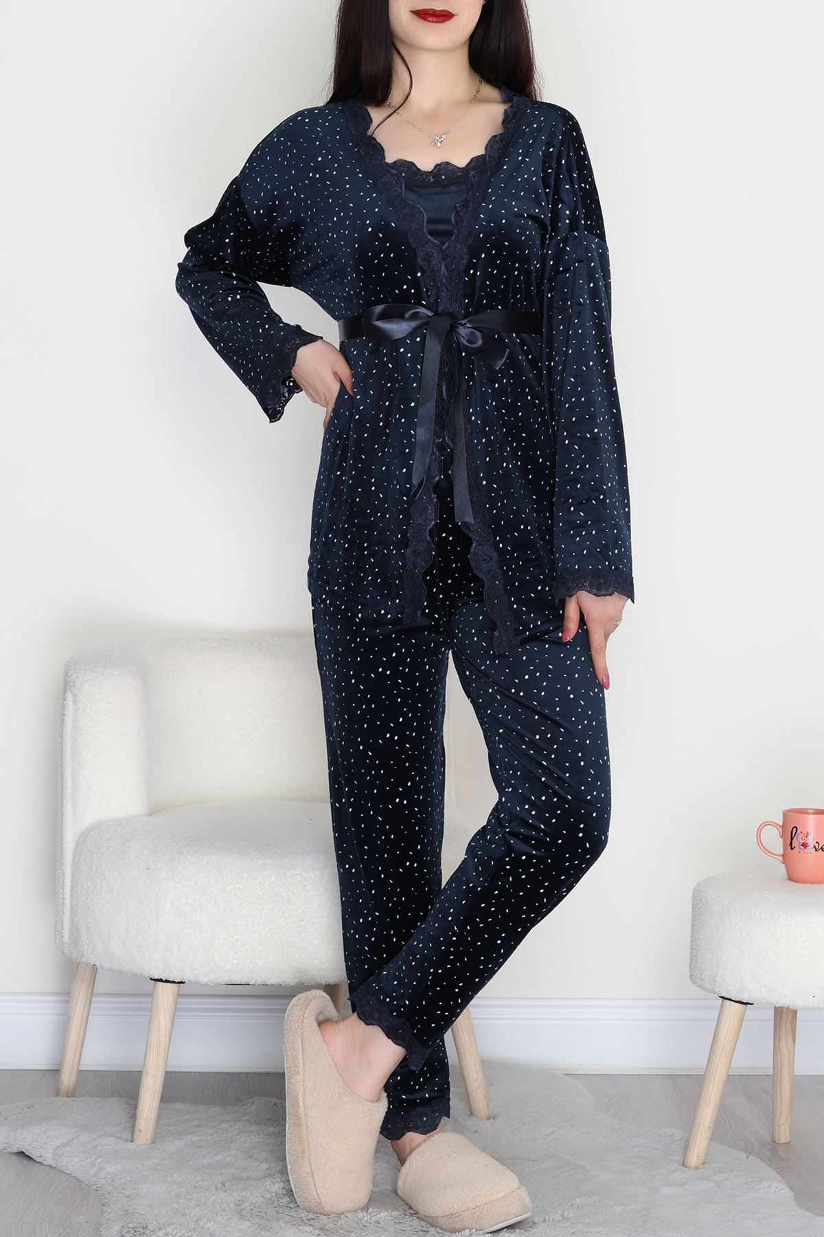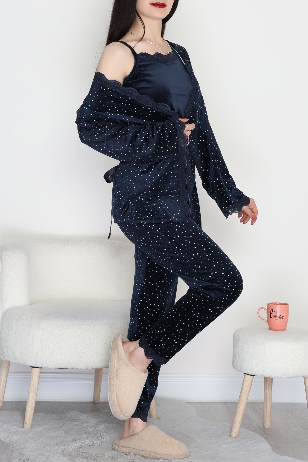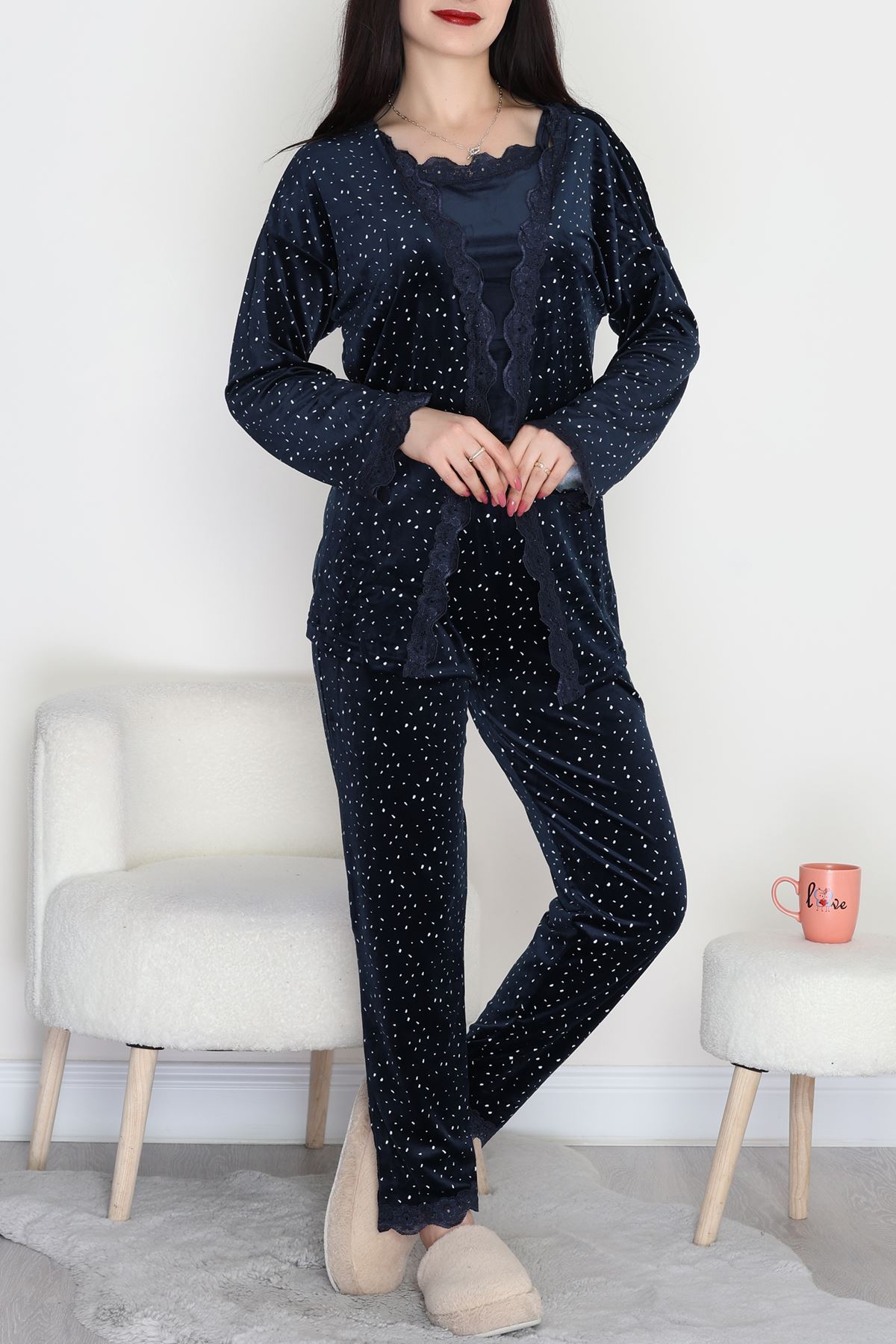Kadife 3'Lü Pijama Set Lacivert - 50925.1961.