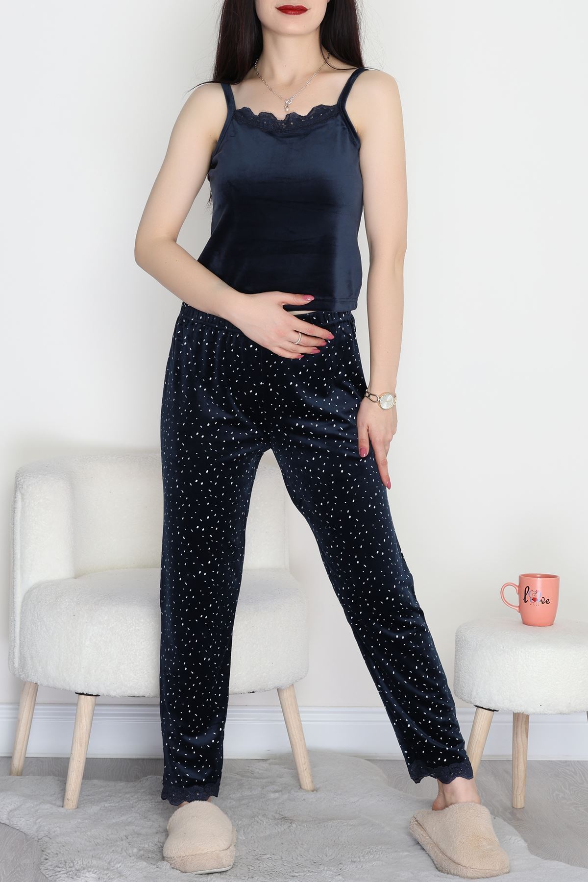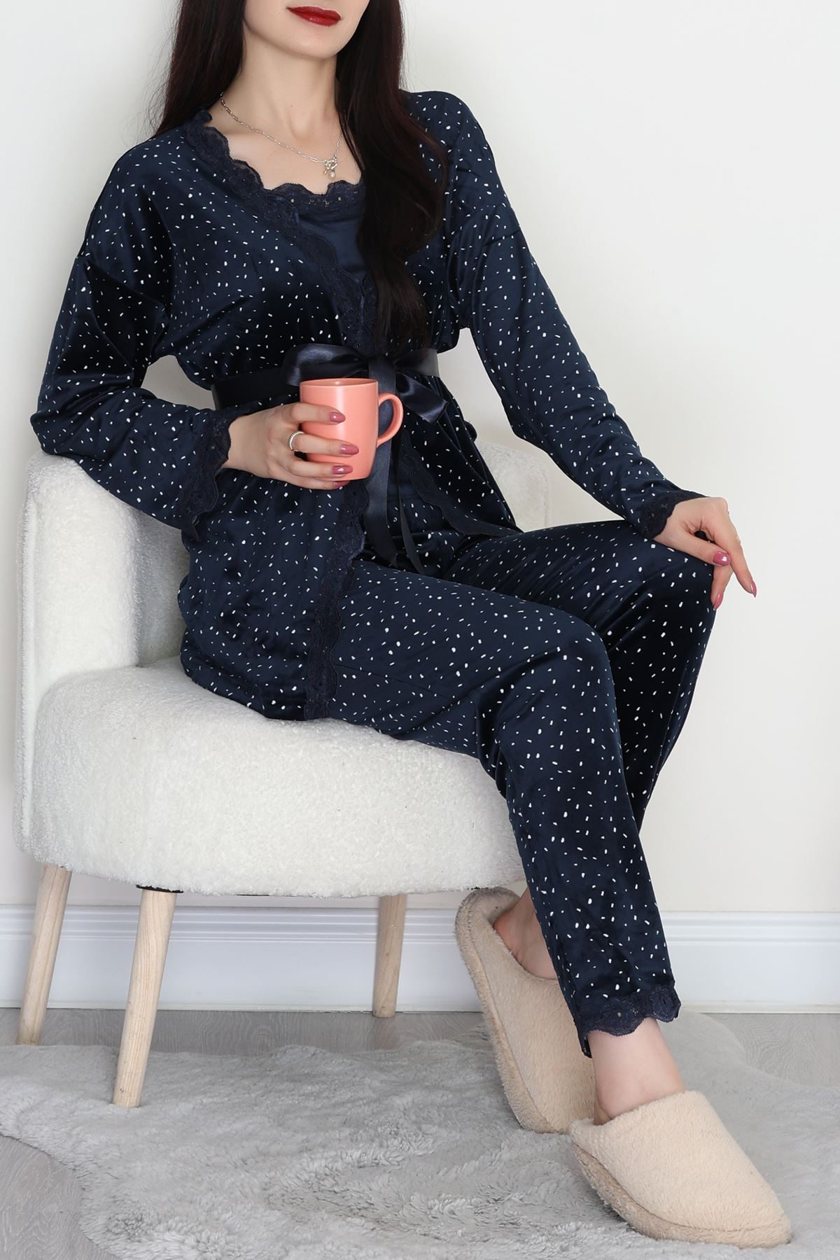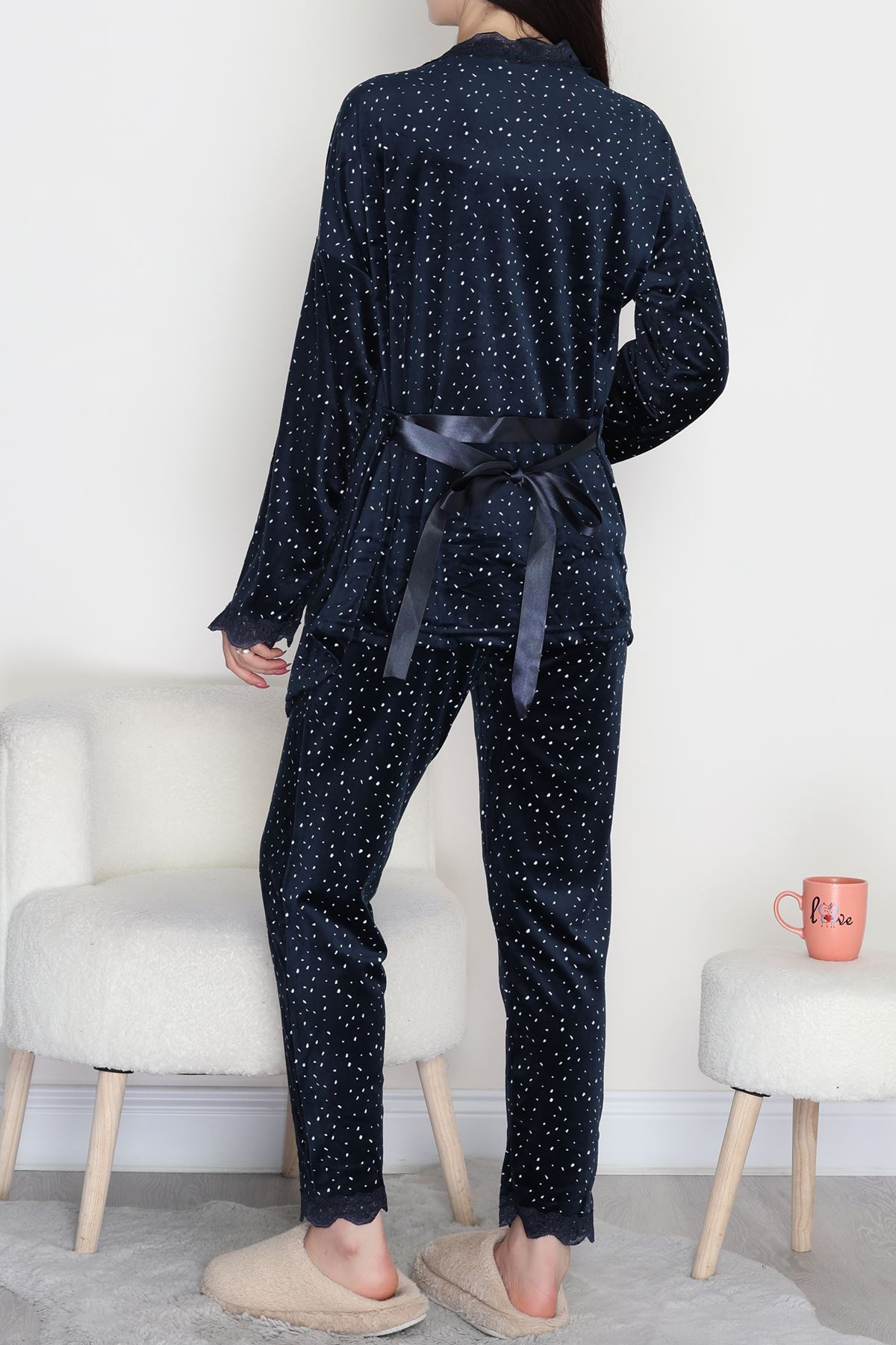 Kadife 3'Lü Pijama Set Lacivert - 50925.1961.