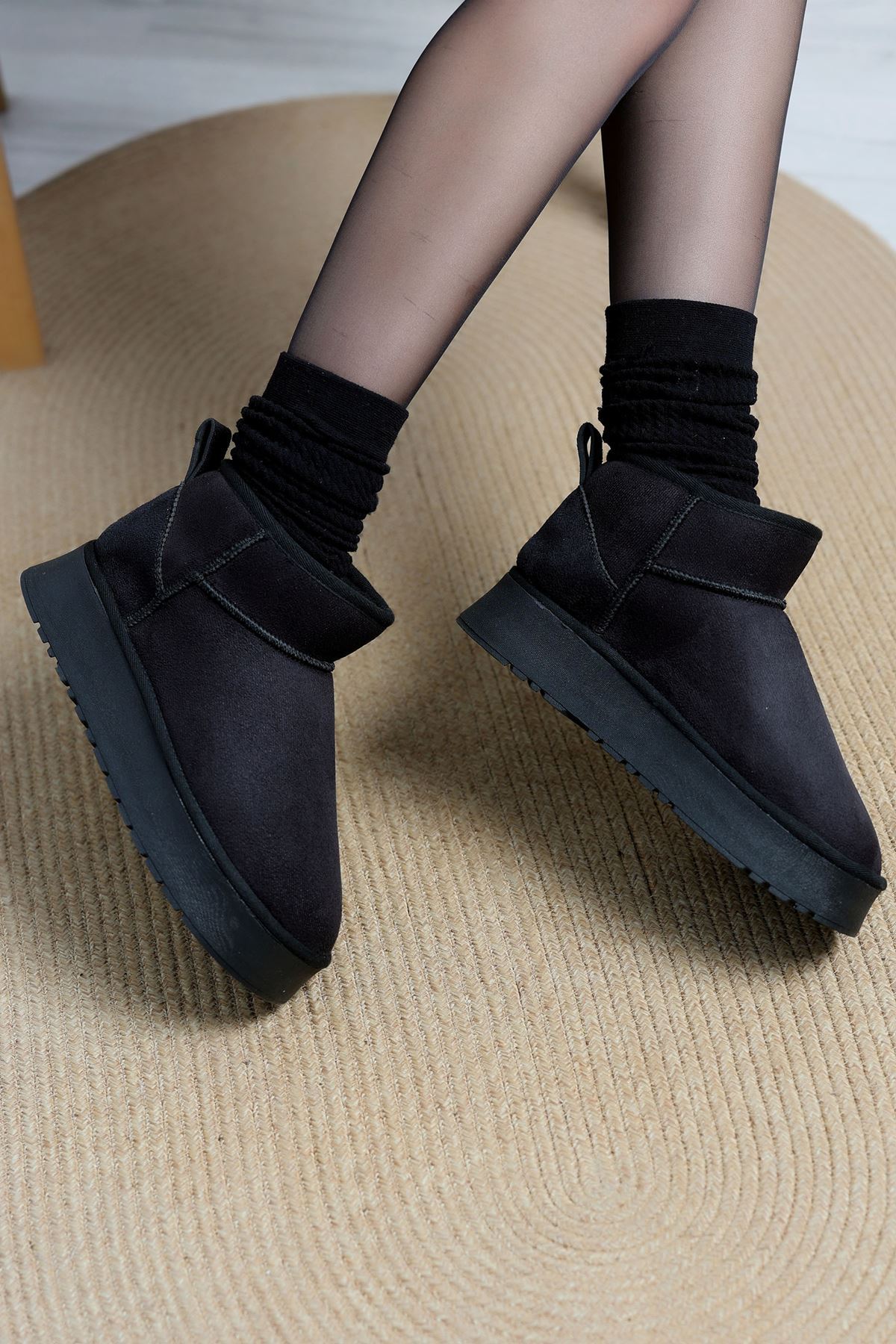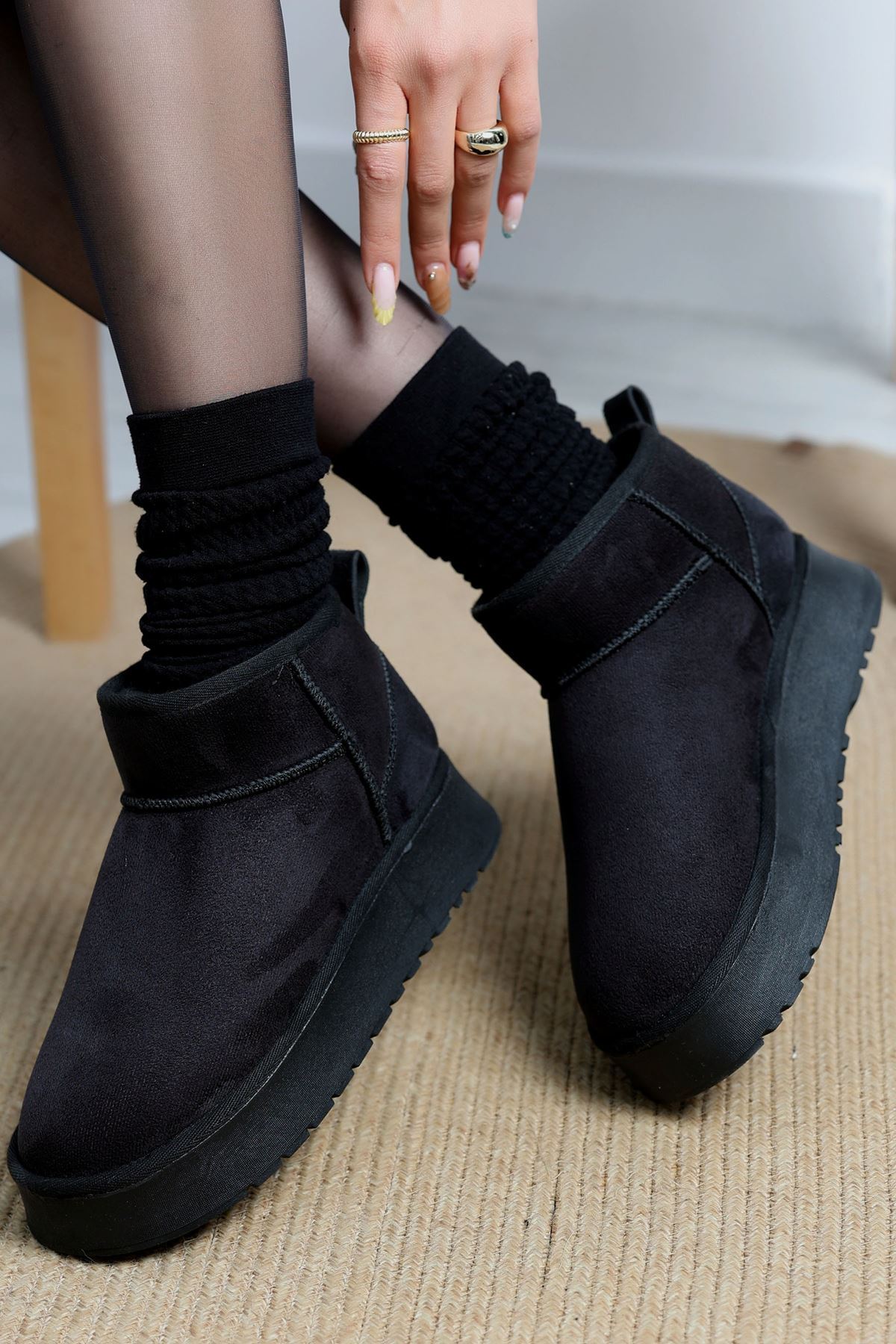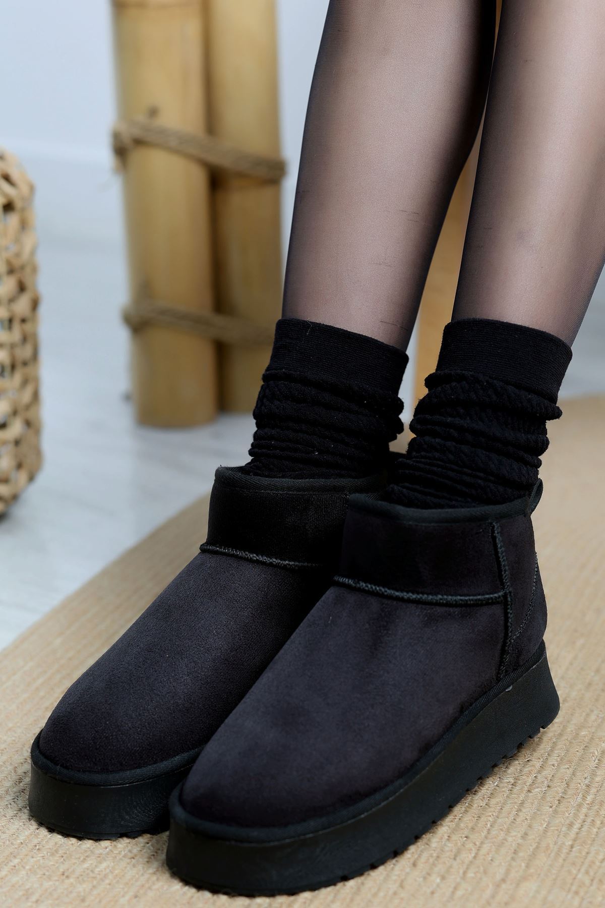 Kalın Taban Mini Boy Süet Bot Siyah - 31437.1932.