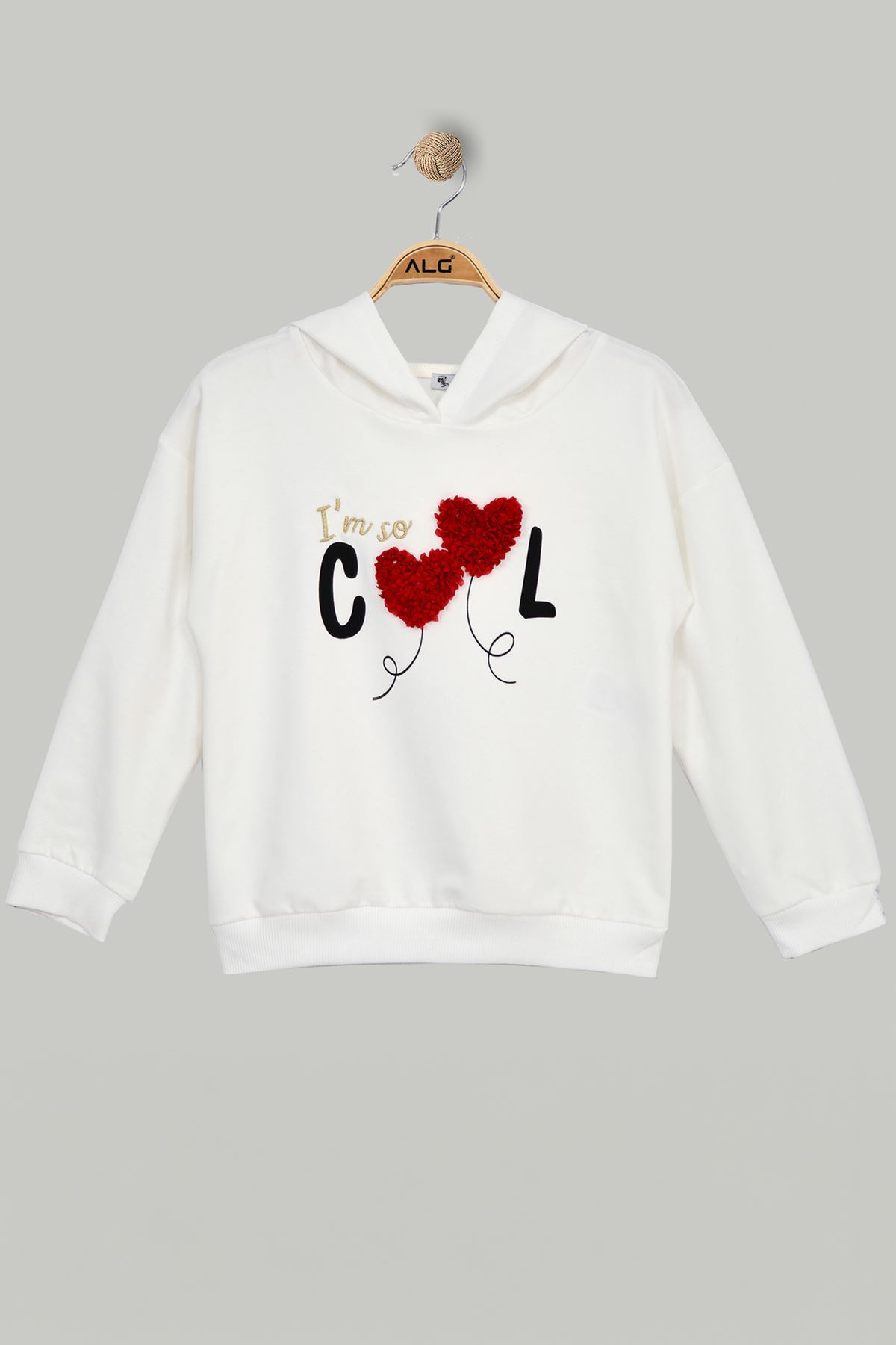 Kalp Desenli 3-7 Yaş 2 İp Sweatshirt Beyaz - 625530.1576.