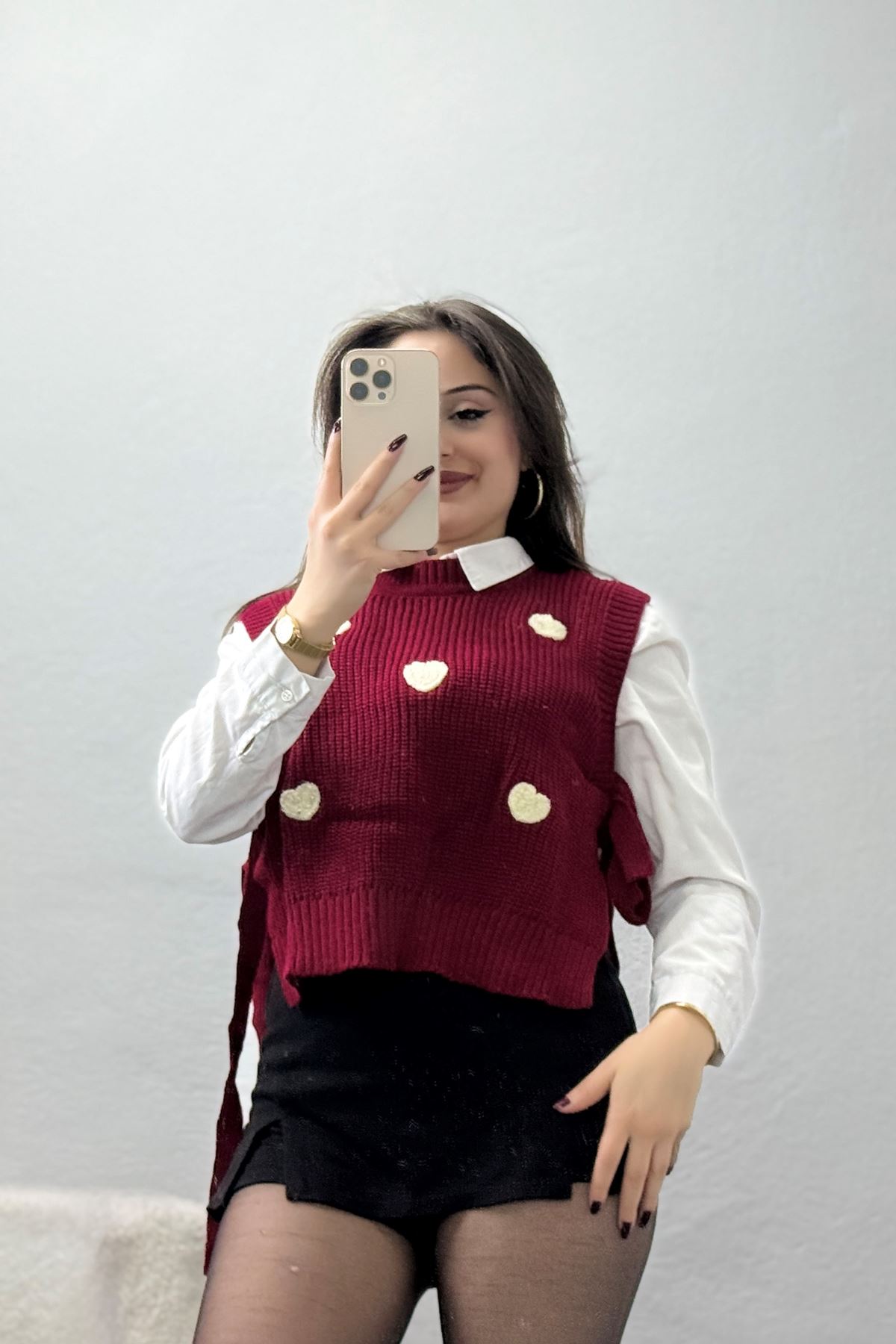 Kalp Desenli Süveter Bordo - 41962.2043.